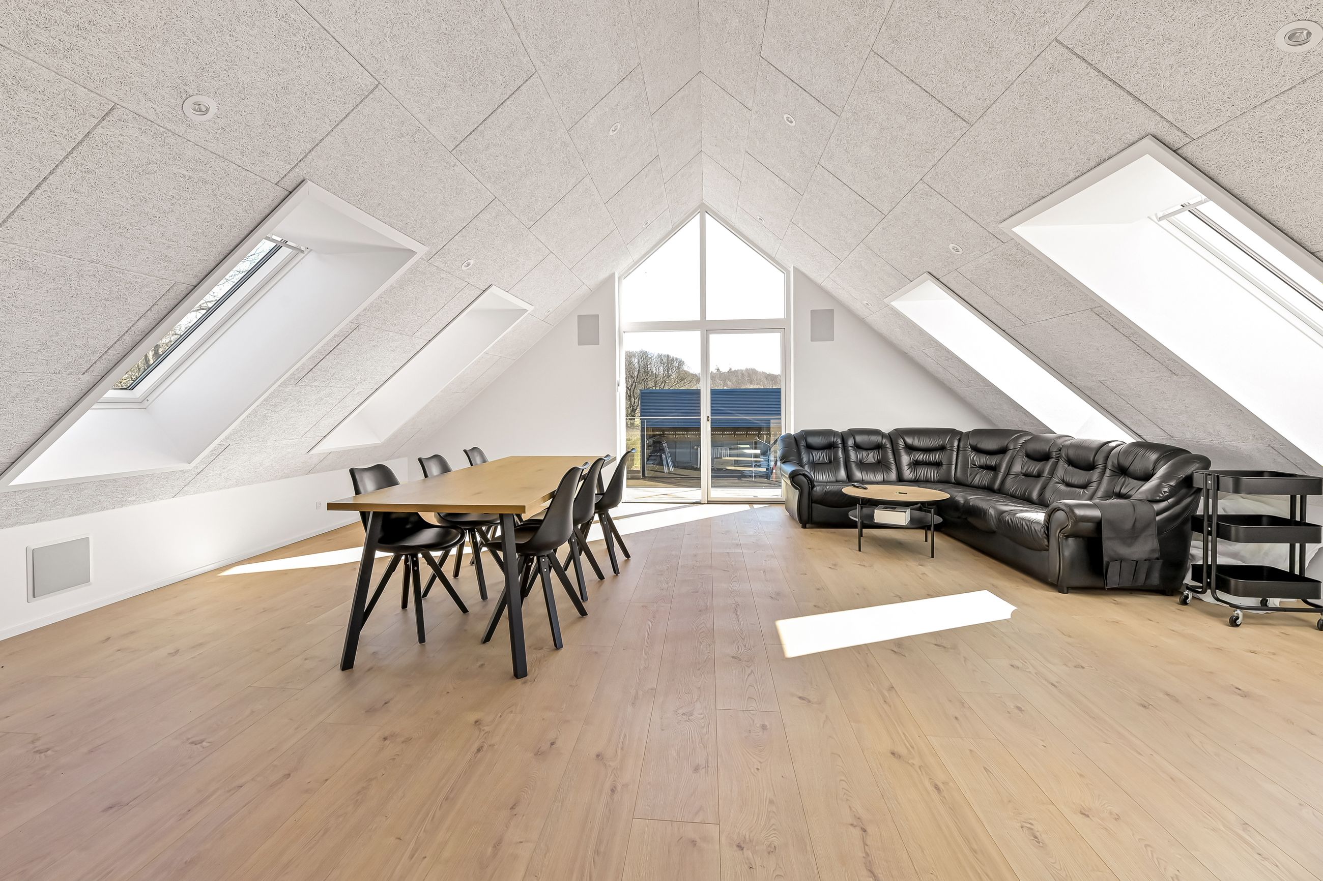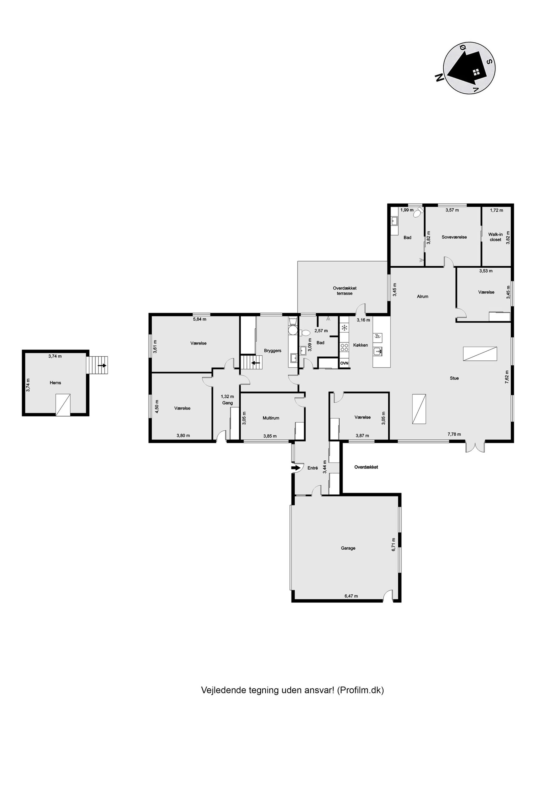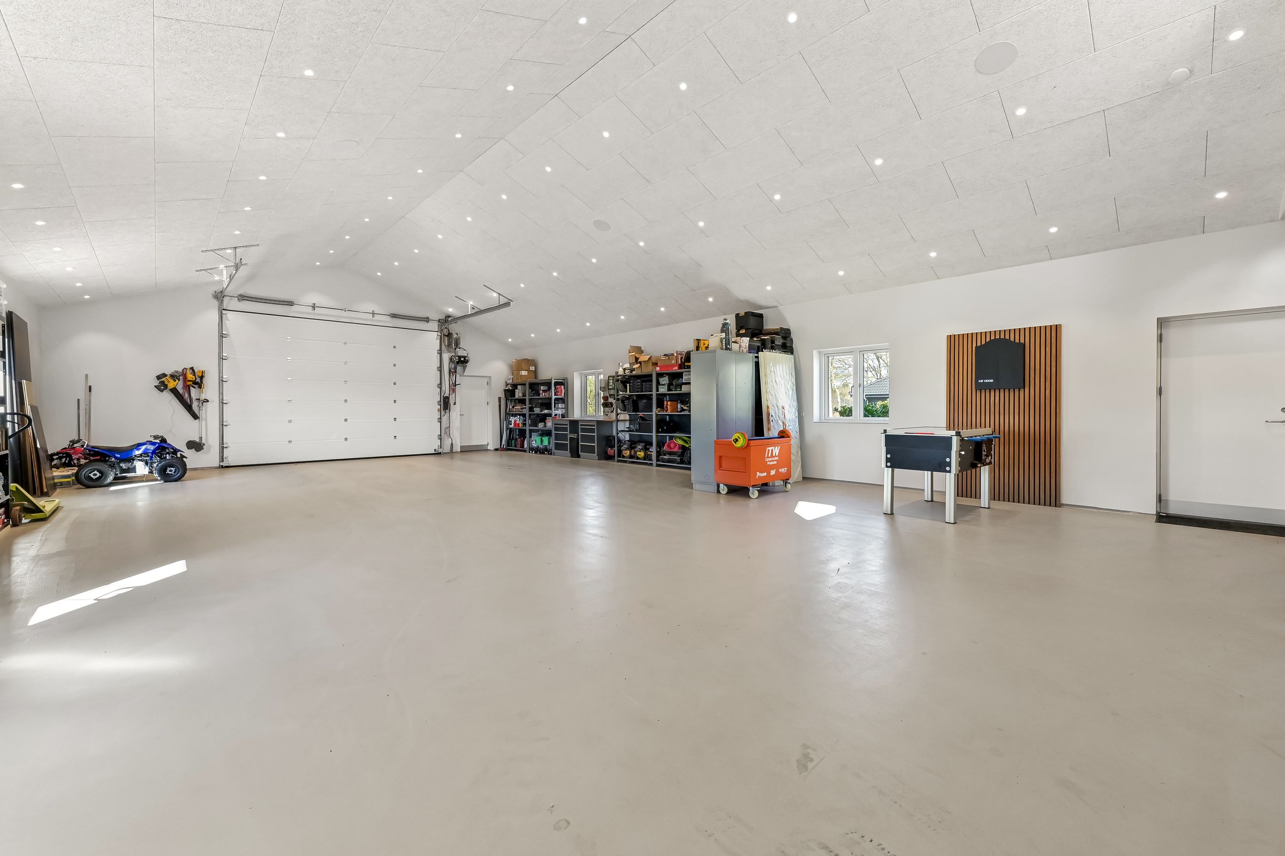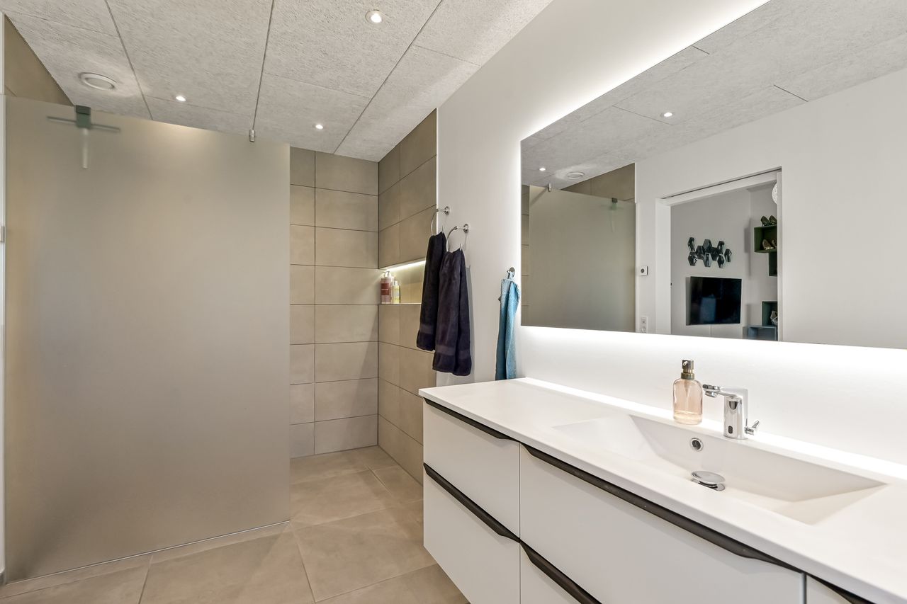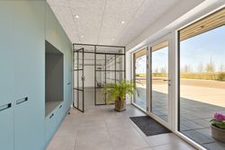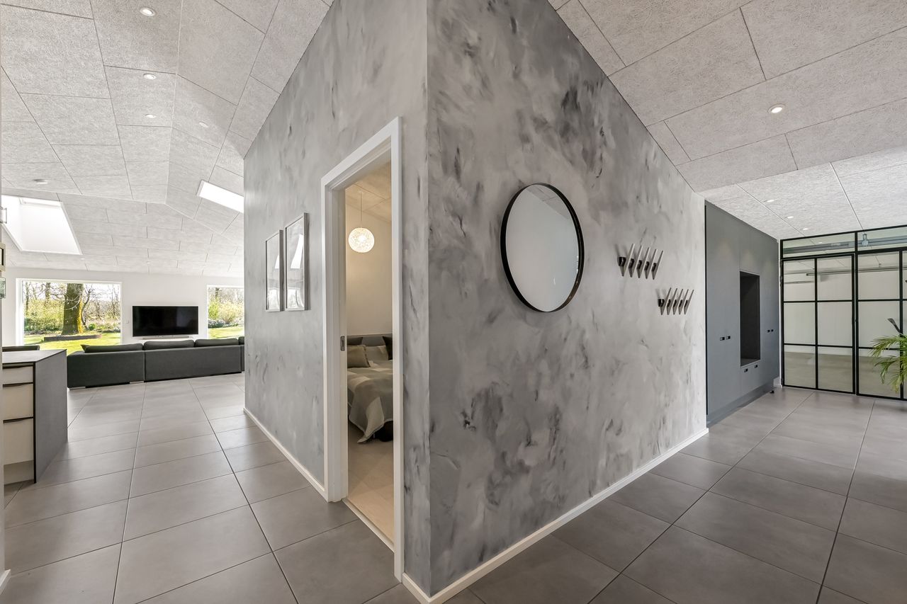 Til ejendommen hører også en stor hal på 220 m2, opført i 2021. Hallen er indrettet med troldtektlofter, spots og moderne faciliteter, herunder badeværelse, mindre køkken, teknikrum, værelse og et stort disponibelt rum på førstesalen. Denne bygning åbner for et væld af muligheder – hvad enten det er Airbnb, liberalt erhverv, værksted, lager, kontor eller bare god plads til hobby. Bemærk, at hallen ikke er godkendt til beboelse.