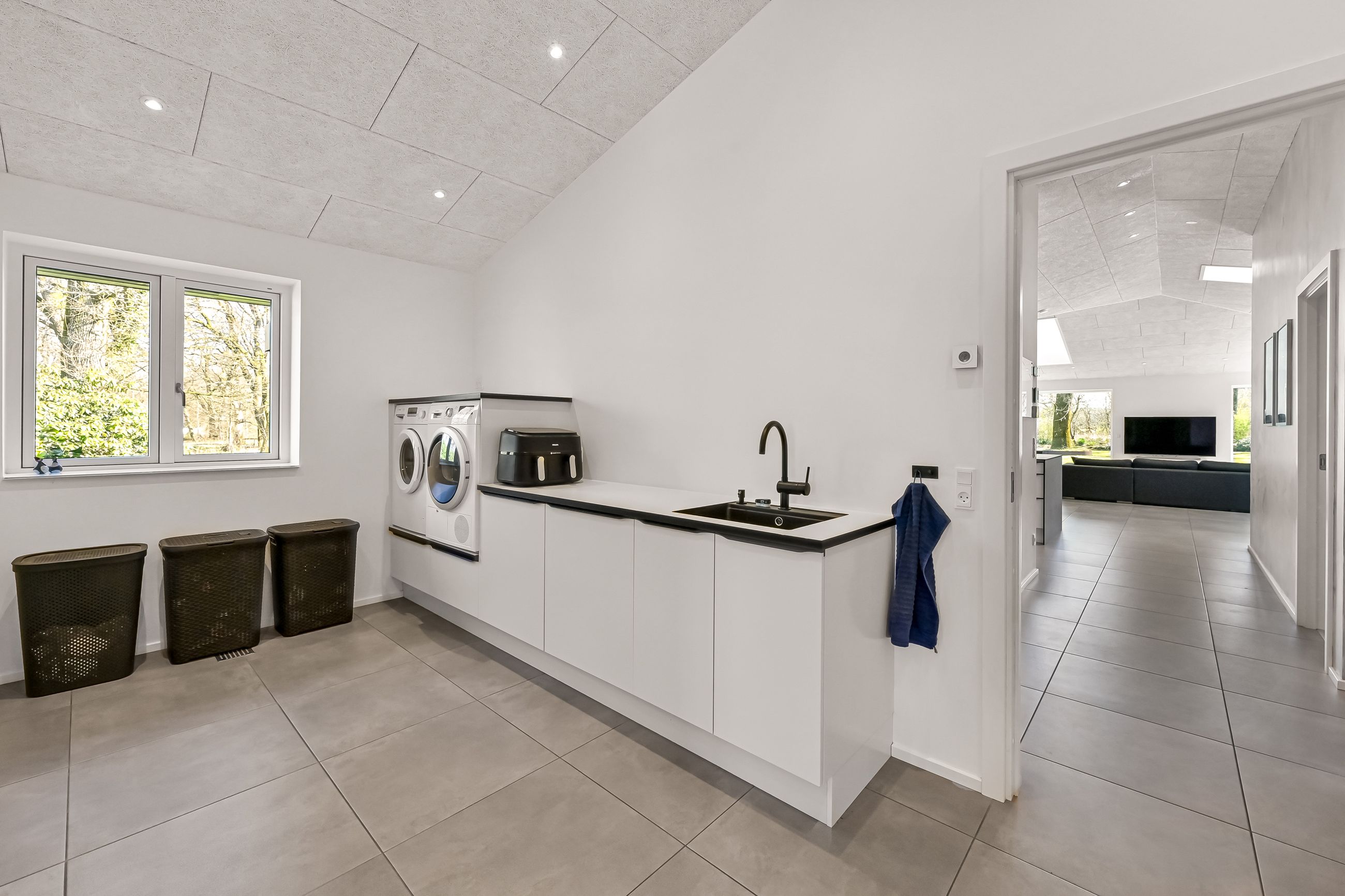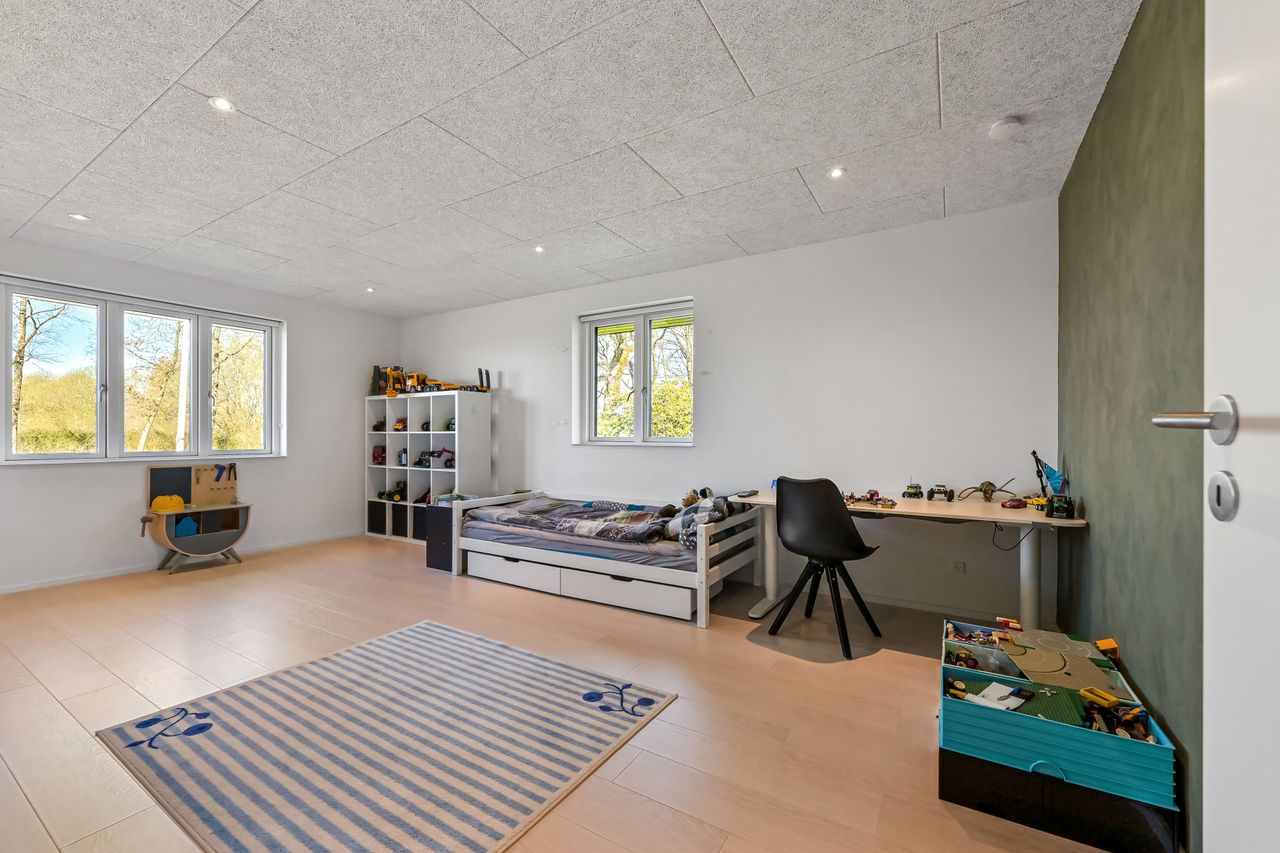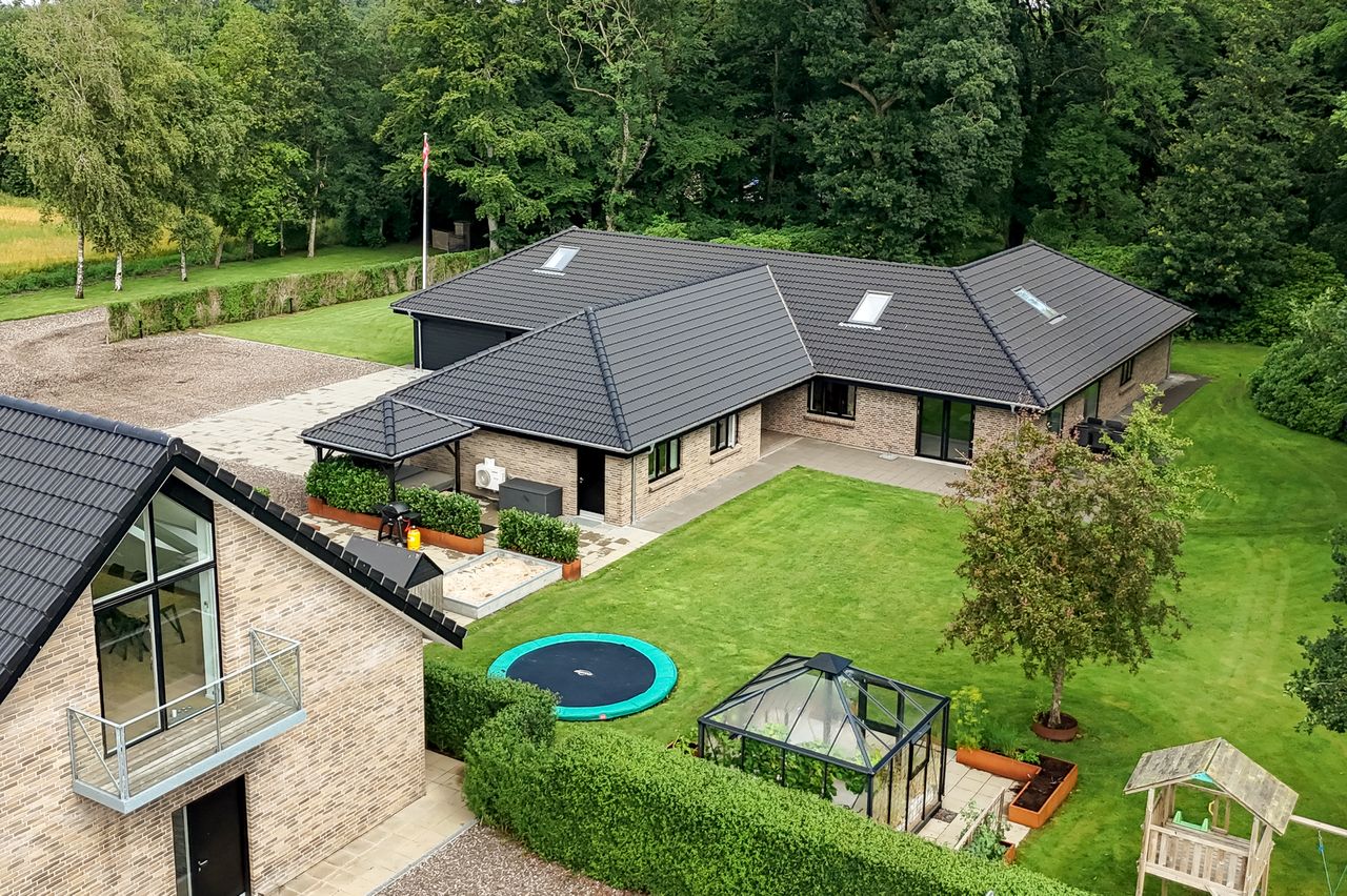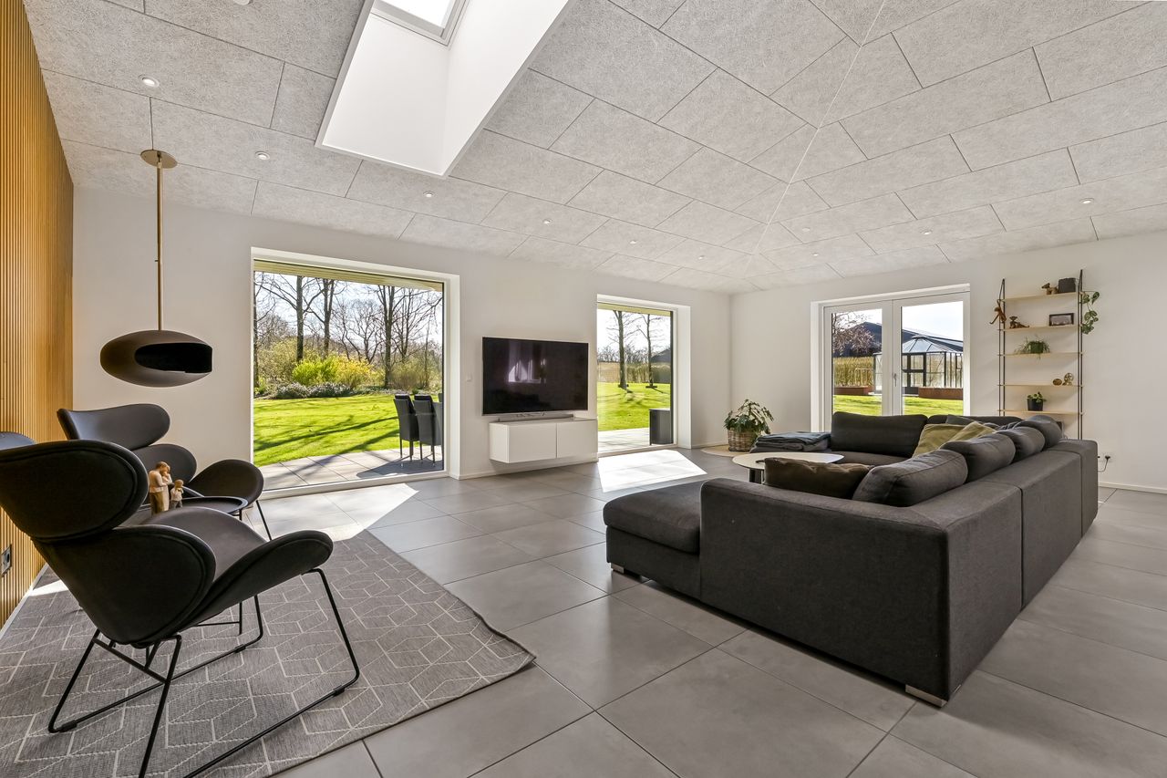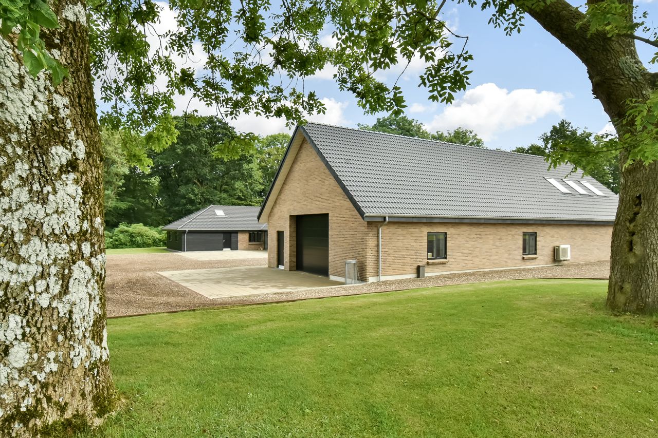 Stuehuset der er opført i 2017 og senere tilbygget, fremstår moderne, lyst og særdeles rummeligt med hele 282 m2 bolig og direkte adgang til en integreret garage på 56 m2. Huset er indrettet med en indbydende entre, hvorfra der er adgang til garagen gennem en elegant New Yorker-dør. Der er flere gode værelser, herunder en separat børneafdeling med to store værelser, mens forældreafdelingen byder på soveværelse med direkte adgang til eget badeværelse og et rummeligt walk-in-closet. Boligens hjerte er det store, åbne køkken/alrum og stue, hvor loft til kip og store vinduespartier giver et skønt lysindfald og udsigt til den imponerende have. Desuden er der et ekstra badeværelse, et rummeligt bryggers med opgang til hems samt yderligere værelser, der skaber mange indretningsmuligheder.