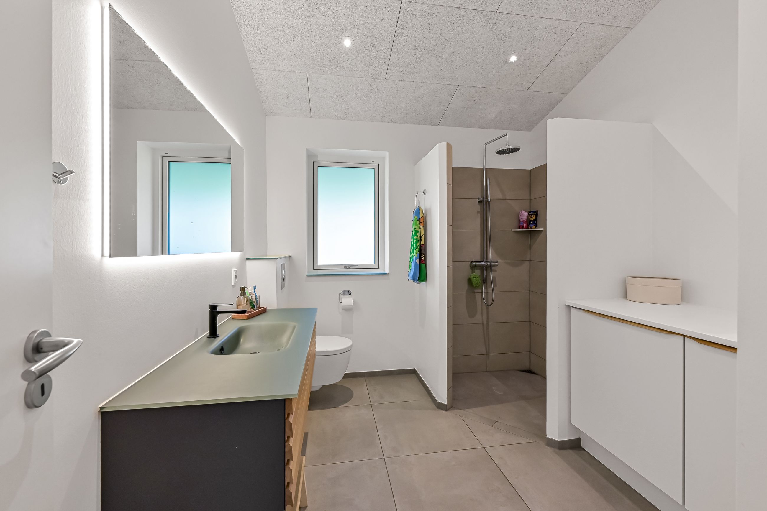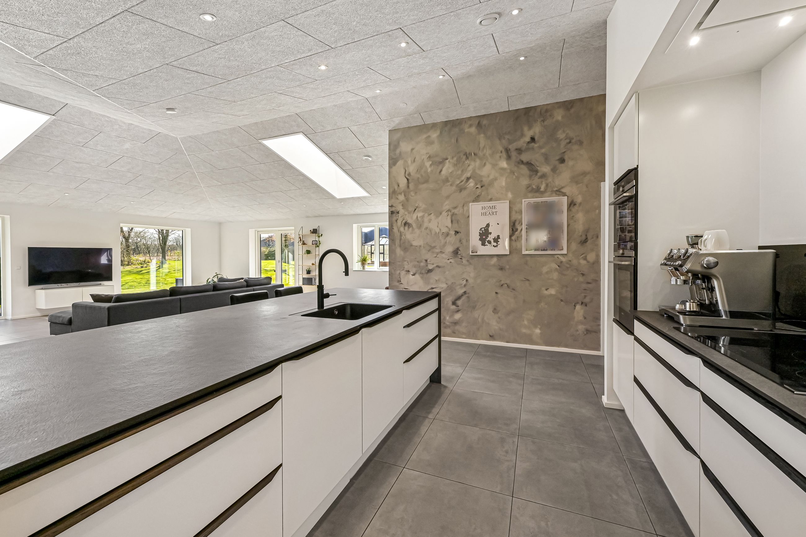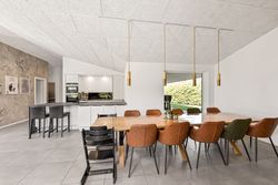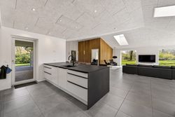 Ejendommen opvarmes med en kombination af jordvarme, solceller (20kWh hybridanlæg m 15 kWh batteri) og varmepumper, hvilket sikrer en energieffektiv og fremtidssikret løsning.