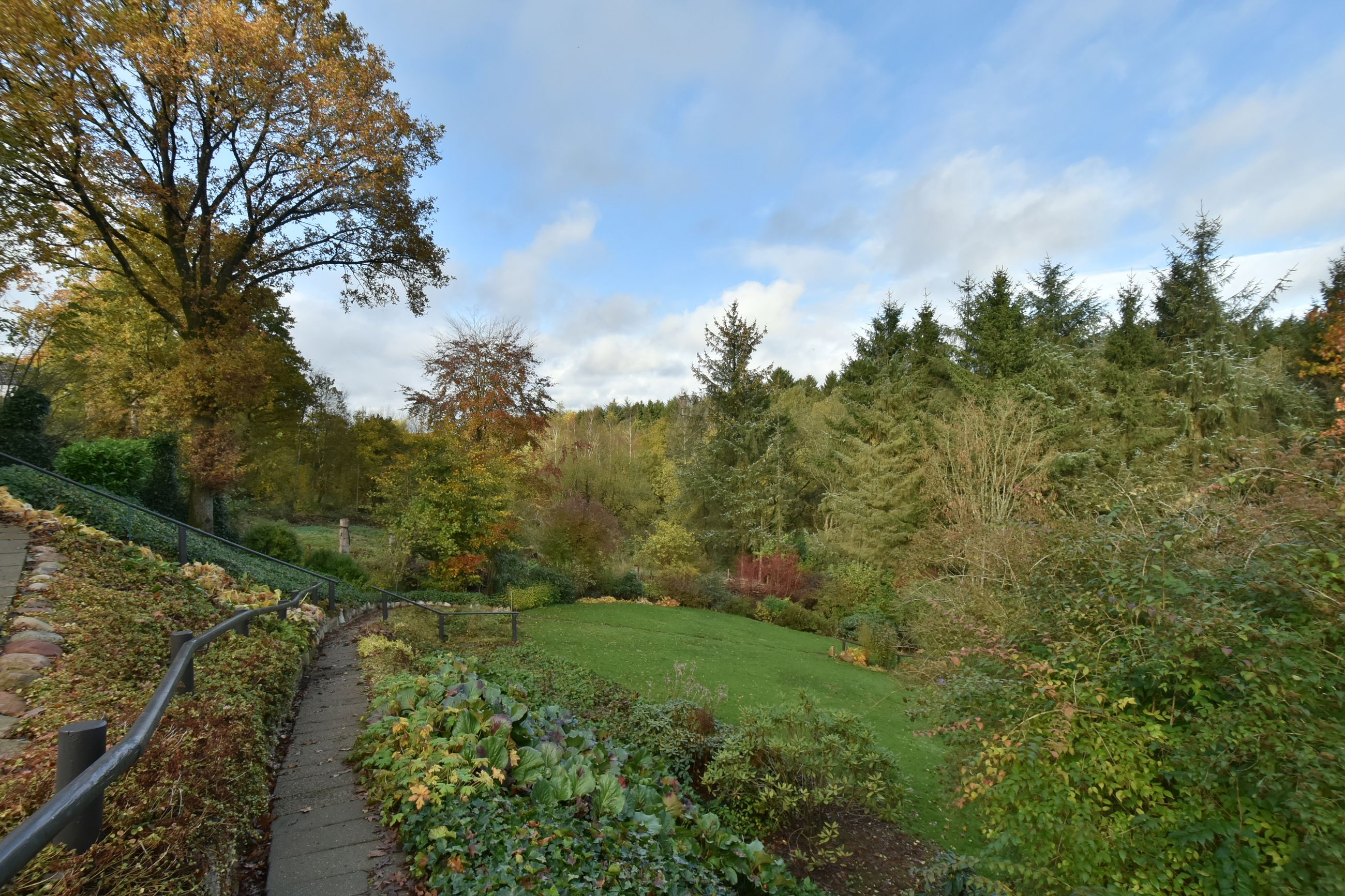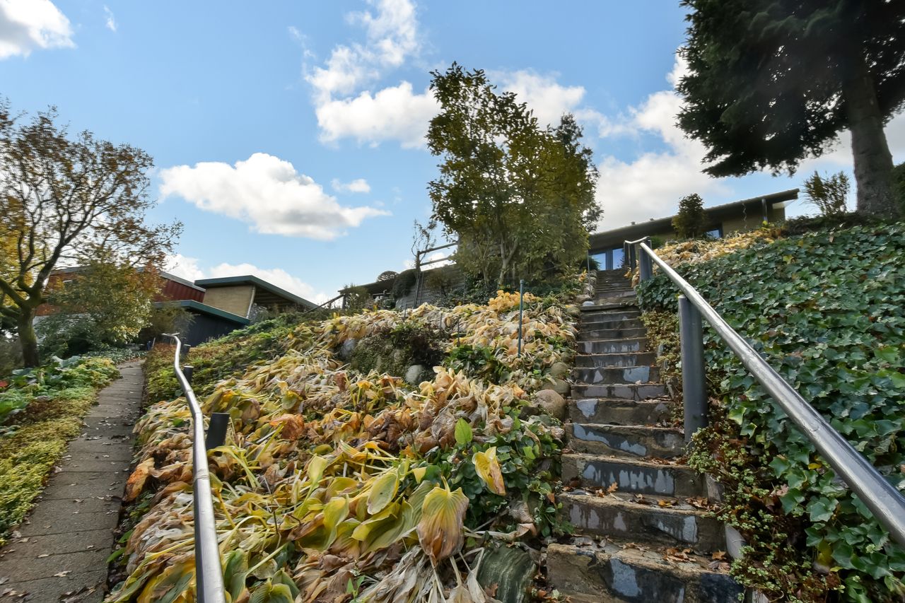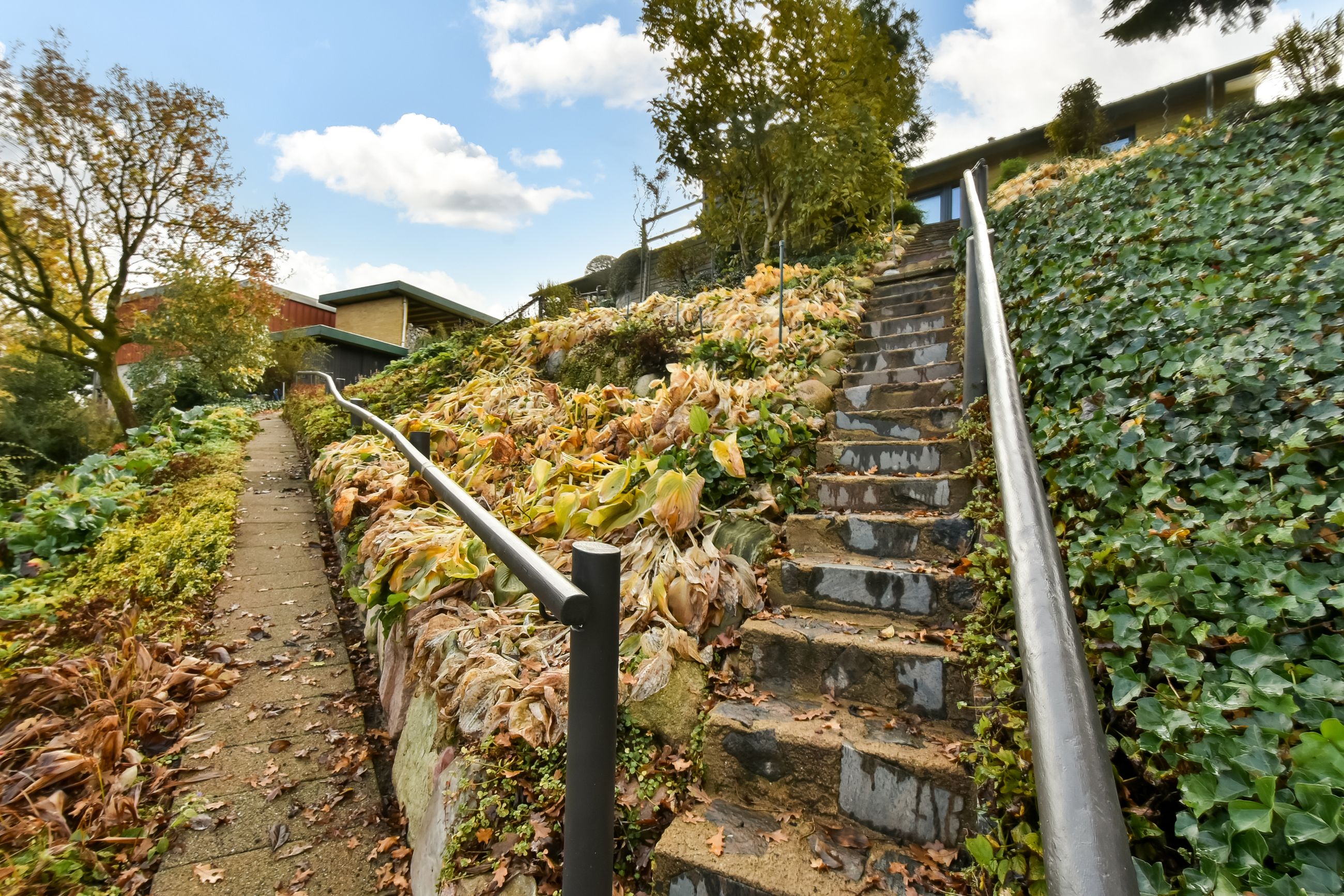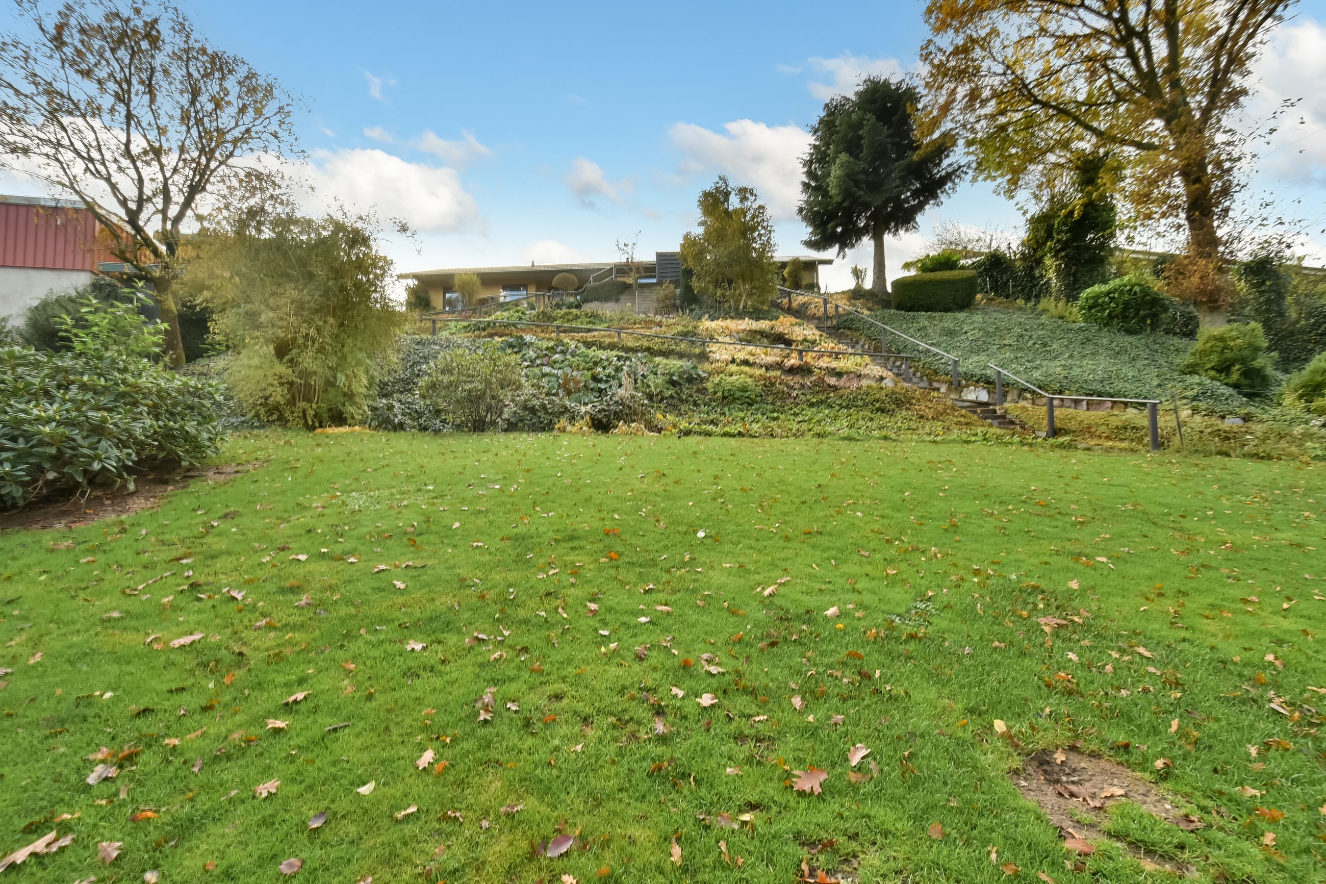 Udenfor venter en imponerende have opdelt i flere niveauer, hvilket skaber en unik atmosfære fyldt med charme. Haven er inddelt i bede, der vidner om kærlig pleje gennem årene. Her kan man nyde udsigten til det grønne læbælte samtidig med at man befinder sig helt centralt i Give - noget som sjældent kan kombineres så godt som her. Derudover er der en hyggelig havestue i haven hvorfra man kan nyde årstidernes skiften.