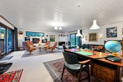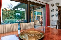 Indretningen af huset er praktisk med store rum og en god fordeling af værelser i begge ender af huset samt badeværelser i hver ende af huset. Derudover nogle meget rummelige stuer og et pænt køkken der vender mod den charmerende have. Køkkenet blev opdateret i 1990'erne og fremstår nydeligt. Generelt er huset i god stand og meget moderne i indretningen specielt henset til byggeåret for huset. Taget er skiftet og er dermed af den asbestfrie type, så den bekymring slipper man også for her.