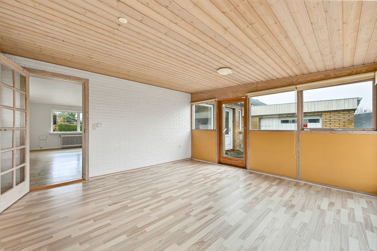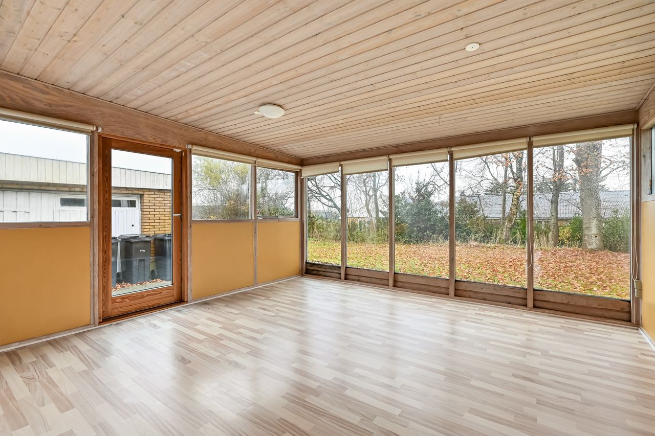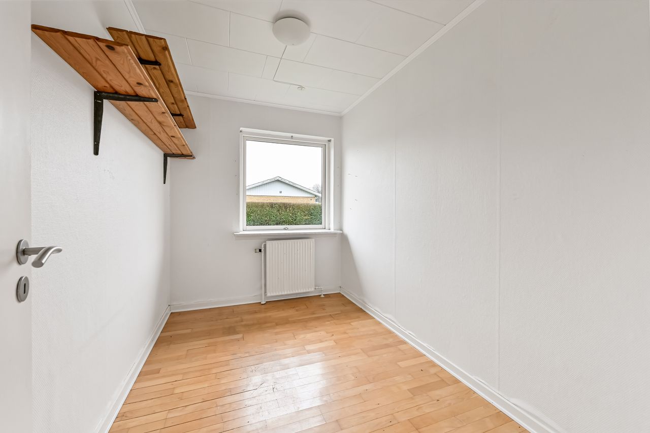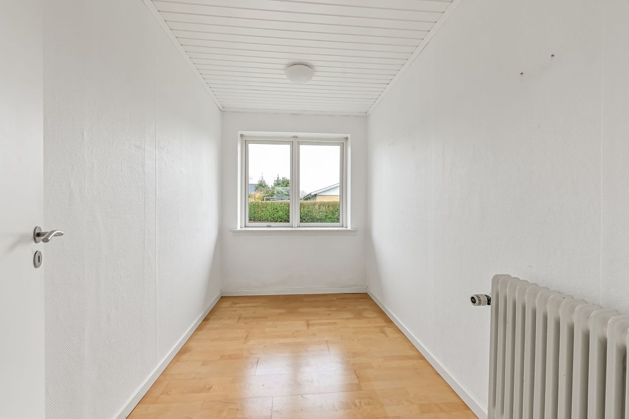Centralt beliggende og tæt på bymidten i Thyregod. I et rolig og veletableret villakvarterer, finder du dette charmerende parcelhus. Et velholdt hus, hvor der er masser af personlighed og charme. Boligen er opført i 1963, og byder på en god indretning med mulighed for at sætte sit eget præg. Boligarealet er på 125 m2. Man træder ind i husets bryggers, som fører dig videre til køkkenet der fremstår pænt og velholdt. Fra køkkenet træder man ind i den lyse vinkelstue, som er rummelig og fyldes af masser af lys fra sine store vinduespartier. Herfra kan du træde ud i den hyggelige udestue hvor udsigten til haven kan nydes i fulde drag.En lille fordeler gang leder dig rundt i resten af huset, om man vil på badeværelset, ind i ét af de tre værelser, eller til soveværelset. Foruden boligen, hører der et stort disp.rum på ca. 20 m2. Her er der god plads til værksted, eller blot som et ekstra depot til opbevaring. Udendørs får du en grund på 976 m2 der er anlagt i græsplæne og en terrasse i forlængelse af udestuen, hvor der er god plads til både afslapning, leg og hygge i dagens lyse timer.
