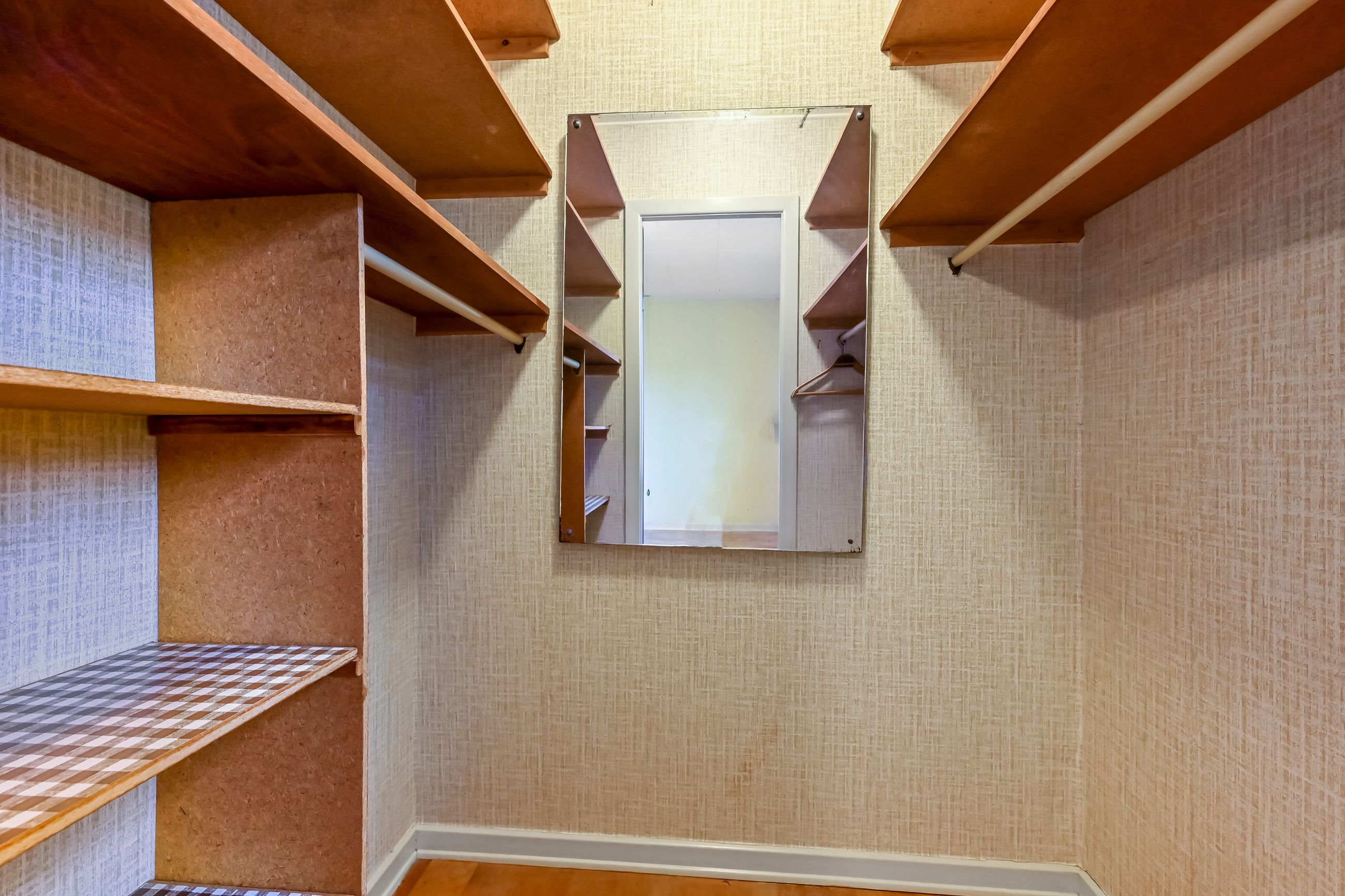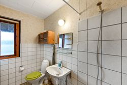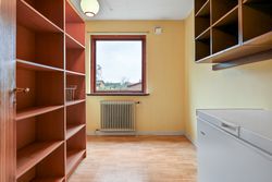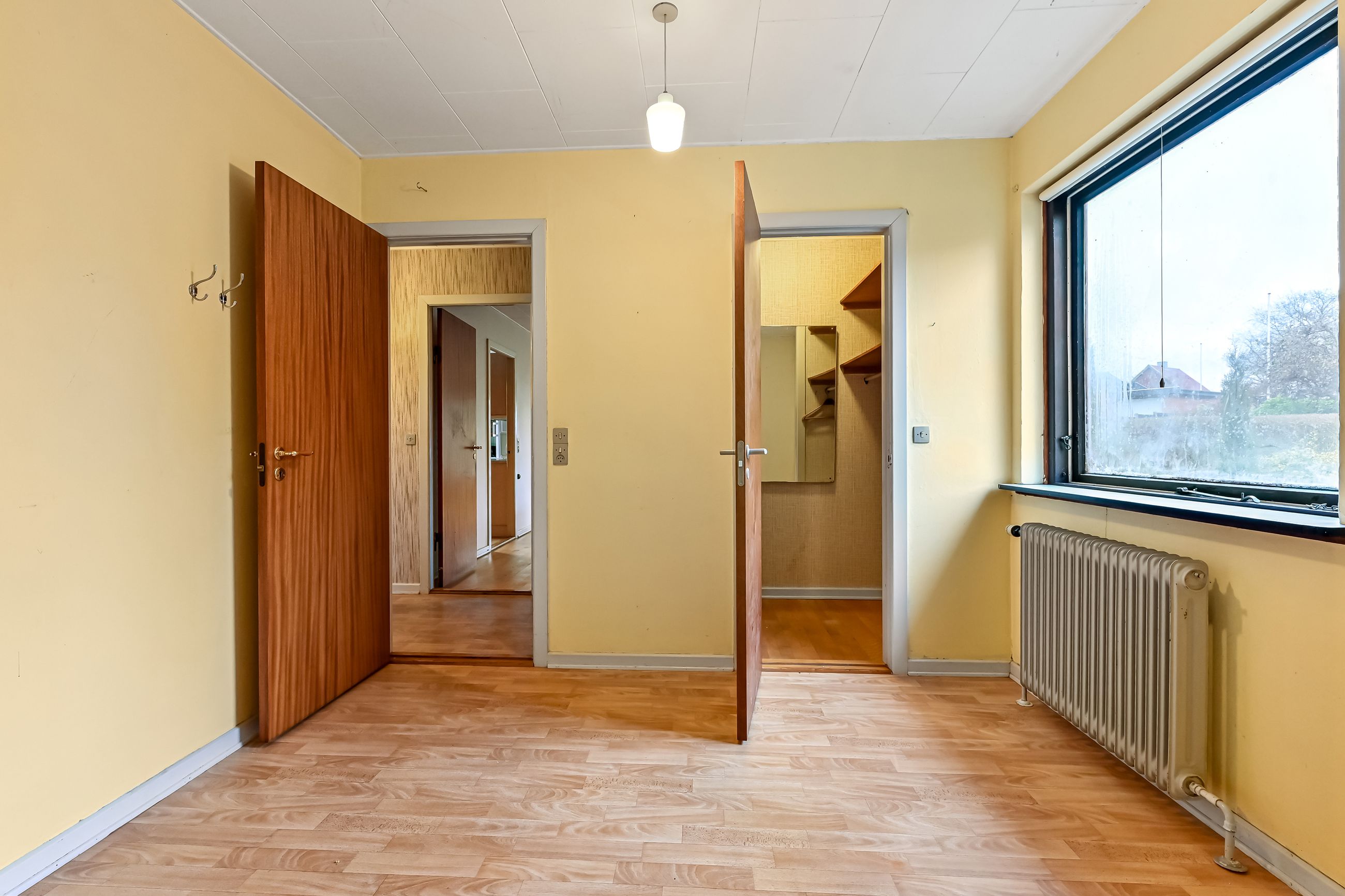 Soveværelset er udstyret med et lille walk-in closet, hvilket giver god opbevaringsplads. De to ekstra værelser kan anvendes som børneværelser, kontor eller hobbyrum alt efter behov. Badeværelset er simpelt men funktionelt indrettet.