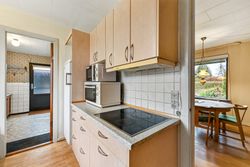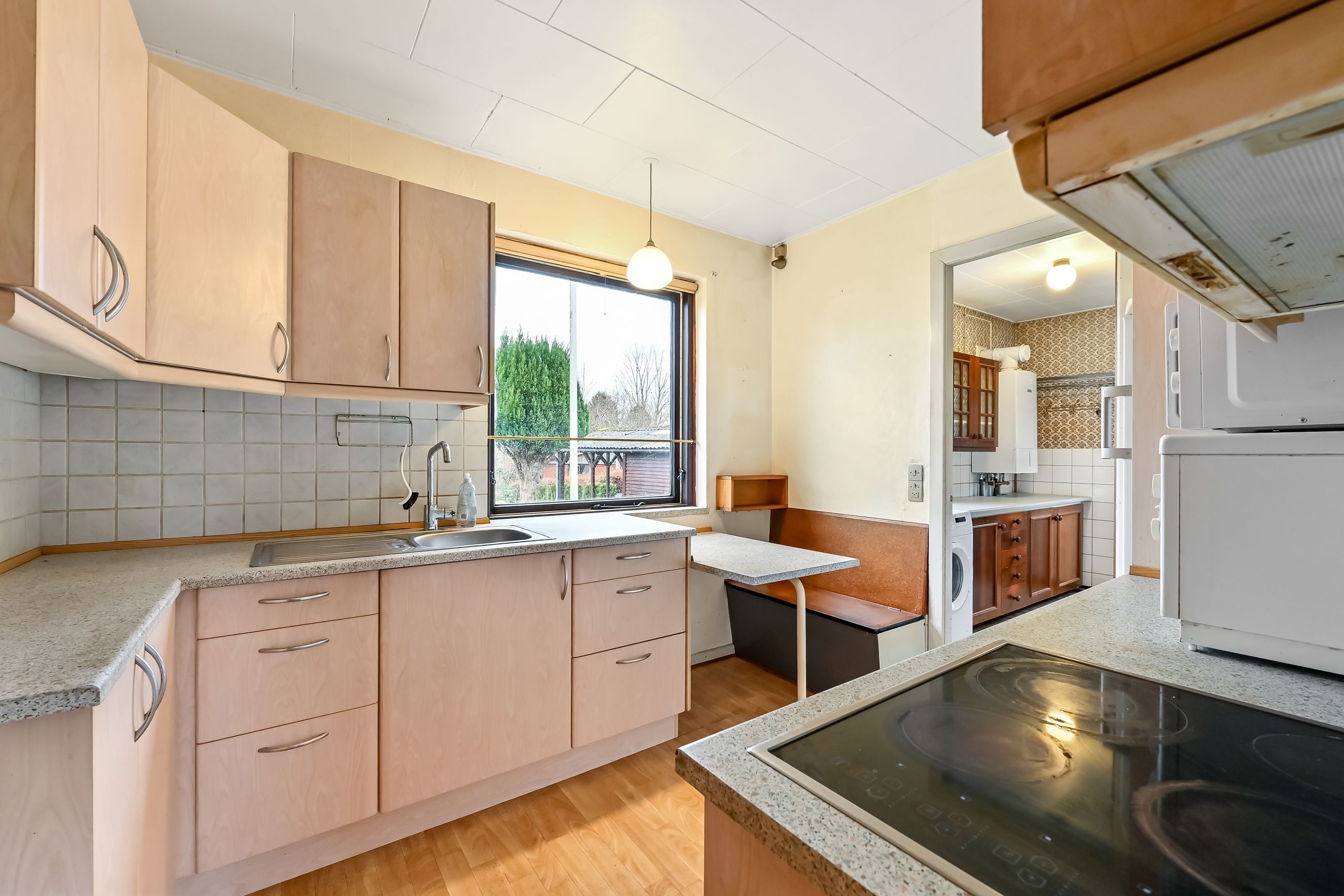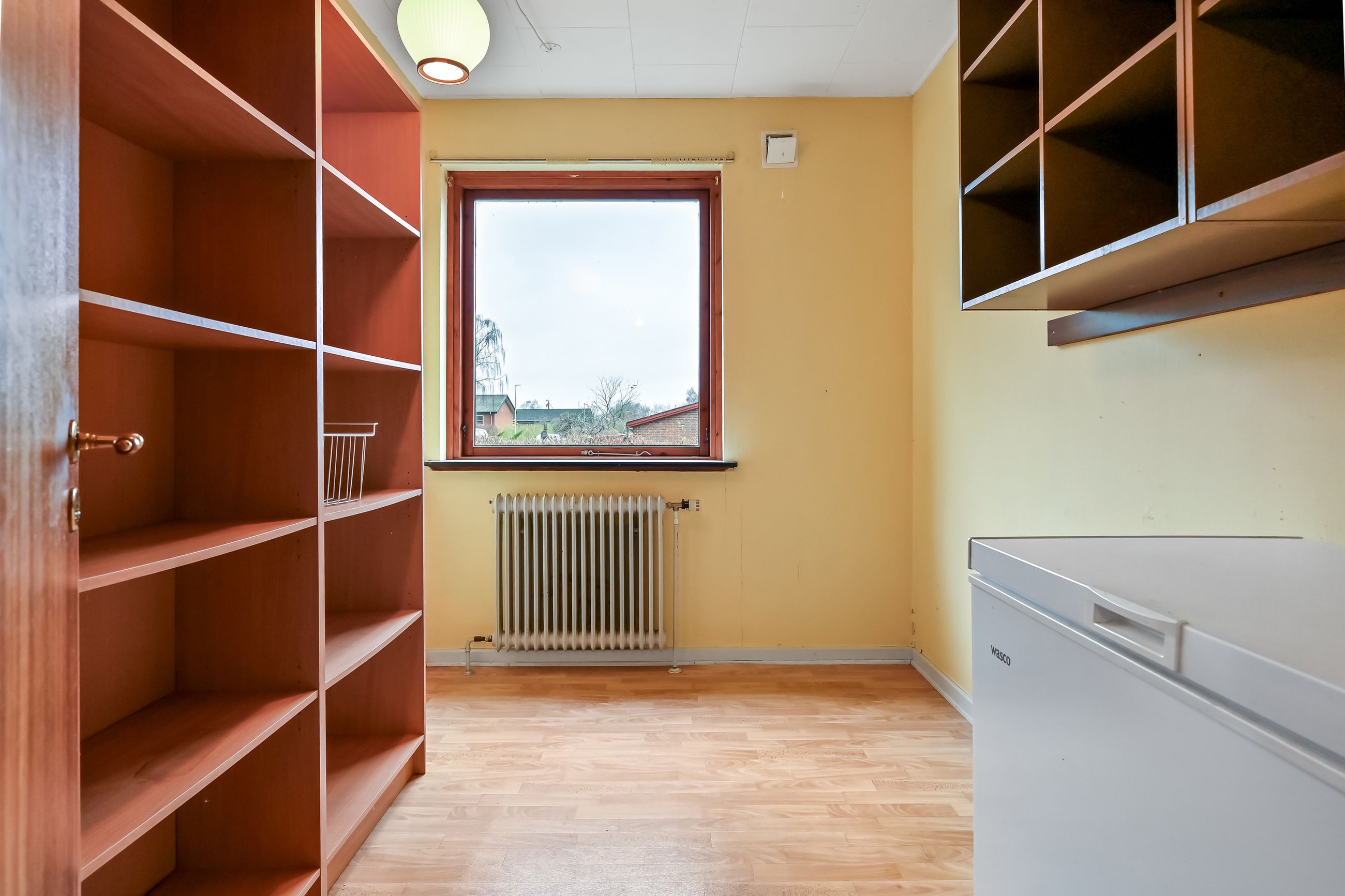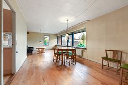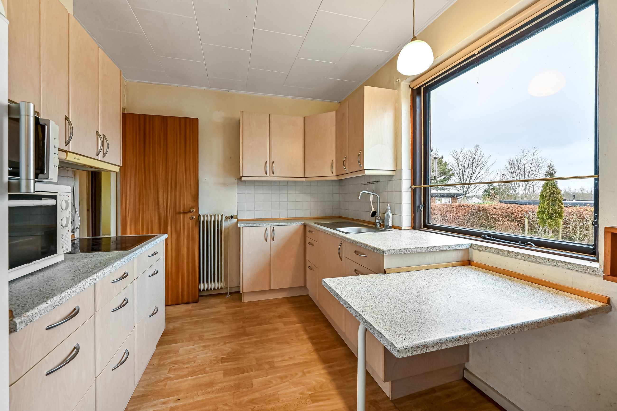Indenfor finder du et praktisk bryggers, med plads til vaskefaciliteter og opbevaring. Køkkenet er funktionelt indrettet med en hyggelig lille spiseplads, hvor morgenkaffen kan nydes. Den rummelige stue har masser af lysindfald fra de store vinduer. Her er rig mulighed for at skabe både en indbydende sofakrog samt plads til det store spisebord, hvor hele familien kan samles.