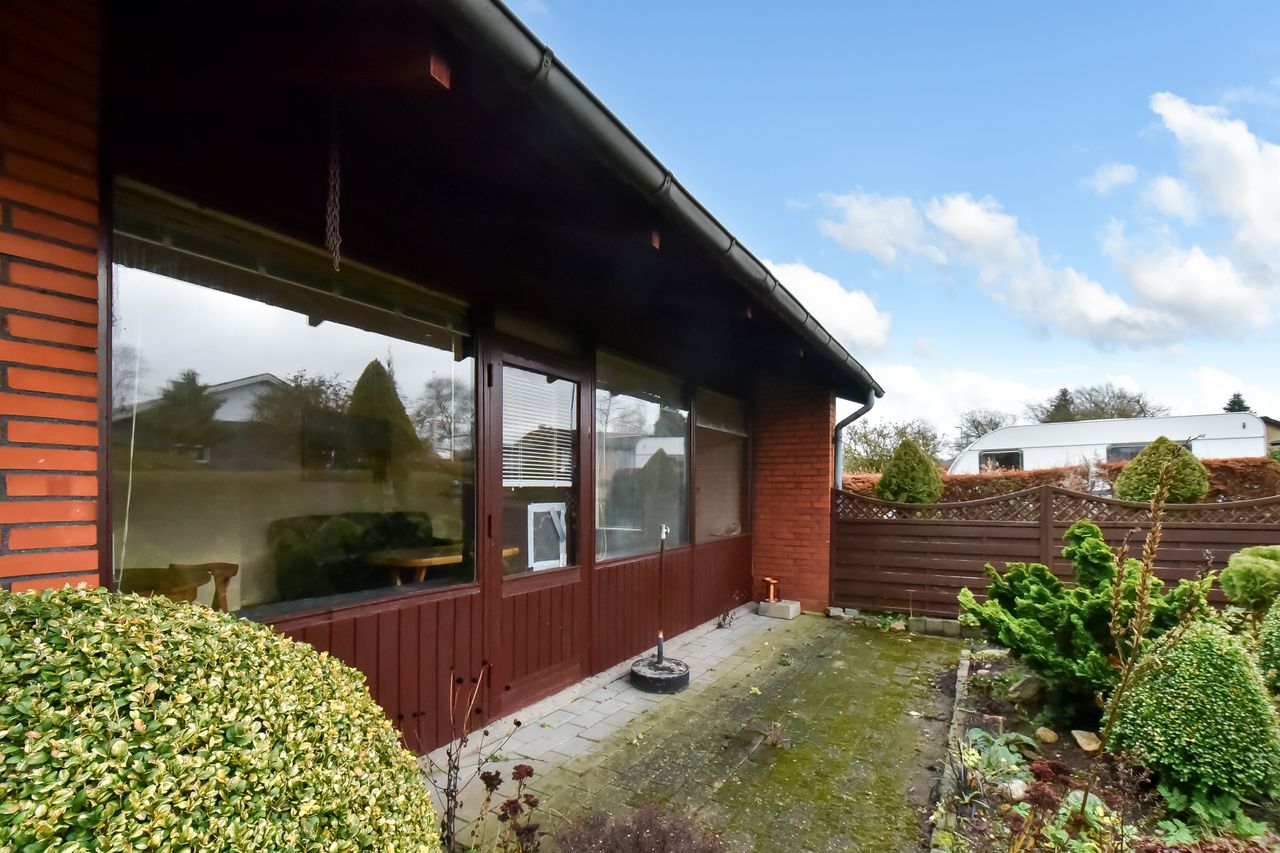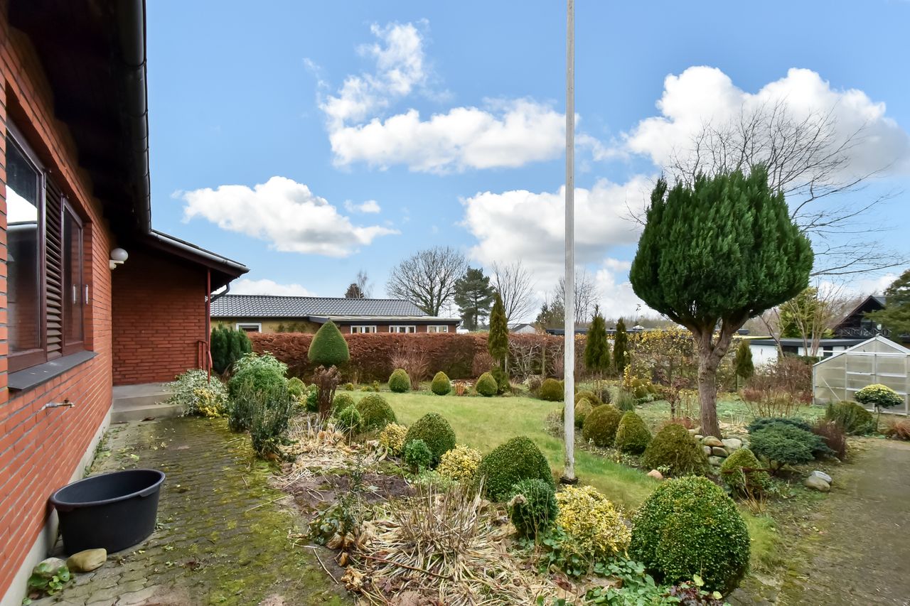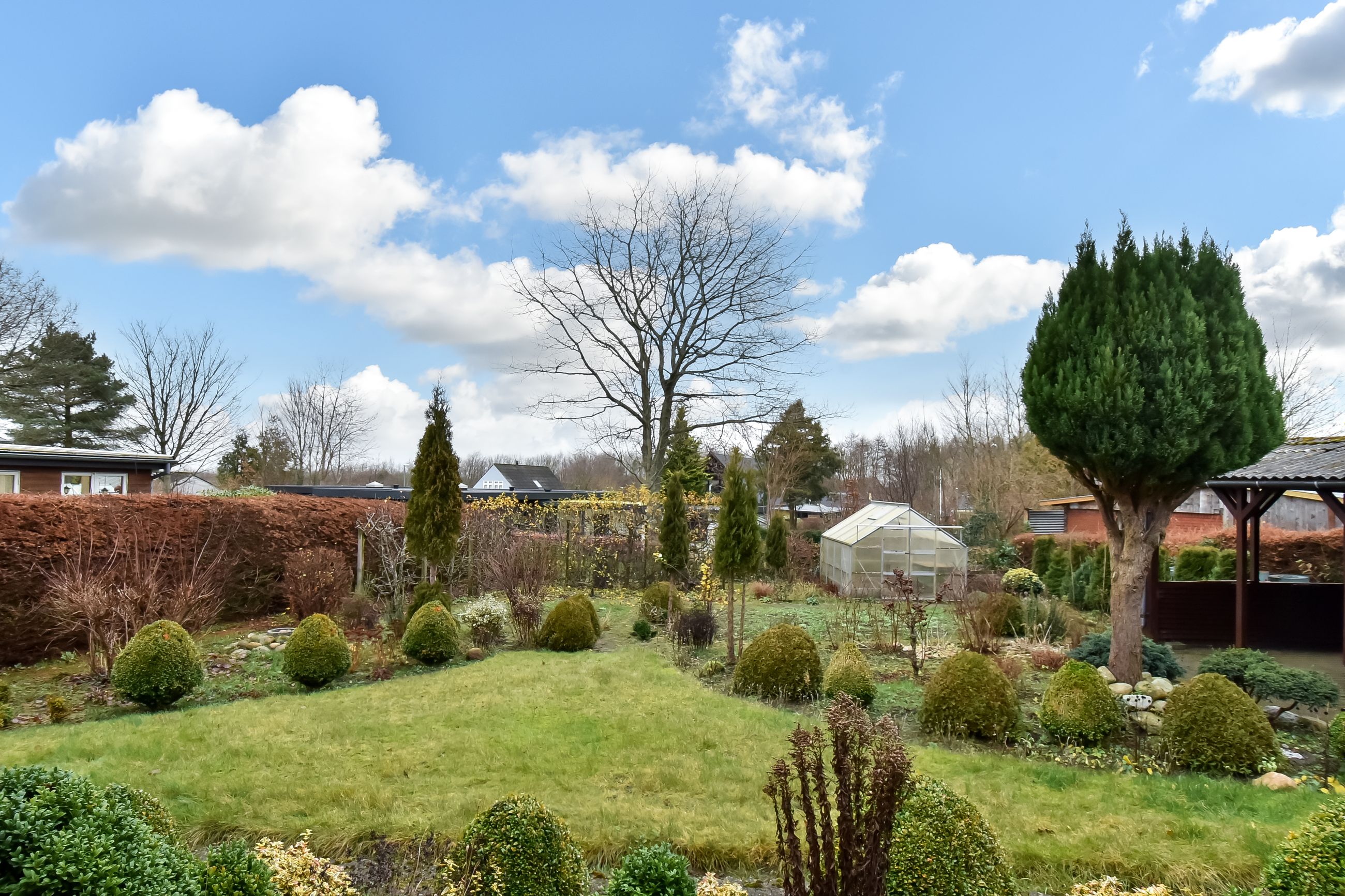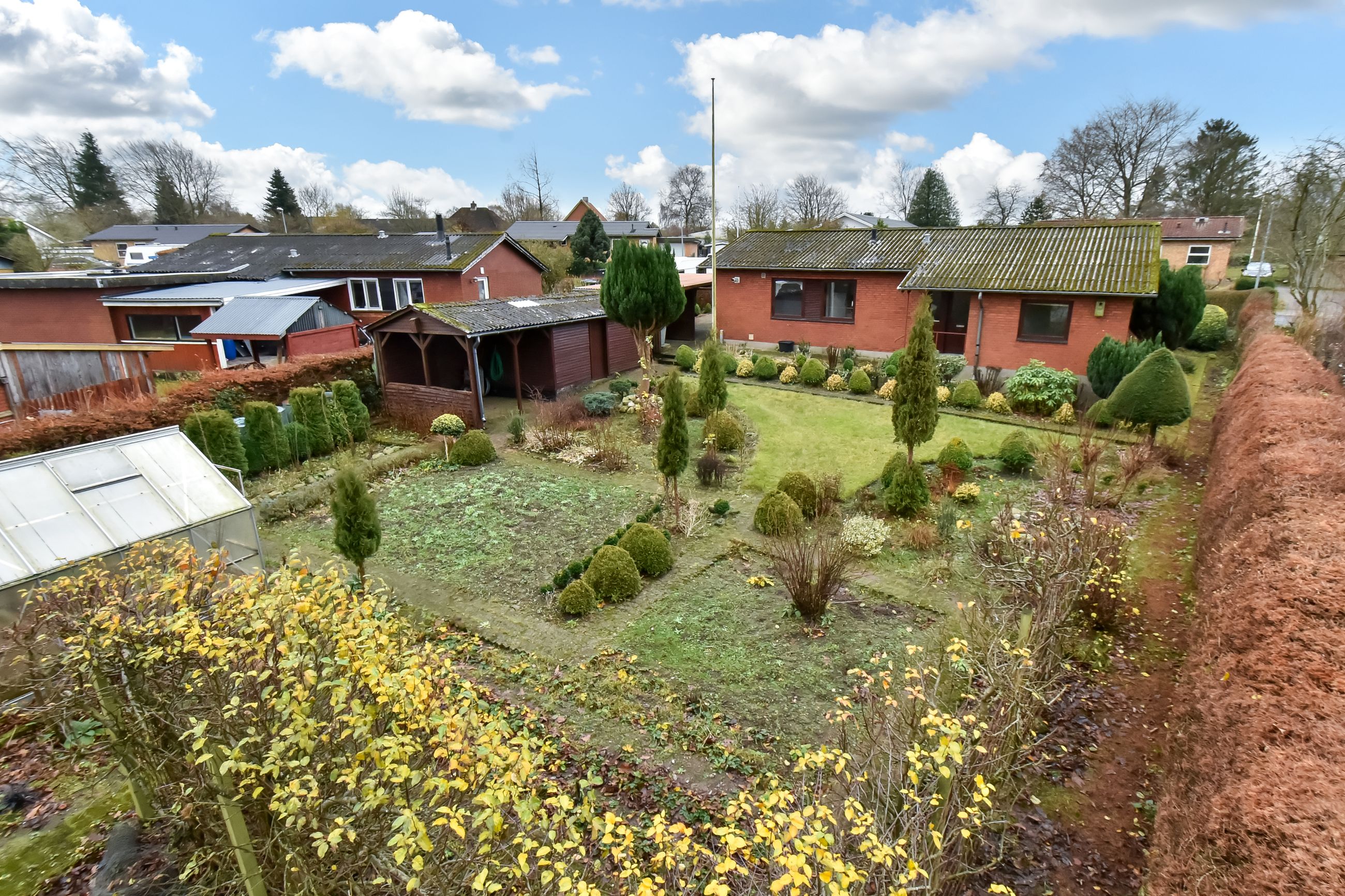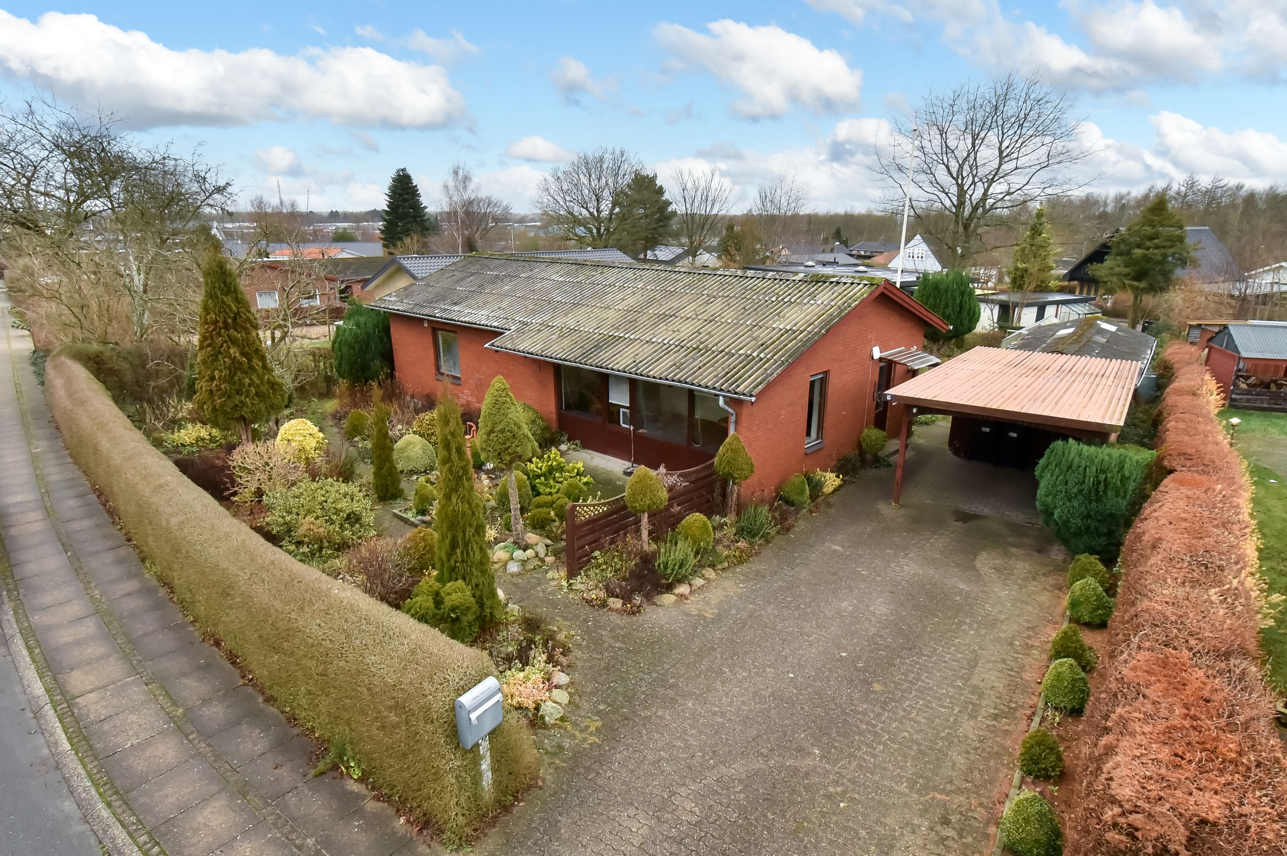 Udenfor venter en dejlig have fyldt med små bede og grønne planter – perfekt for dem der elsker at pusle i haven eller blot nyde naturen omkring sig. Tilhørende er en carport og et skur/værksted, som tilbyder plads til gør-det-selv projekter eller ekstra opbevaring. Den overdækkede terrasse inviterer til afslapning året rundt uanset vejret.