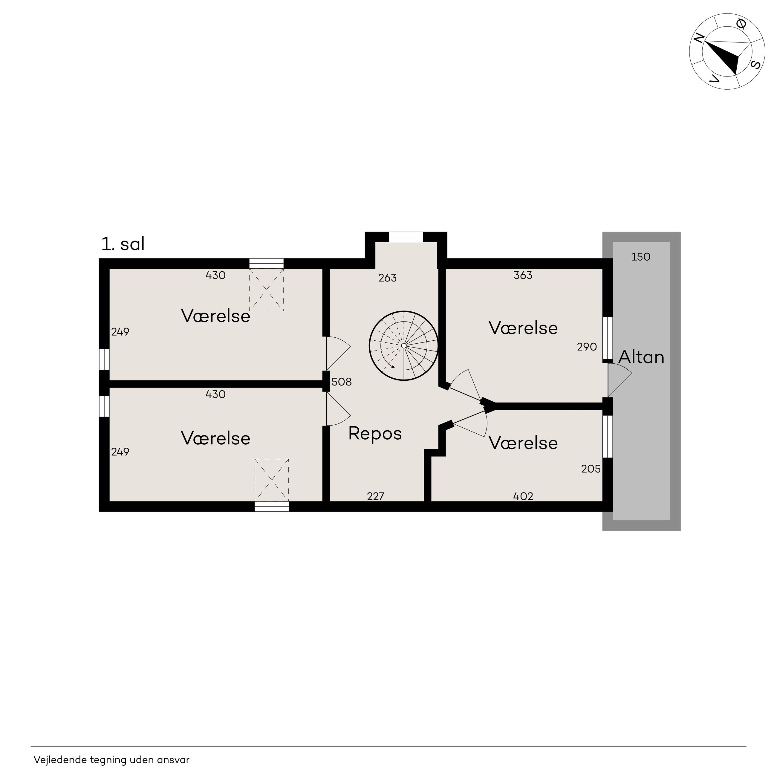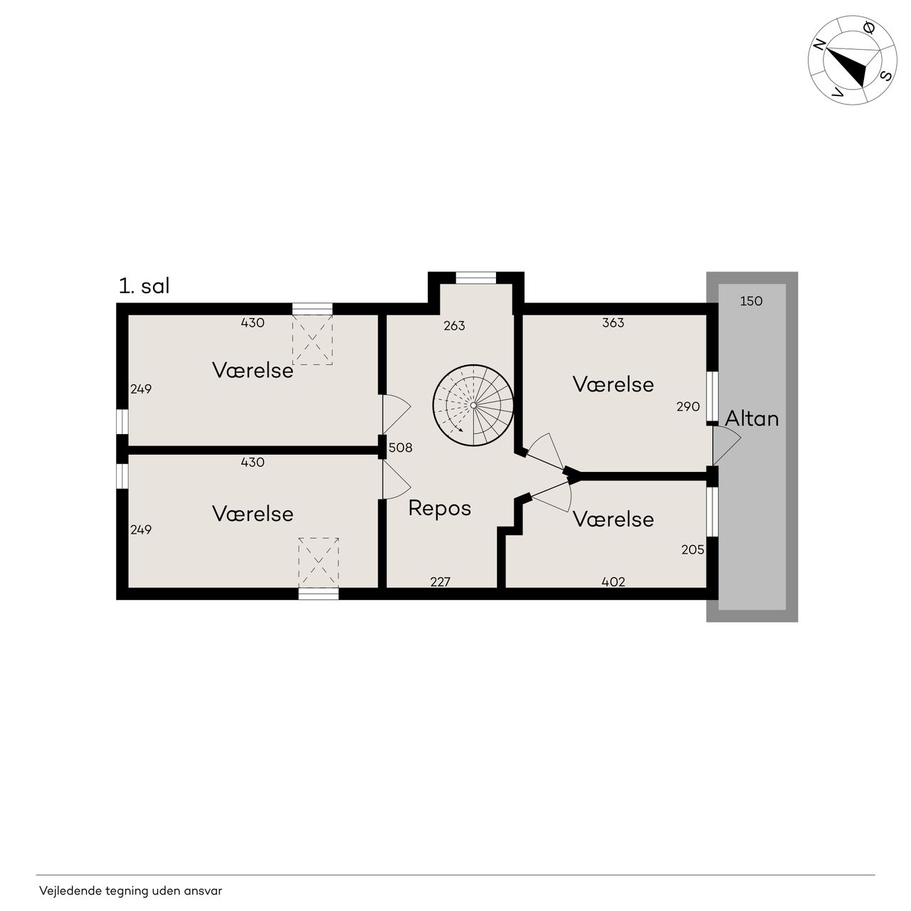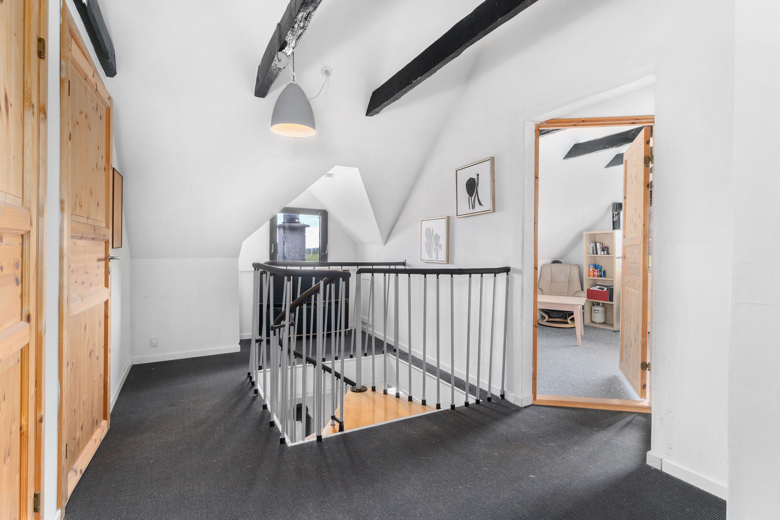 udnyttet med fem værelser, hvoraf de fire er placeret på førstesalen. Samtidig får I et pænt renoveret