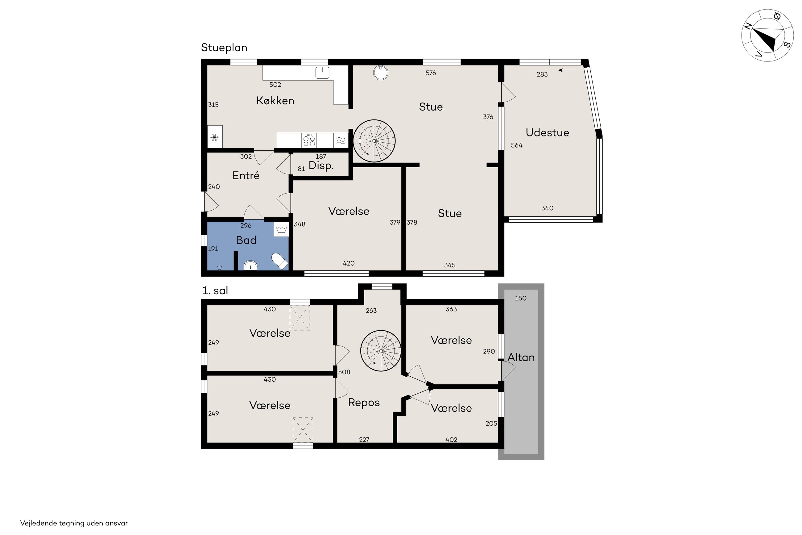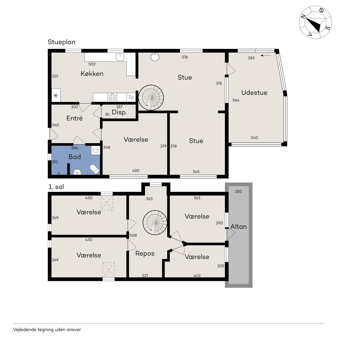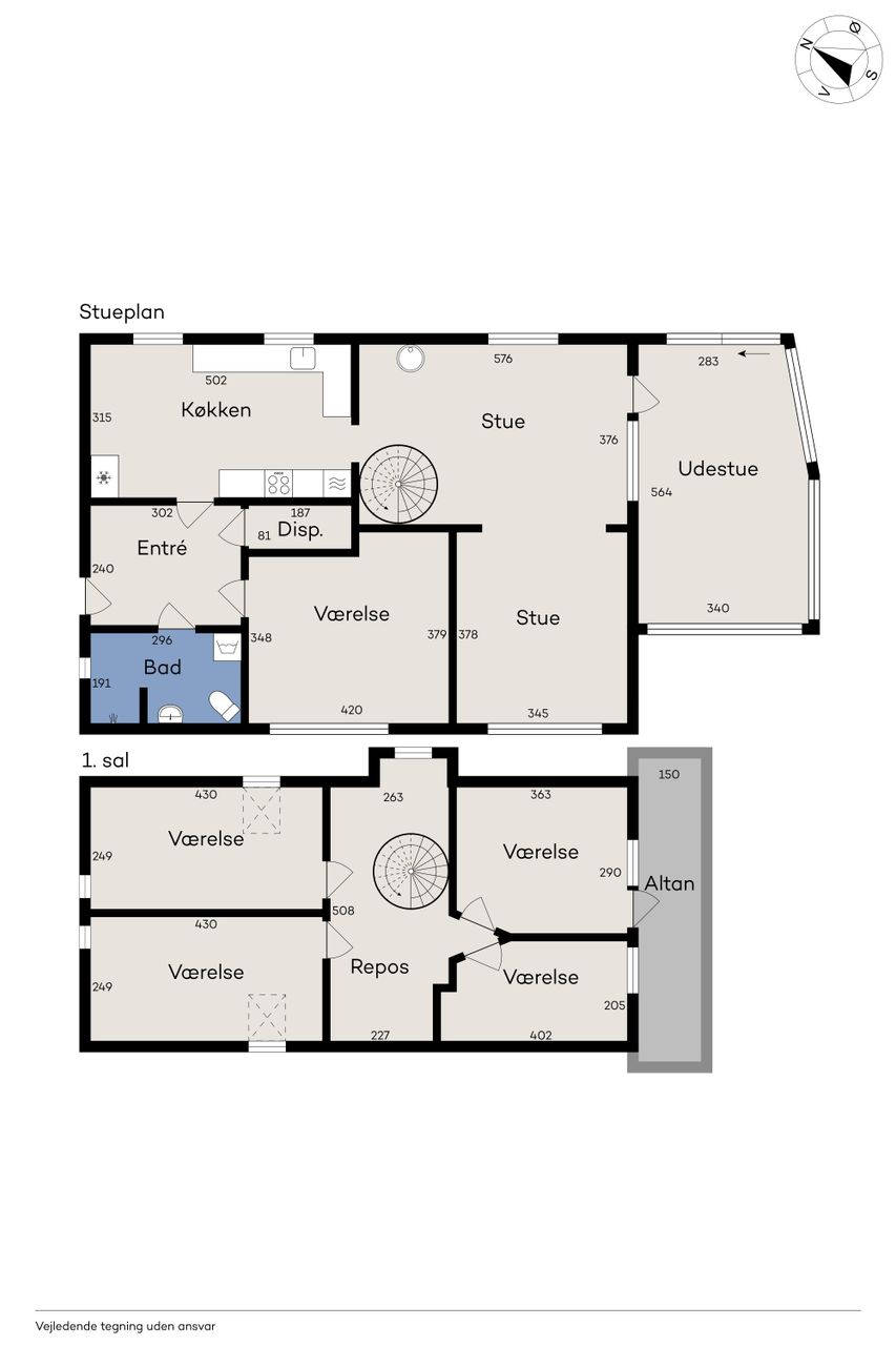 udnyttet med fem værelser, hvoraf de fire er placeret på førstesalen. Samtidig får I et pænt renoveret
