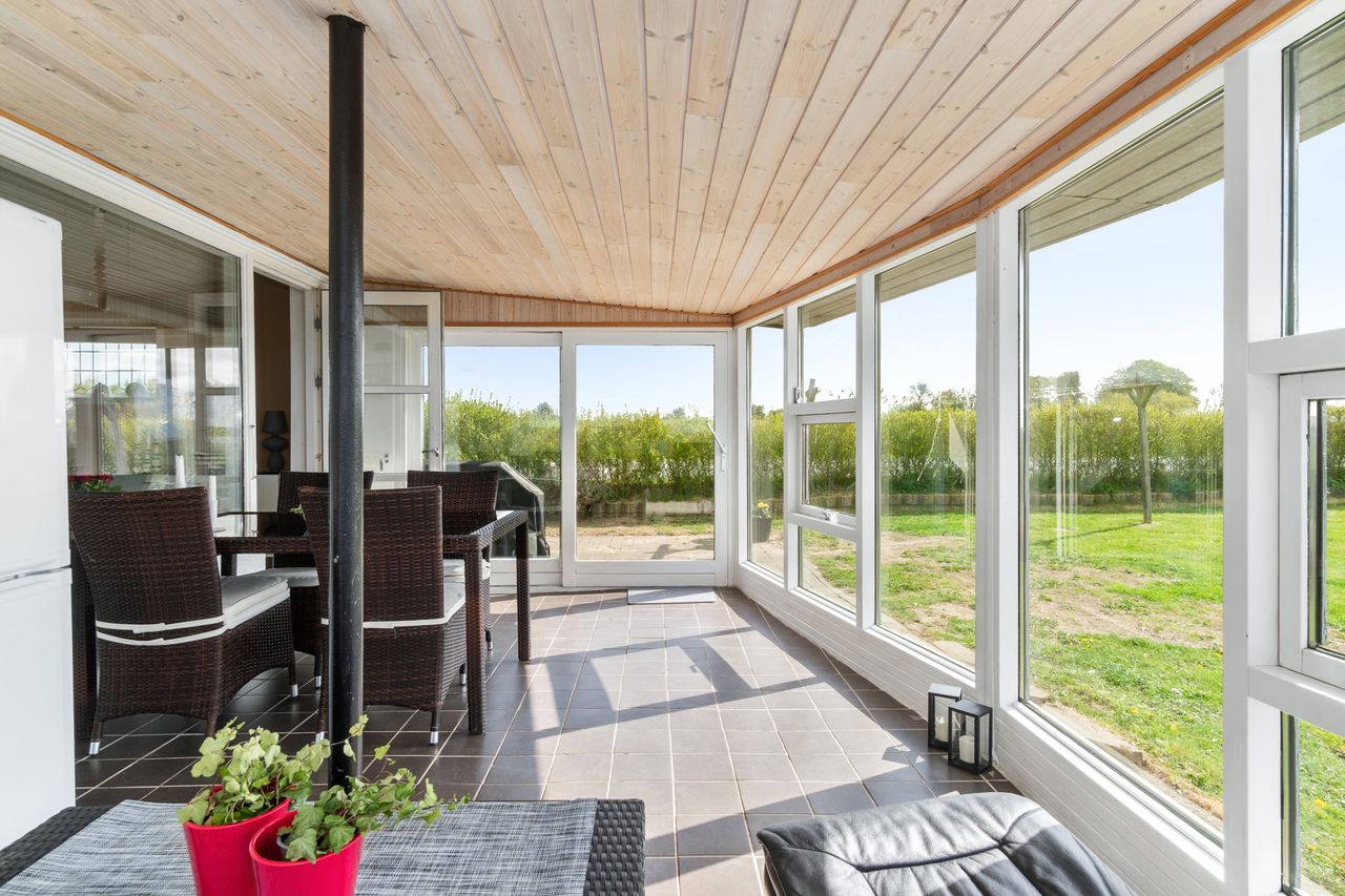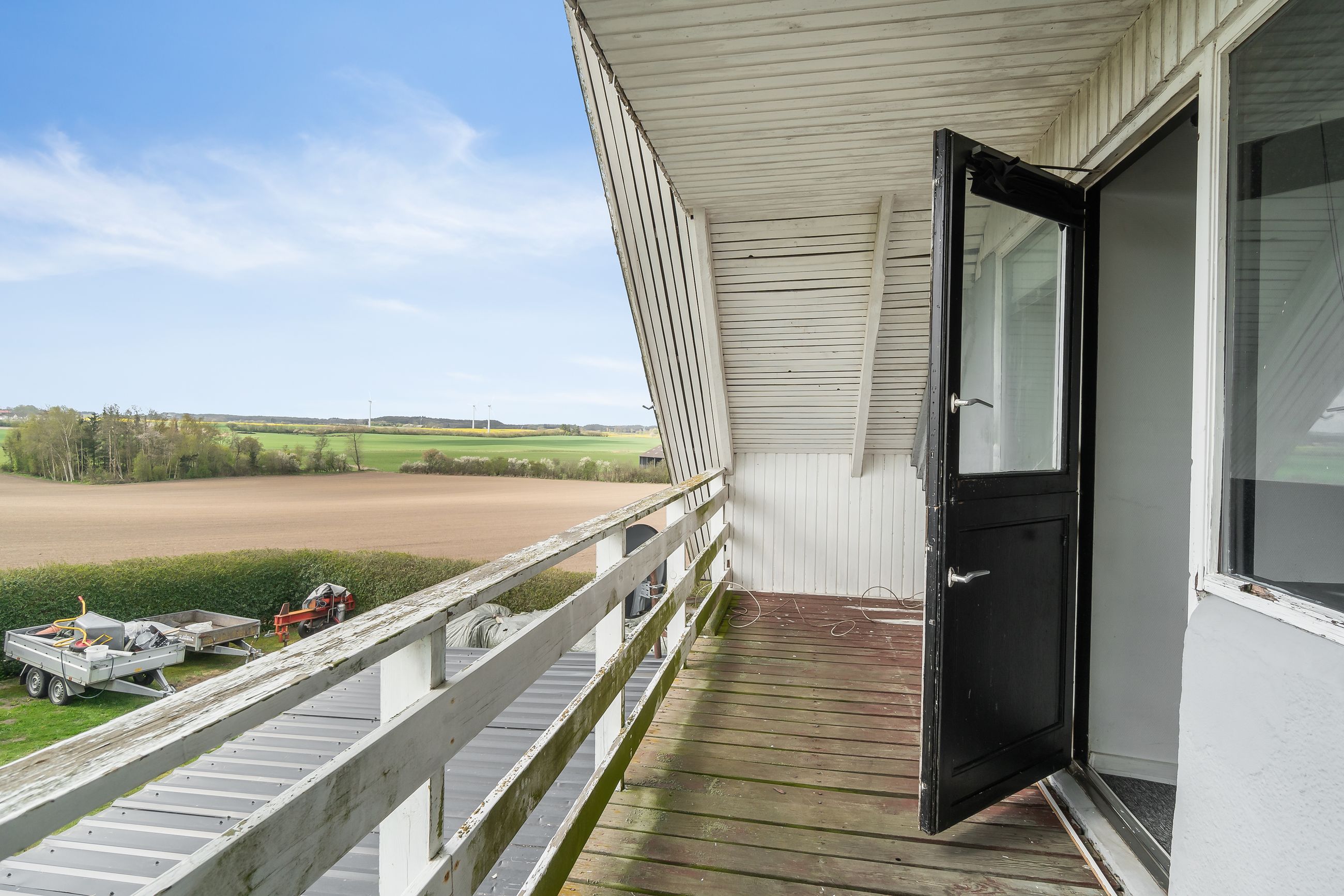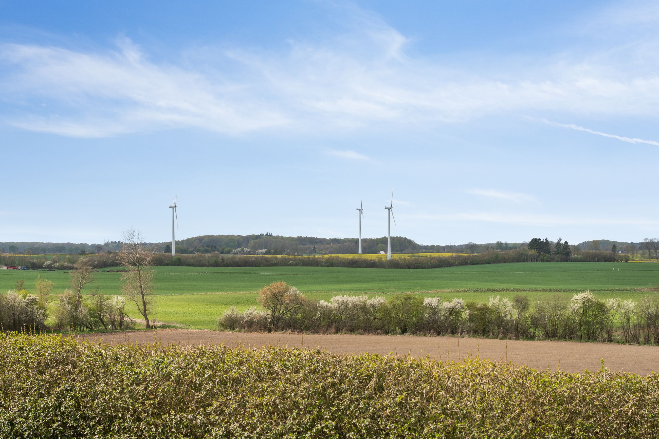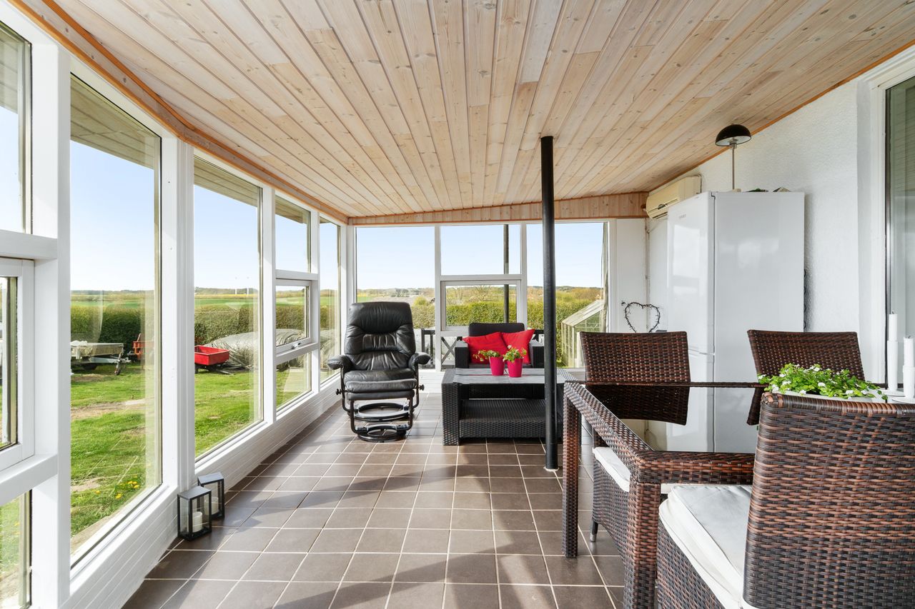 marklandskab mod syd. Den fine udsigt kan I nyde fra såvel udestuen som den overdækkede svalegang