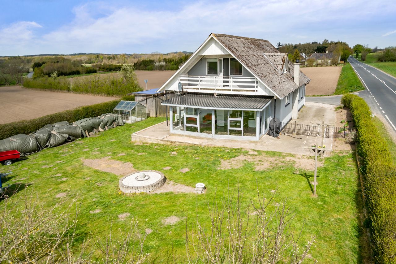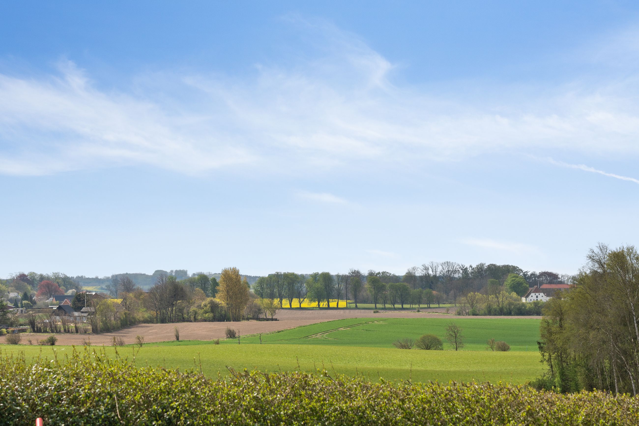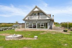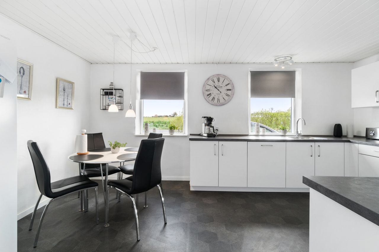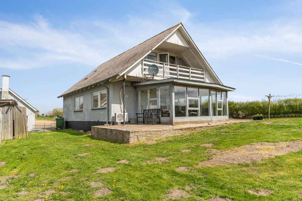 marklandskab mod syd. Den fine udsigt kan I nyde fra såvel udestuen som den overdækkede svalegang