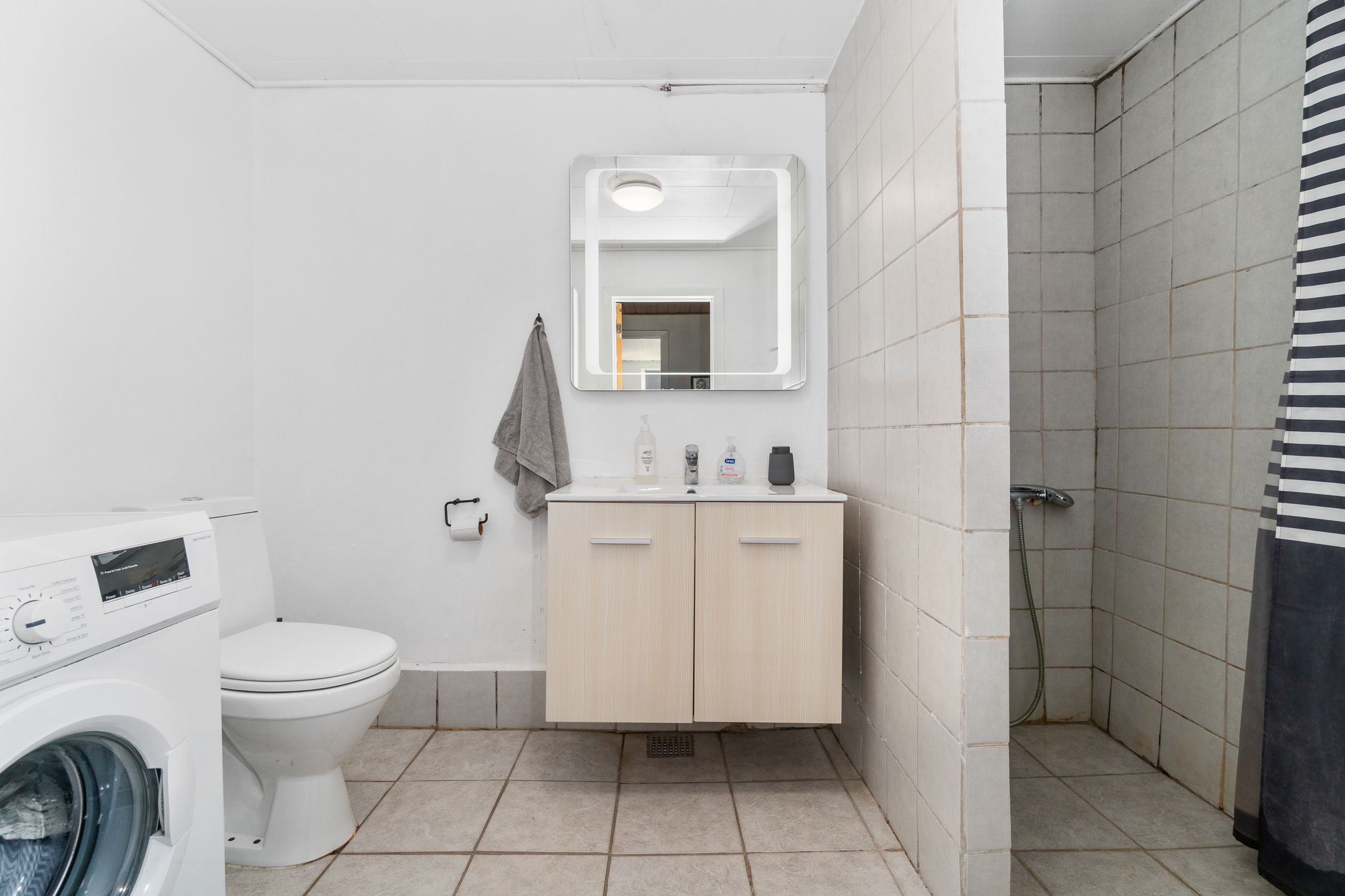 brusebadeværelse med gulvvarme og plads til en vaskemaskine. Den kan ligeledes fremvise et 3 år