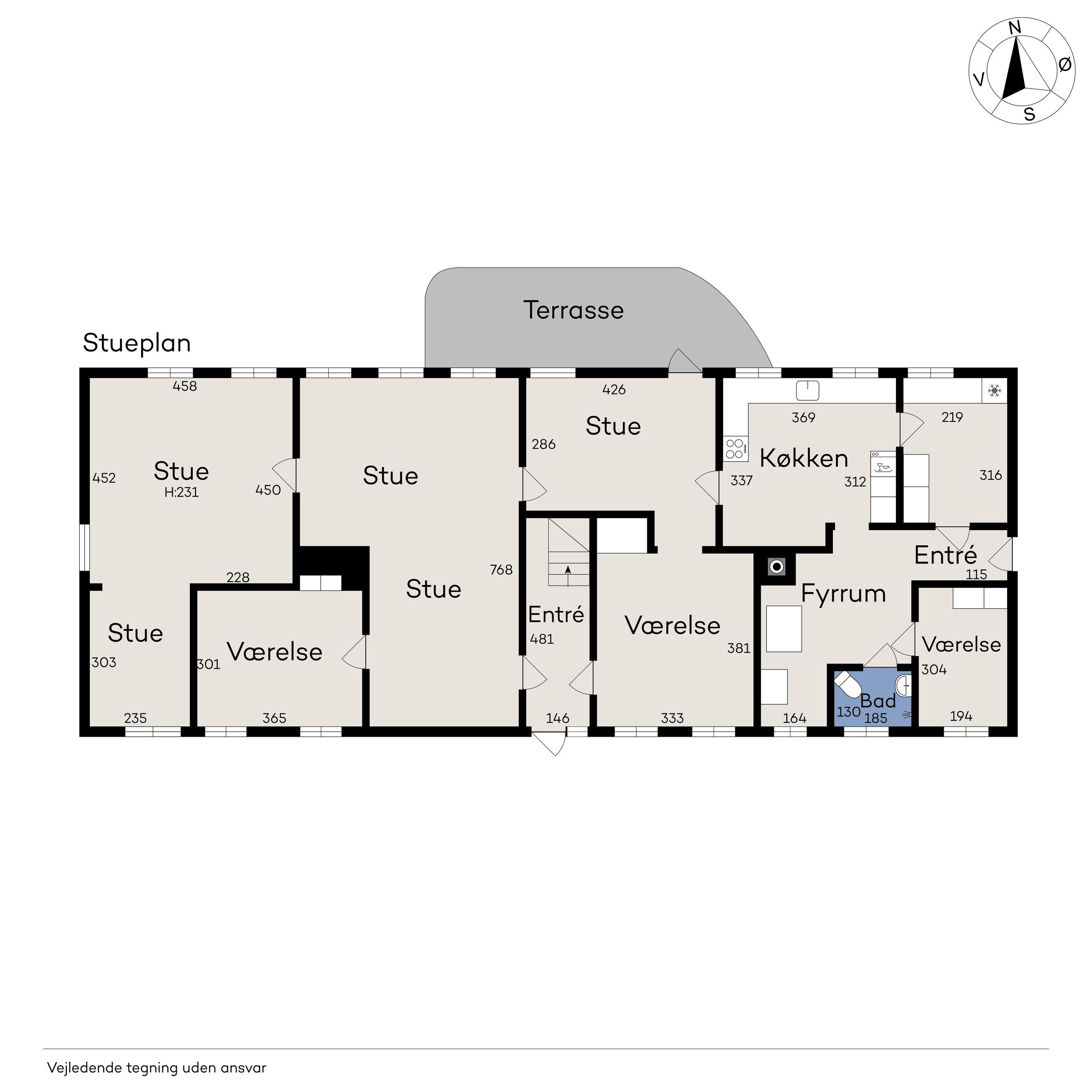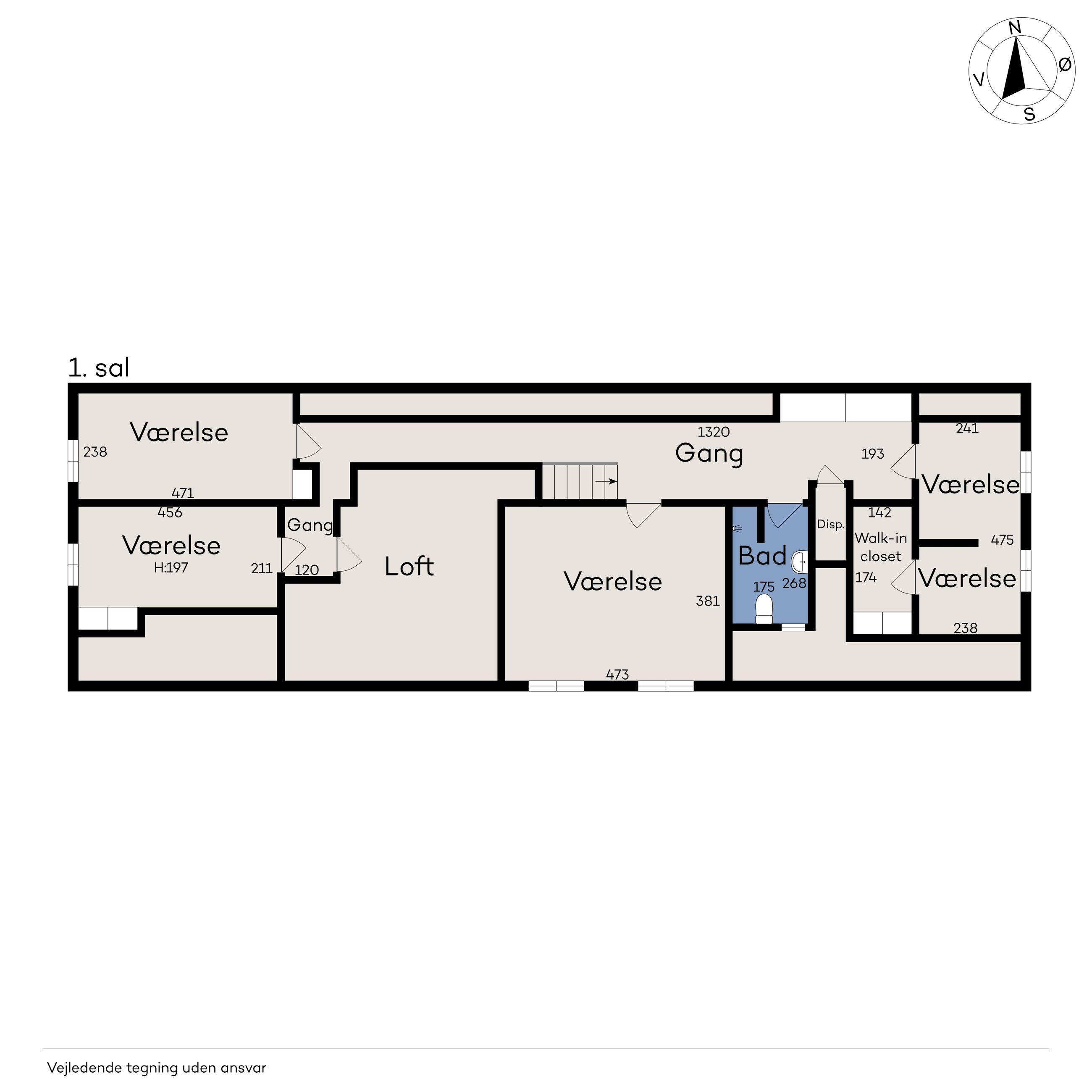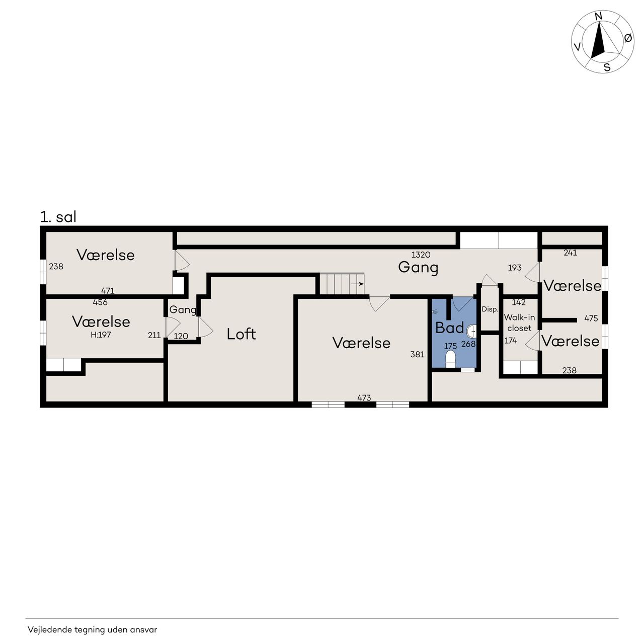 opholdsrum eller etablere flere værelser. Her er god plads til en børnefamilie, så I kan eksempelvis