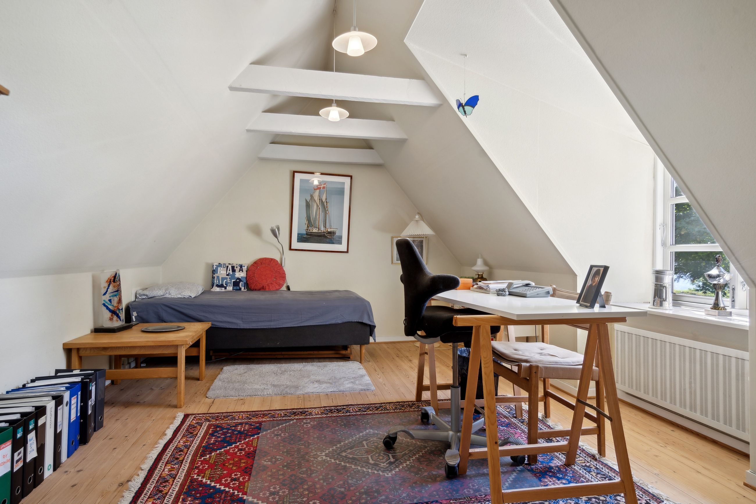 På 1. sal venter gode værelser, som giver rigelig plads til familien eller gæster. Huset er perfekt placeret med en fantastisk have, der går helt ned til Svendborg Sund, og du har også adgang til egen bade/bådebro.