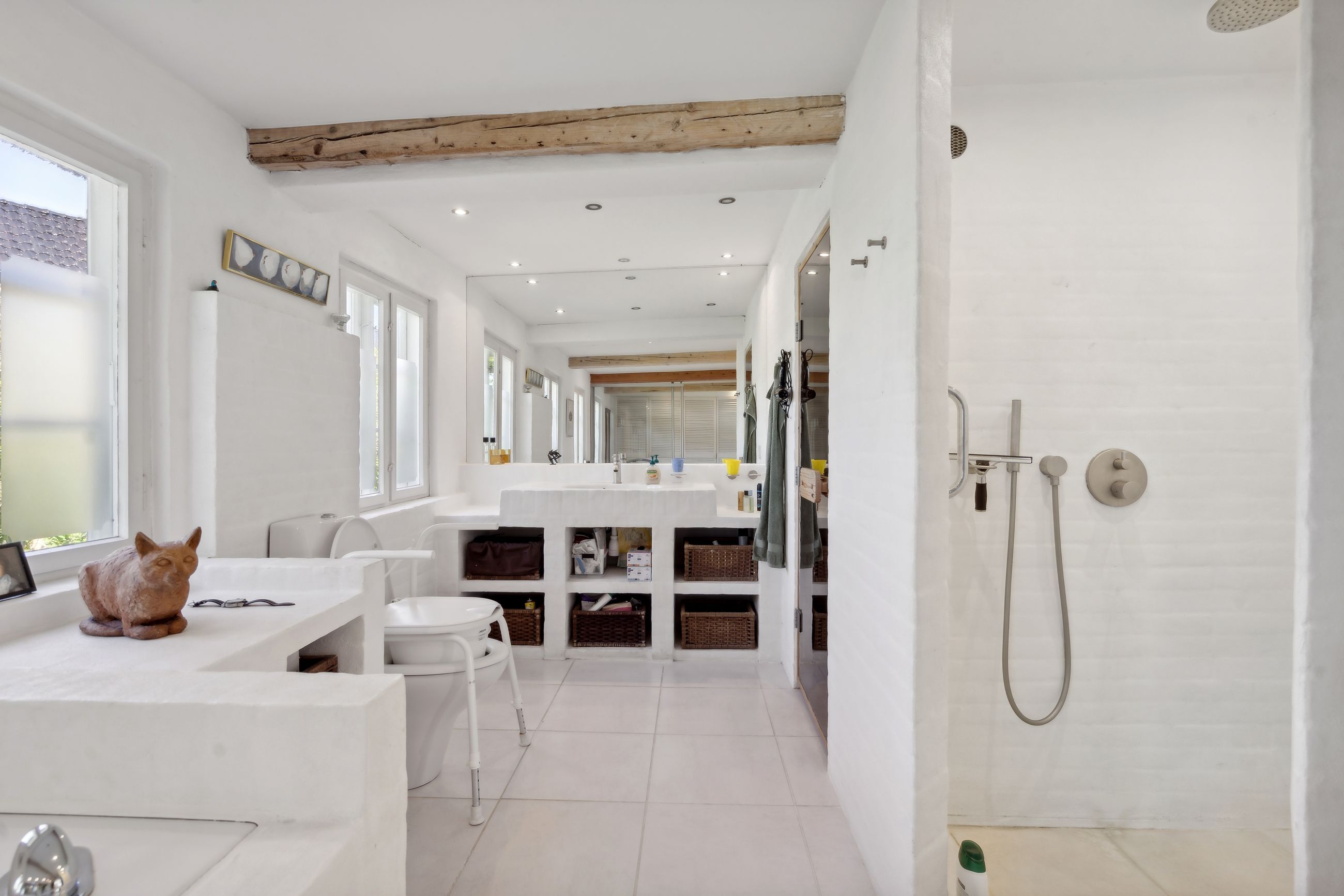 Indendørs finder du et flot, veludstyret køkken, der åbner op til en stor og lys stue med udsigt over vandet. Boligen byder på et flot stort badeværelse med badekar, samt et ekstra gæstetoilet for øget bekvemmelighed.