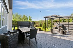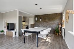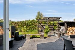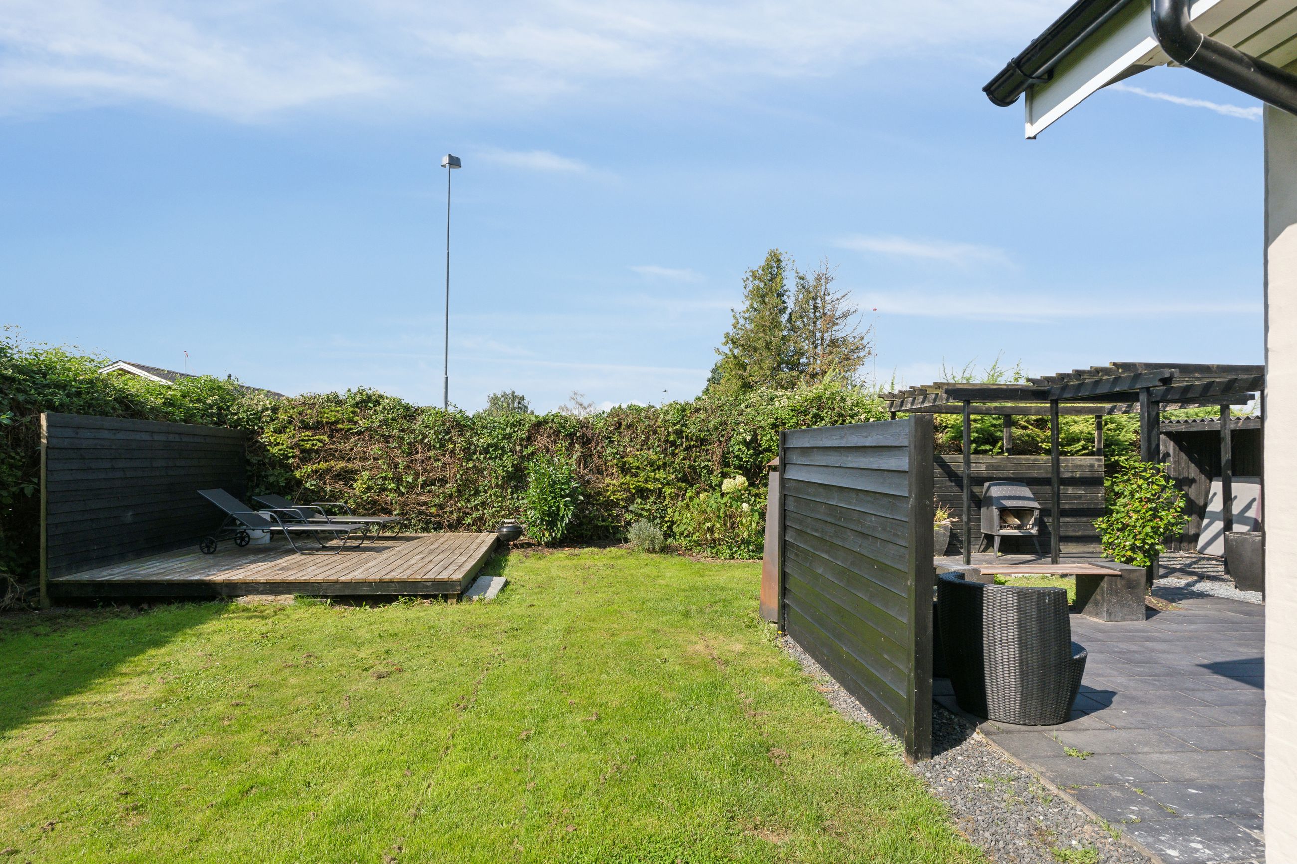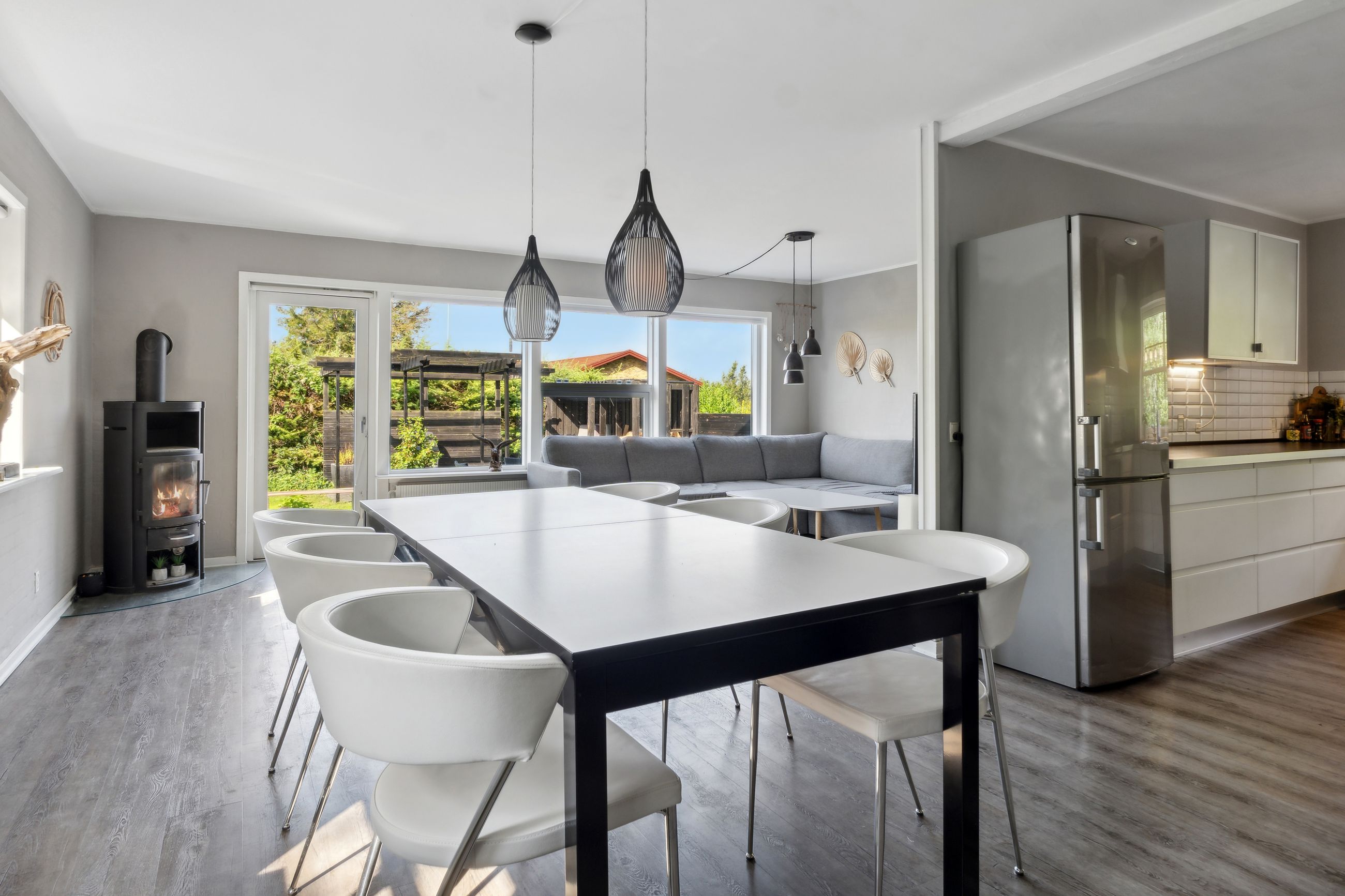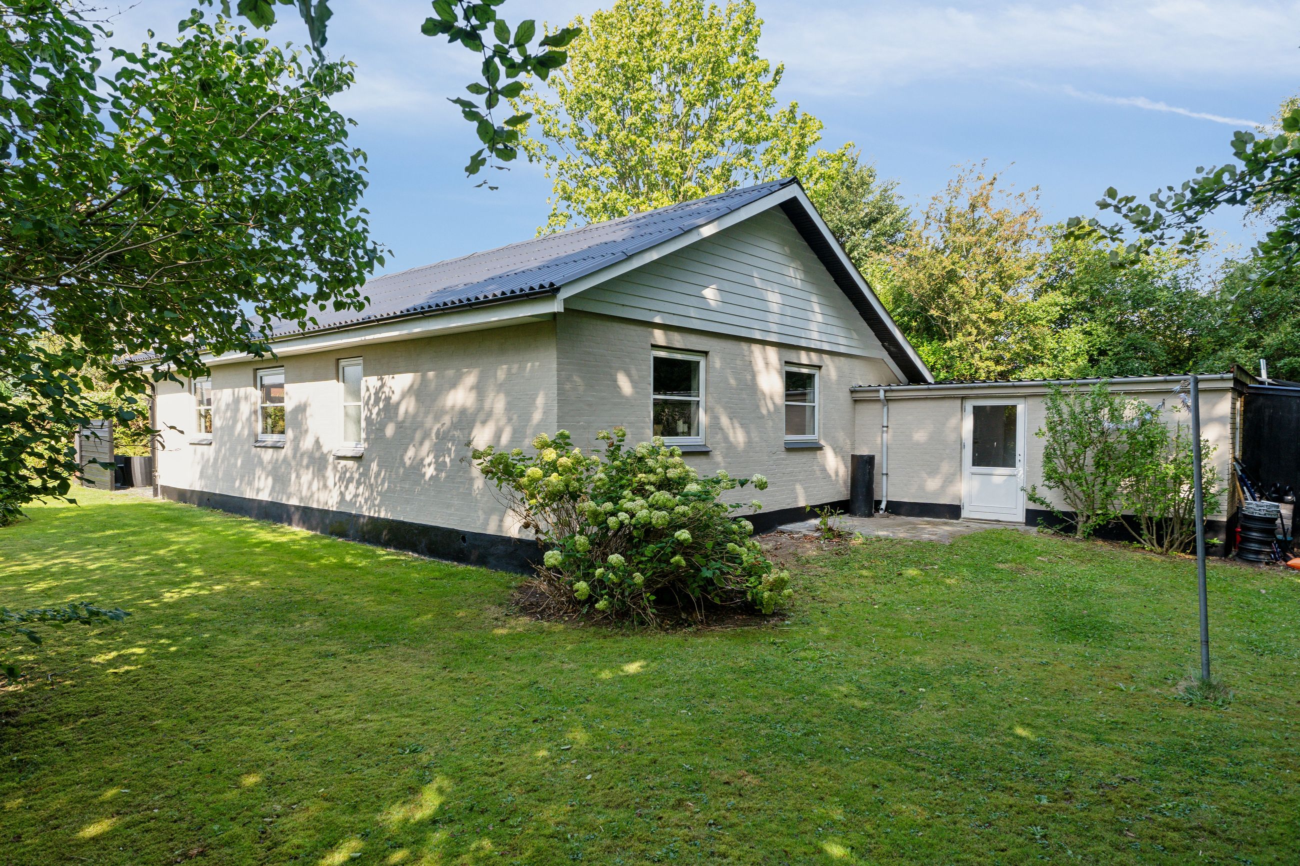 Villaen byder på 110 kvm veludnyttet beboelse i ét plan. Indretningen er moderne med et nyere køkken, som ligger i åben forbindelse med en rummelig stue. Fra stuen er der direkte adgang til en hyggelig vestvendt fliseterrasse, hvor du kan nyde udendørslivet.