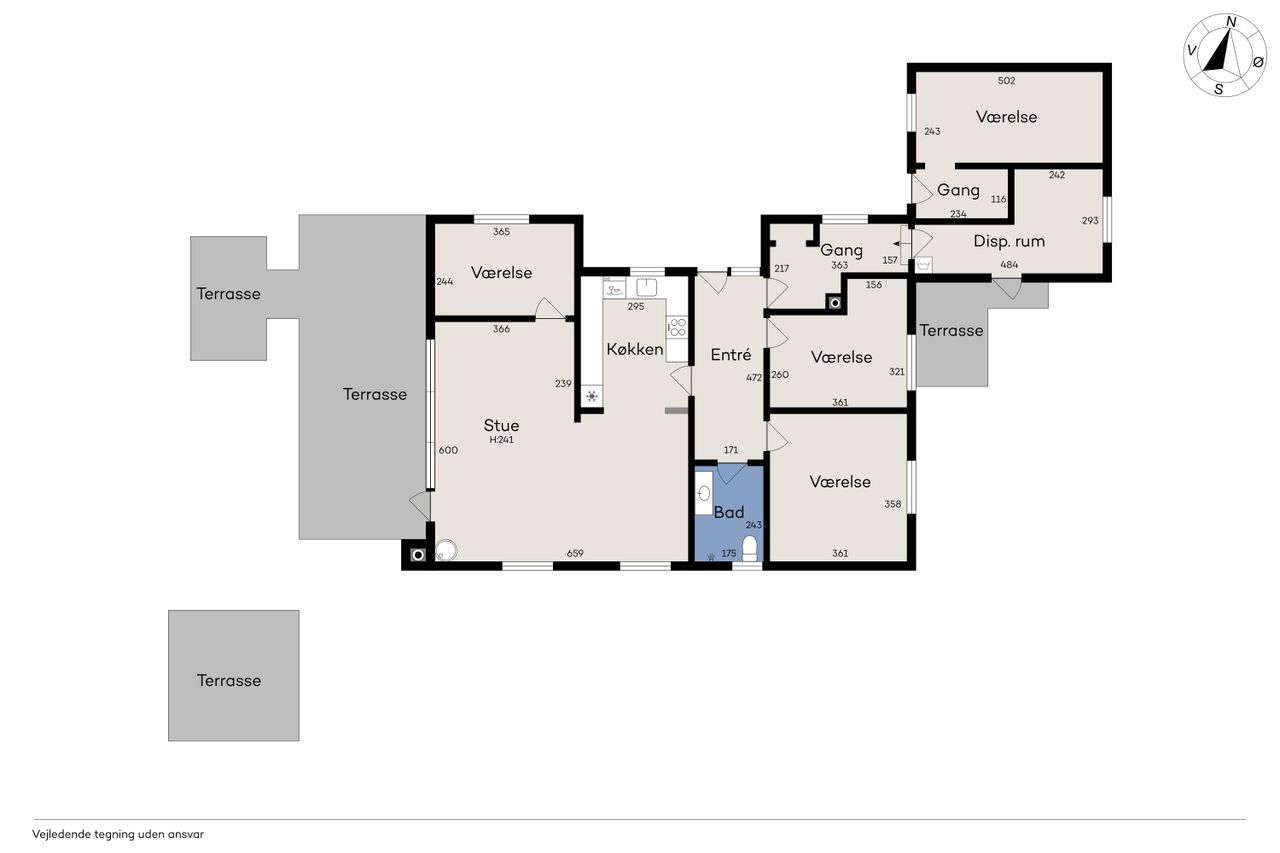 Boligen rummer desuden fire gode værelser samt et badeværelse med bruser.