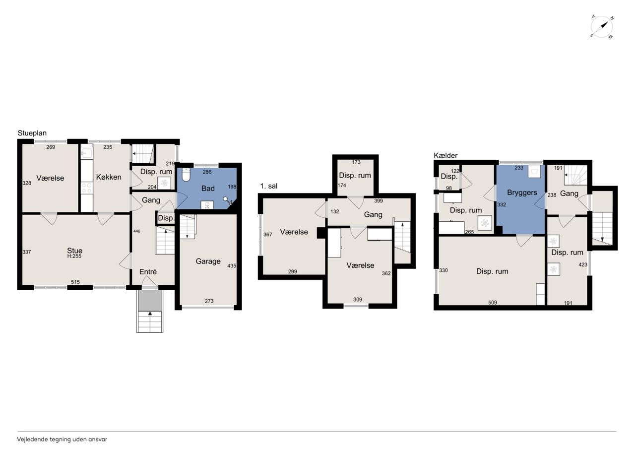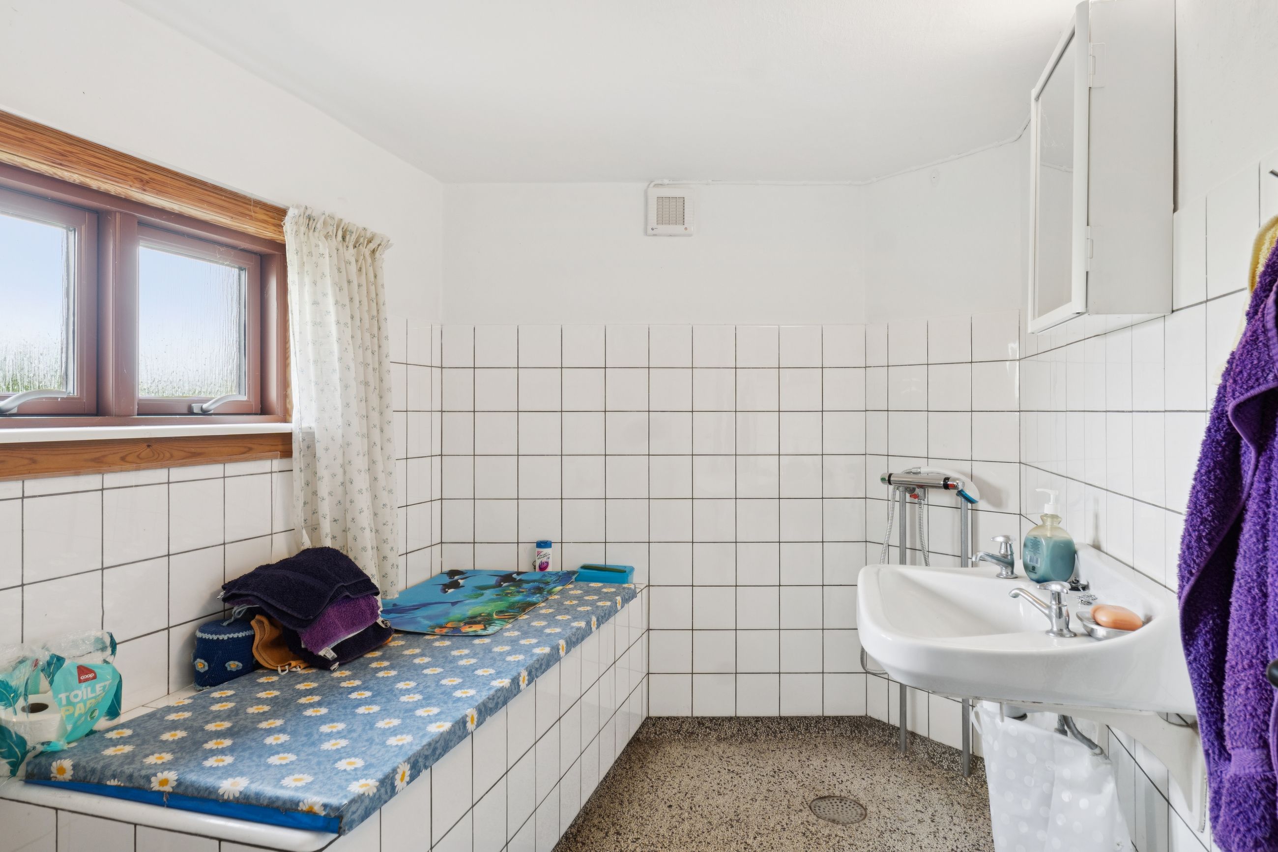 Kælderen rummer et praktisk bryggers med plads til vaskemaskine samt flere disponible rum med mange anvendelsesmuligheder – f.eks. opbevaring, værksted eller hobbyrum.