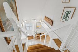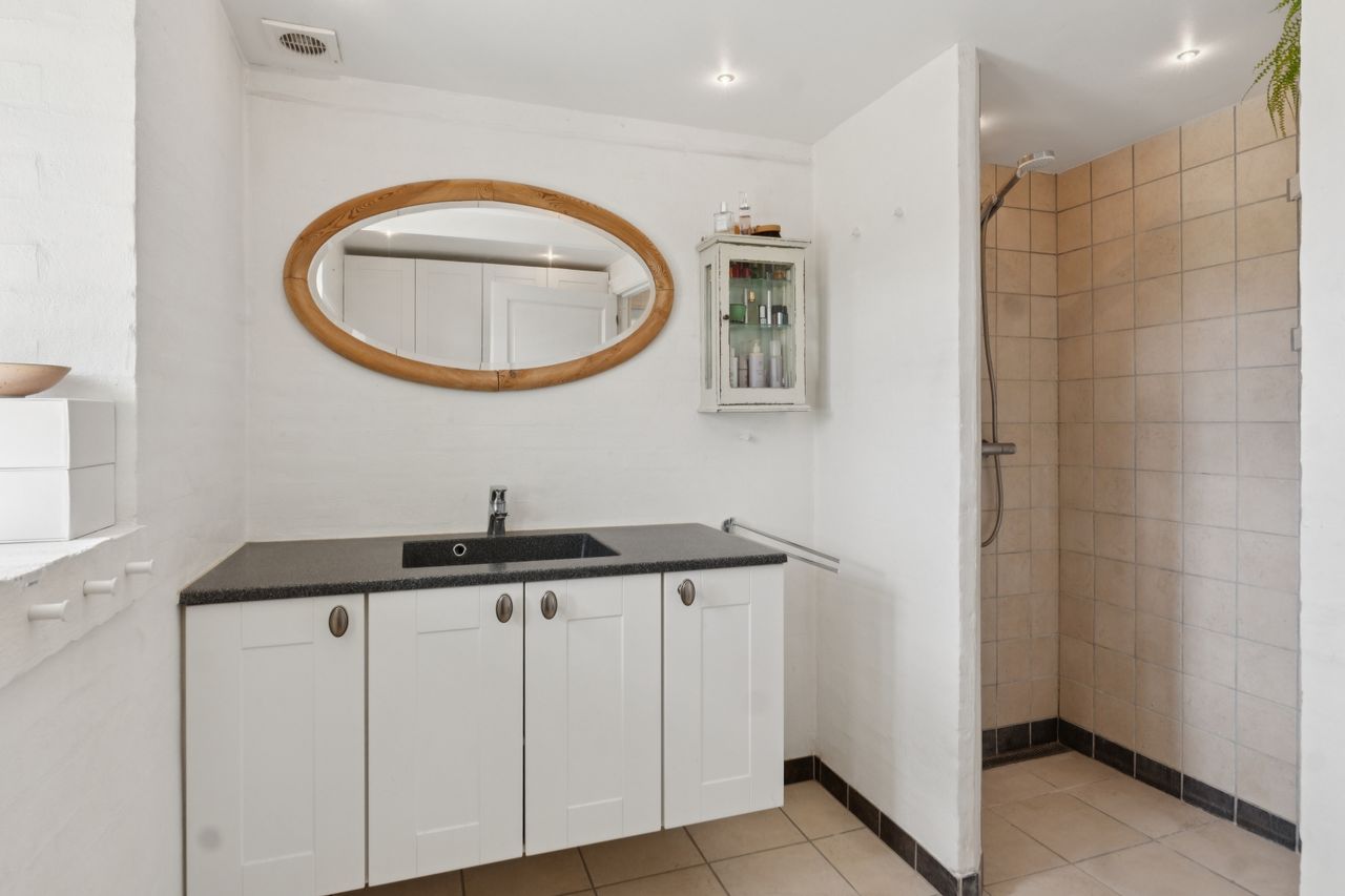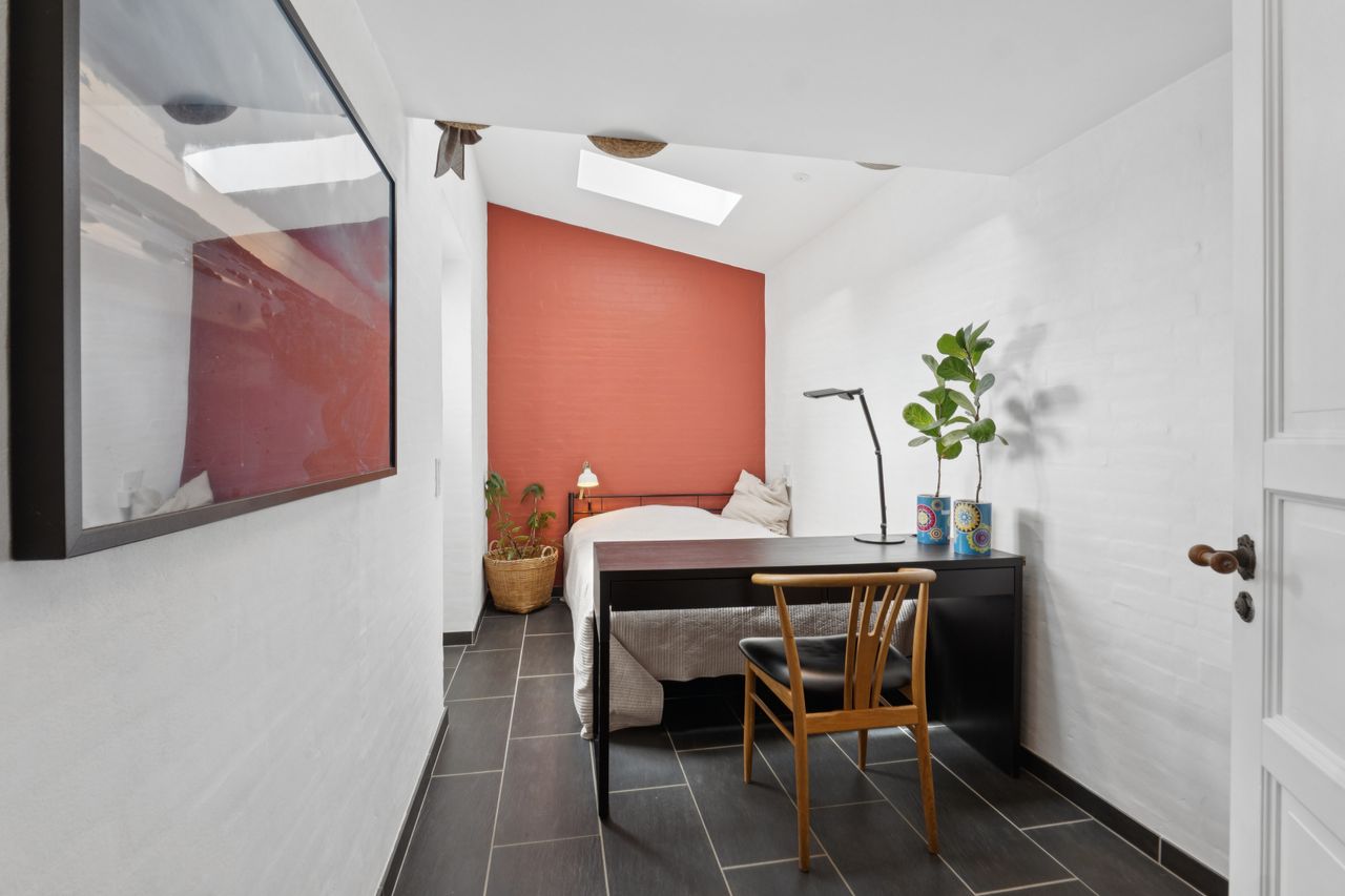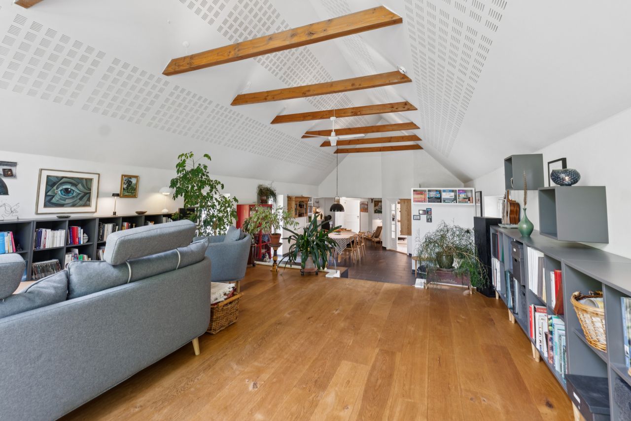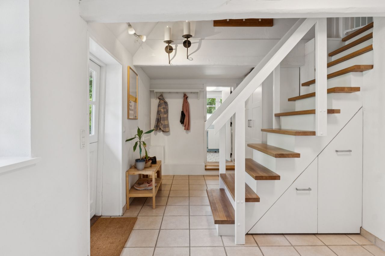 Et par trin oppe finder I den hyggelige stue med udsigt til haven og marken, mens stueplan desuden byder på endnu et åbent køkken, to badeværelser med brus, bryggers og to værelser. På første sal venter to store værelser og en stor opholdsstue med fleksible indretningsmuligheder – hjemmearbejdsplads, kreativt værksted, teenagestue eller legerum.