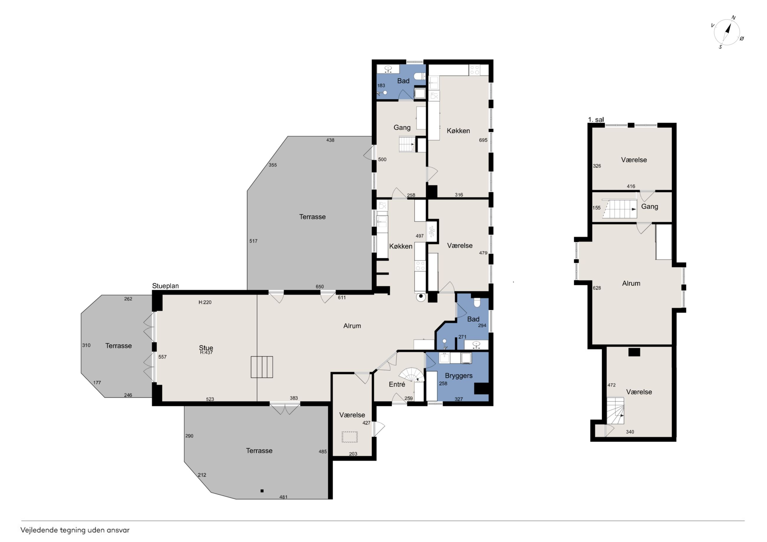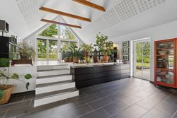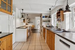 Ejendommen er ideel for familien, der ønsker albuerum – både ude og inde. I stueplan venter et smukt og lyst køkken-alrum i forskudte plan, som danner husets naturlige samlingspunkt. Herfra er der direkte udgang til flere terrasser mod syd, øst og vest – oplagte til morgenkaffen, leg i haven og lange sommeraftener med grill.