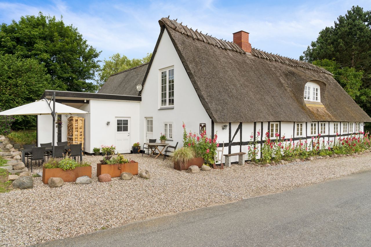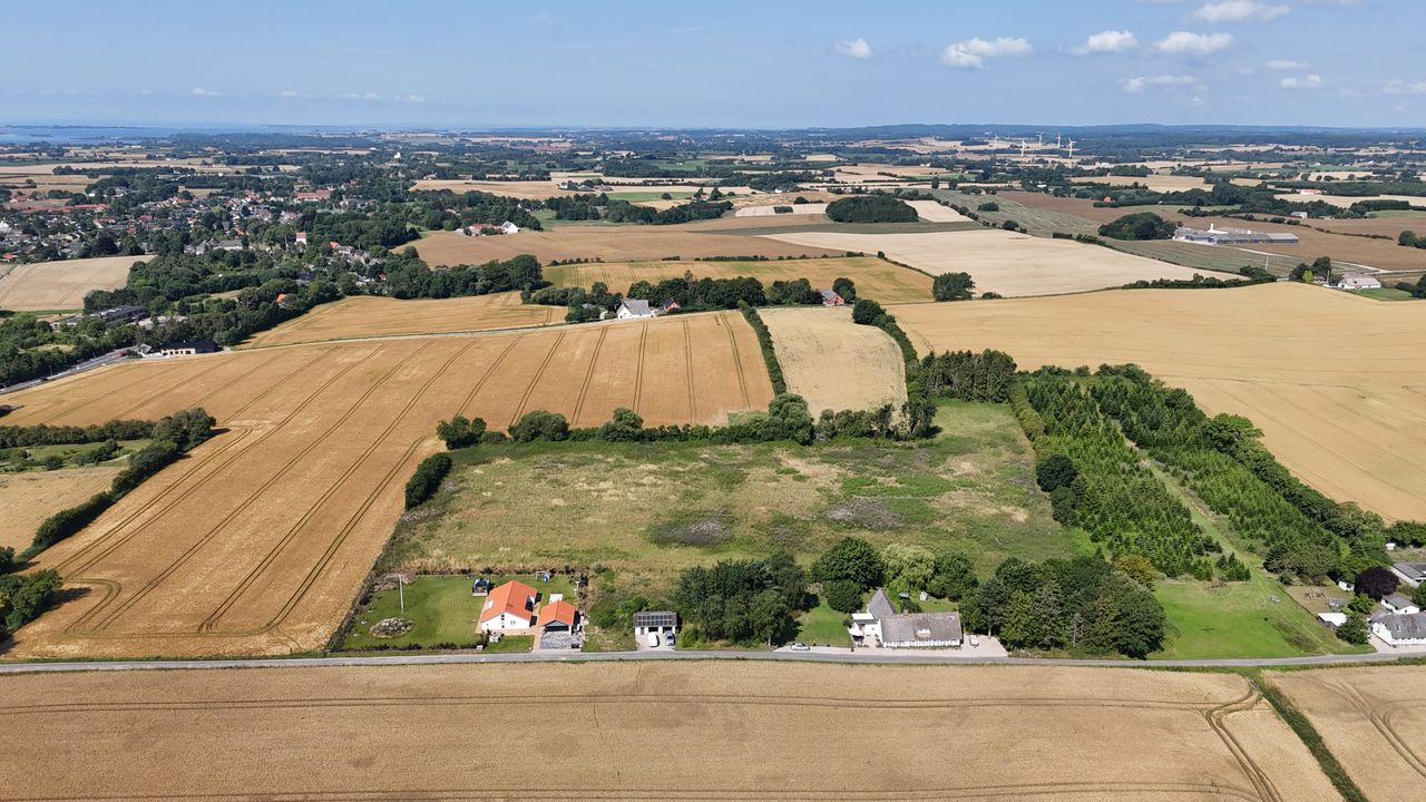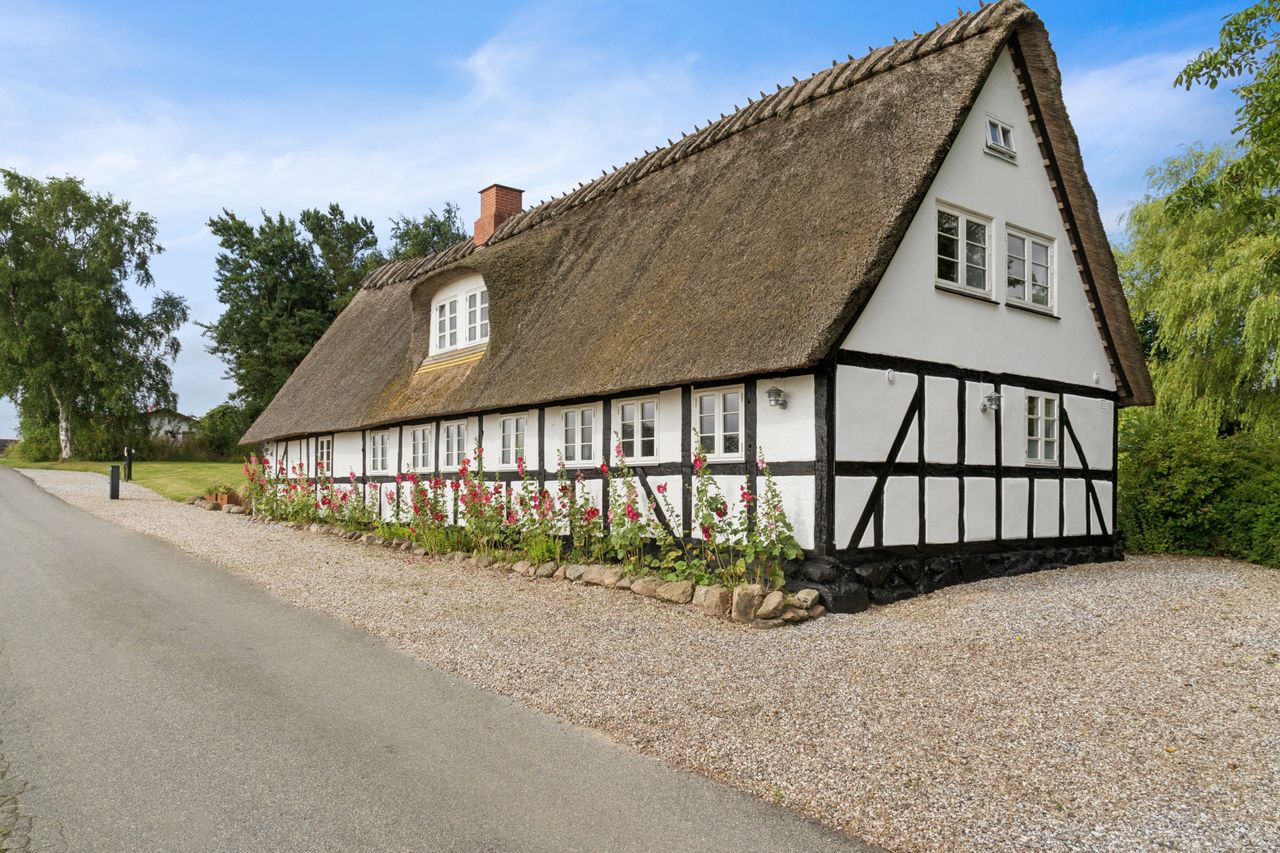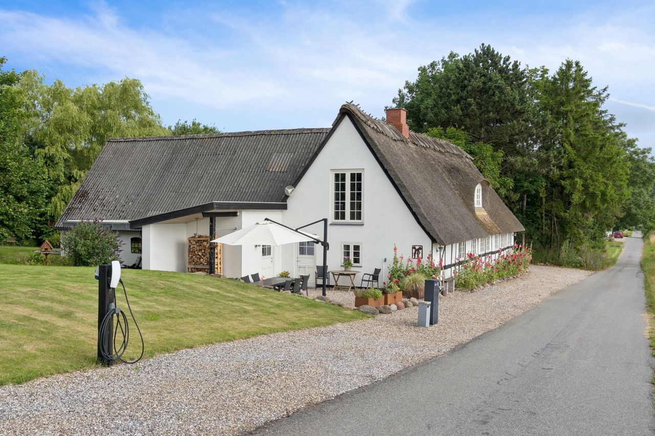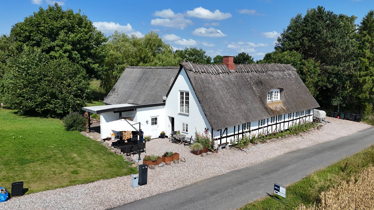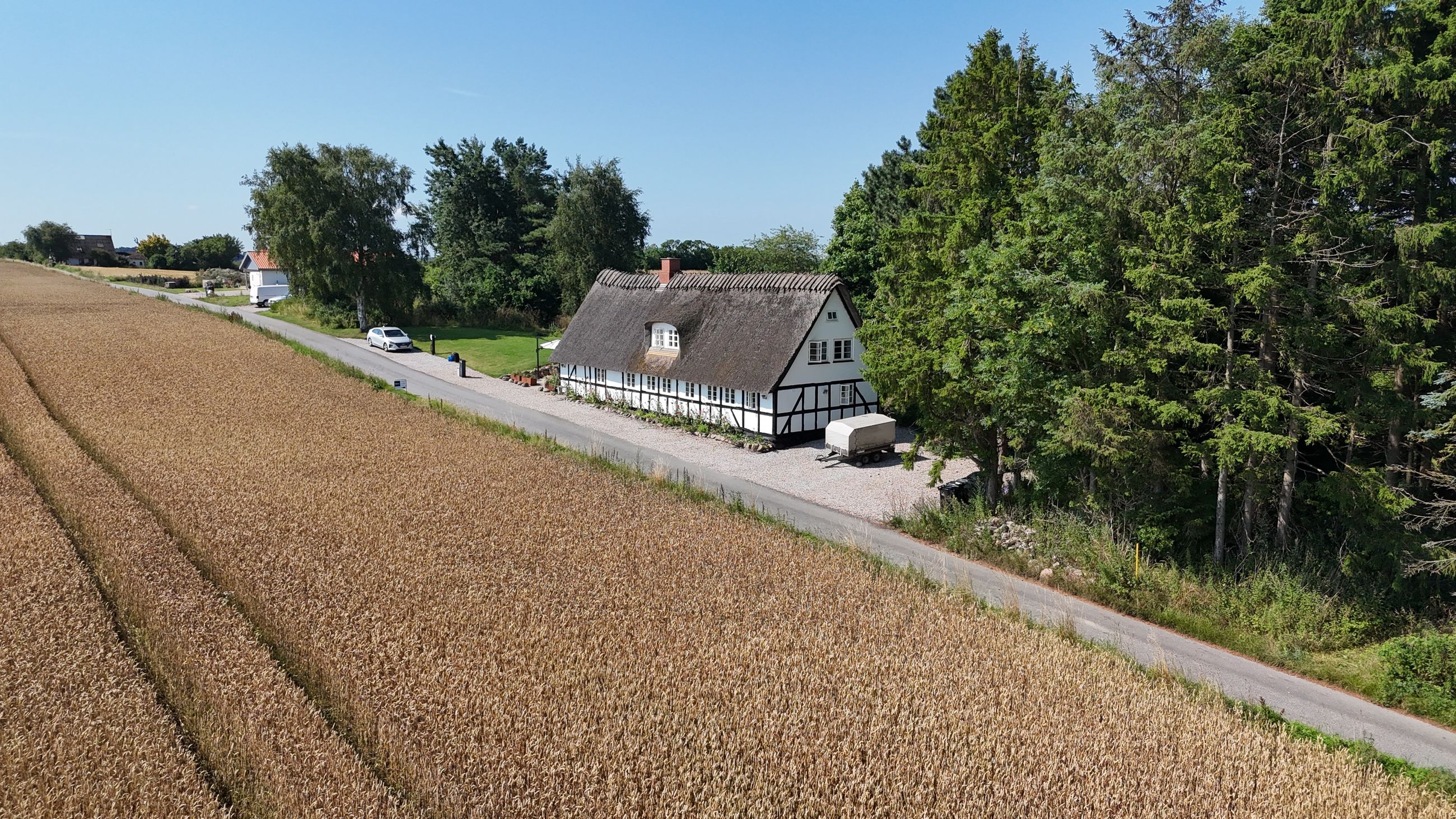 Her får I en charmerende og nænsomt renoveret bindingsværksejendom midt i det åbne landskab – med frit udsyn til grønne marker, en levende mose, og skoven i horisonten. Beliggenheden på en fredelig, lukket vej skaber en særlig ro, hvor naturens lyde tager over.
