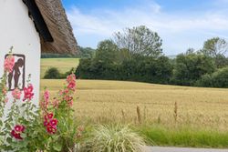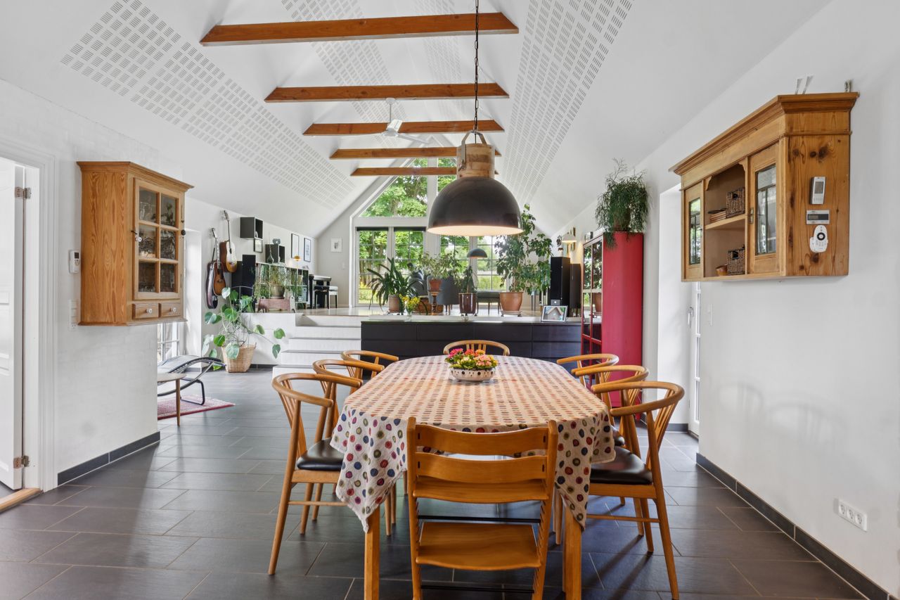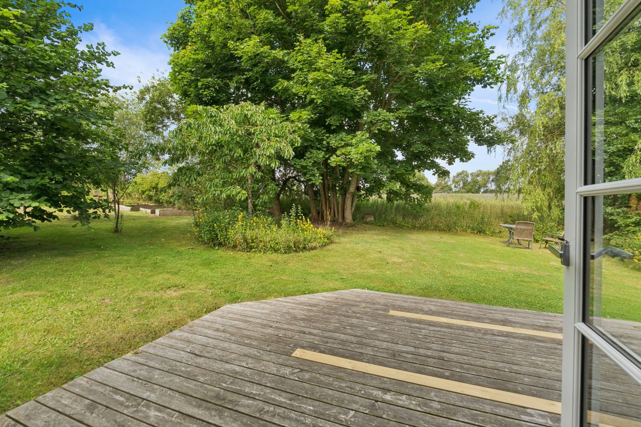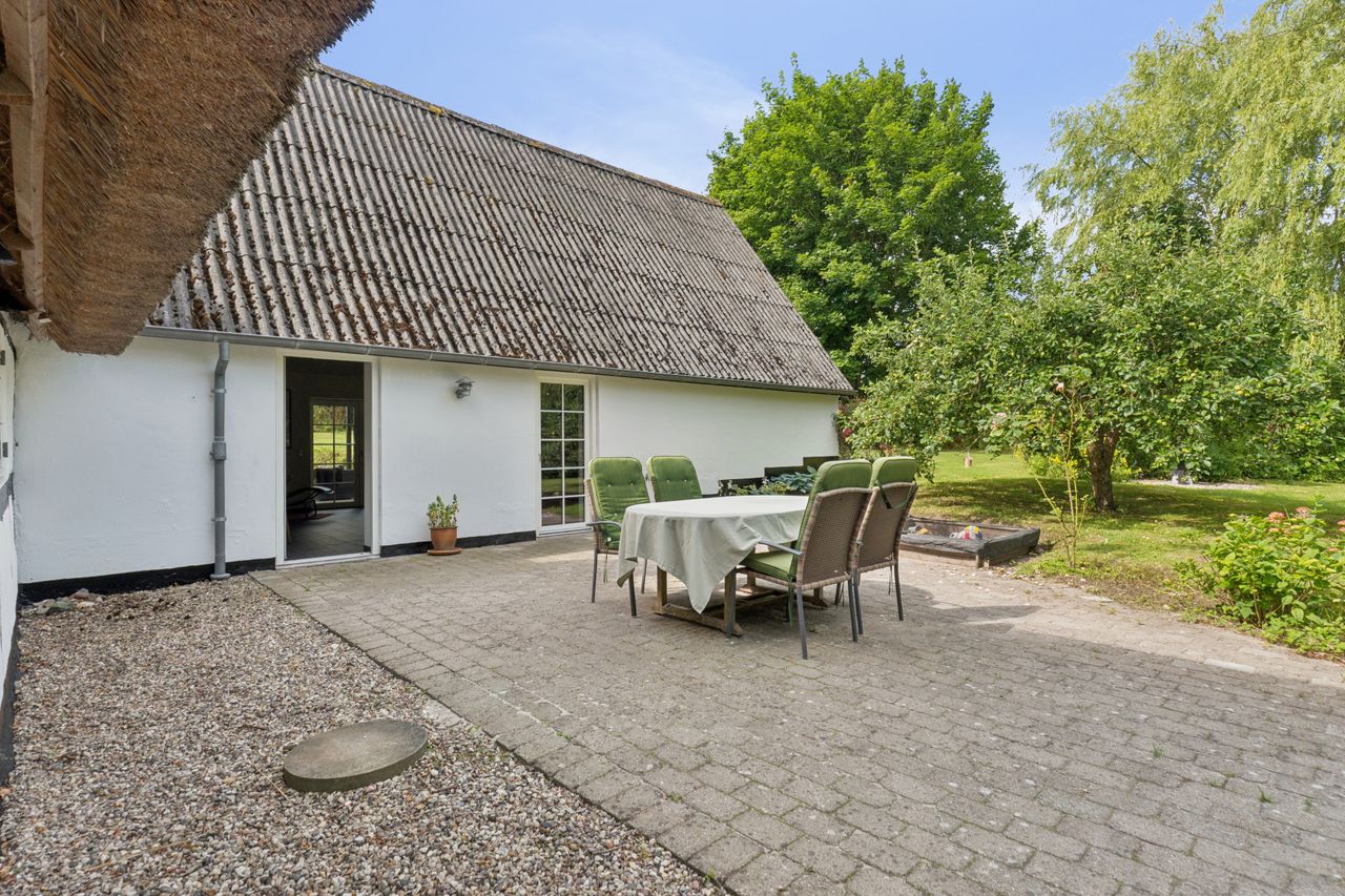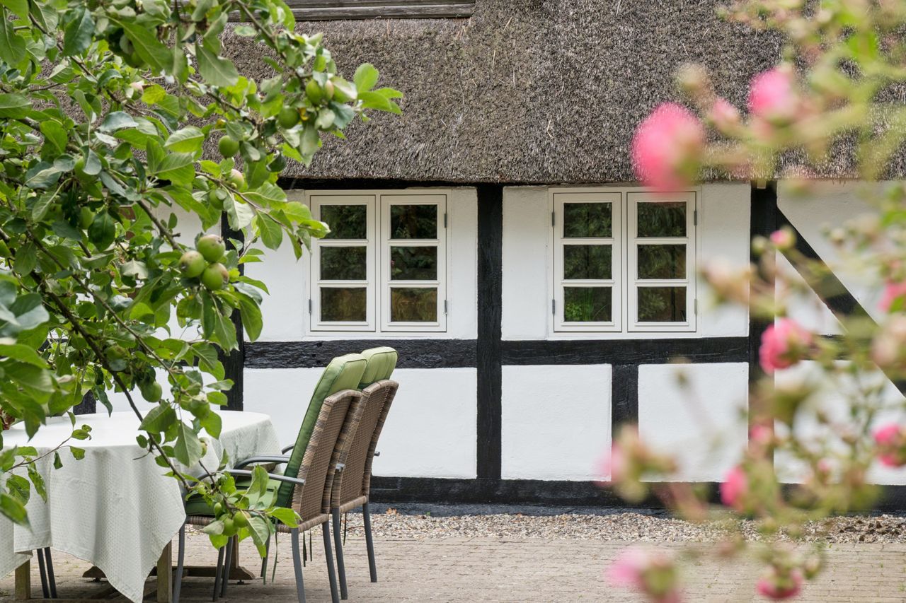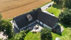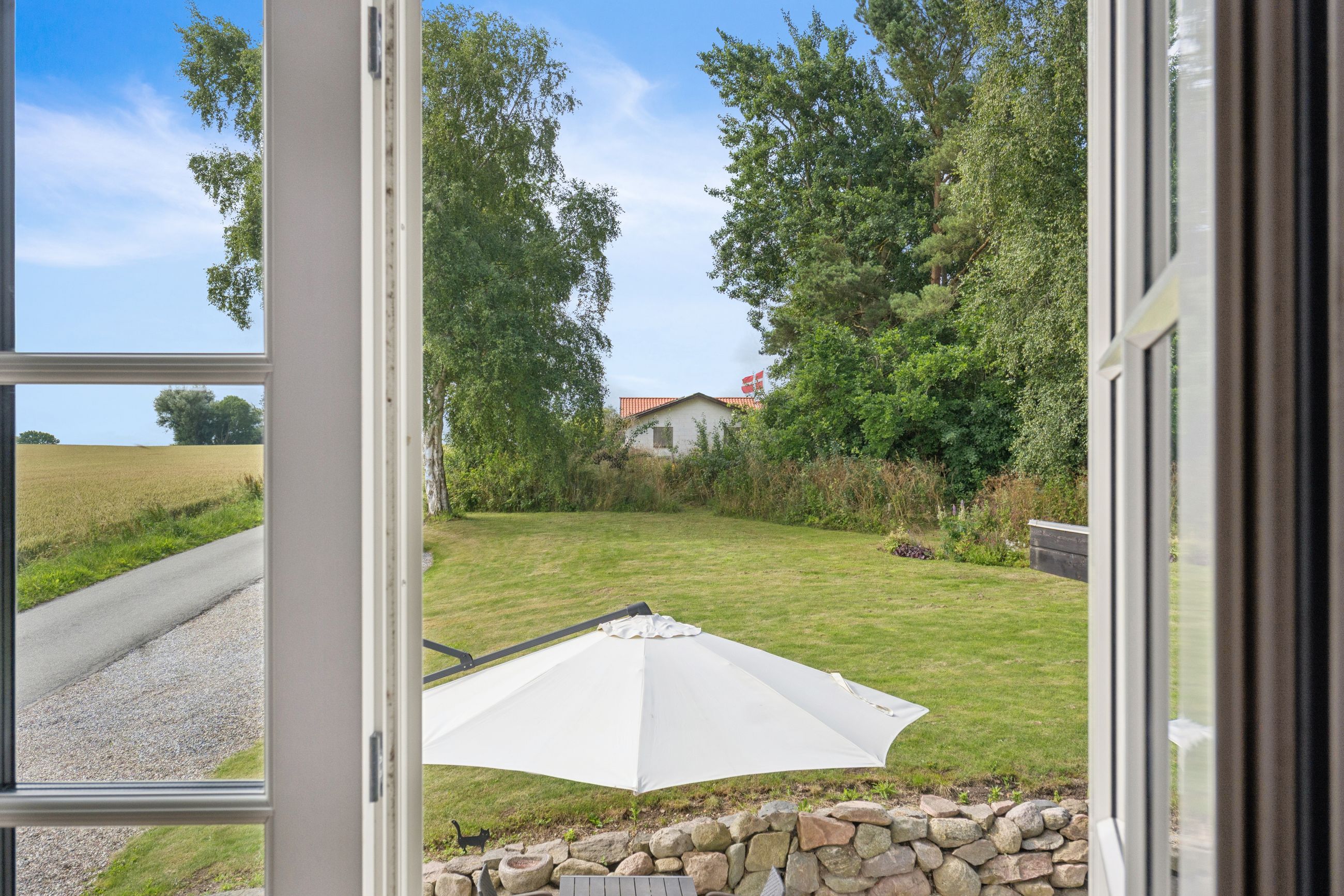 Her får I en charmerende og nænsomt renoveret bindingsværksejendom midt i det åbne landskab – med frit udsyn til grønne marker, en levende mose, og skoven i horisonten. Beliggenheden på en fredelig, lukket vej skaber en særlig ro, hvor naturens lyde tager over.
