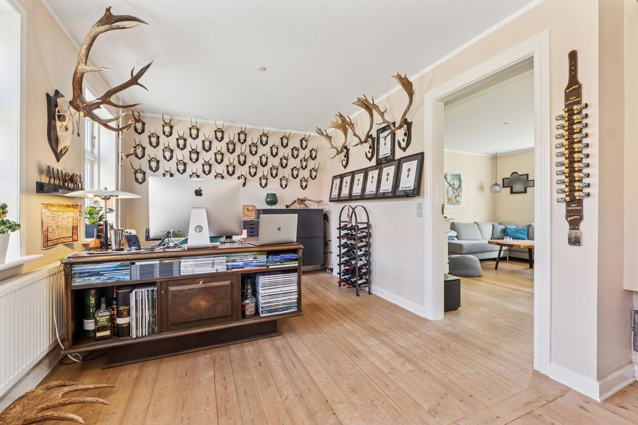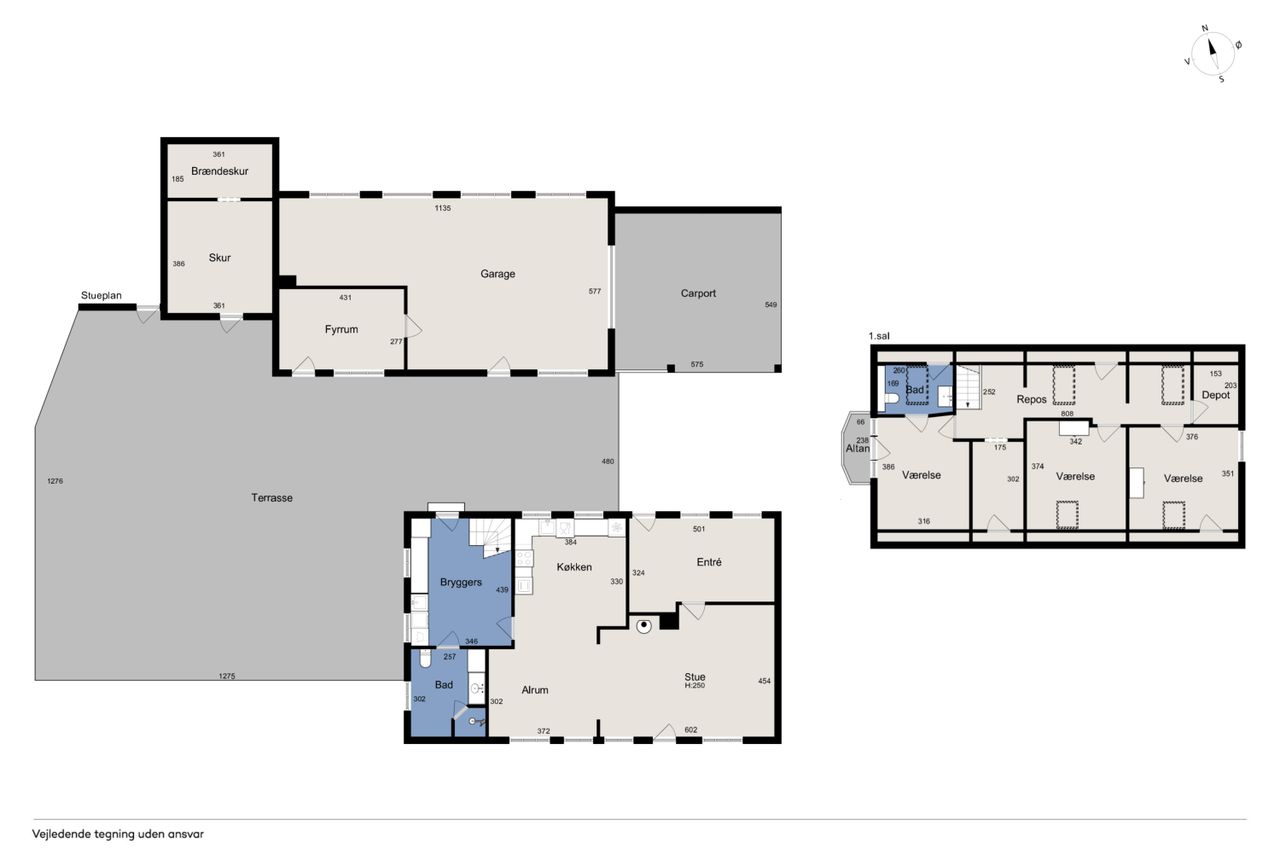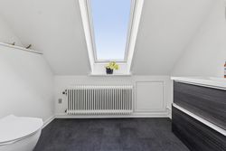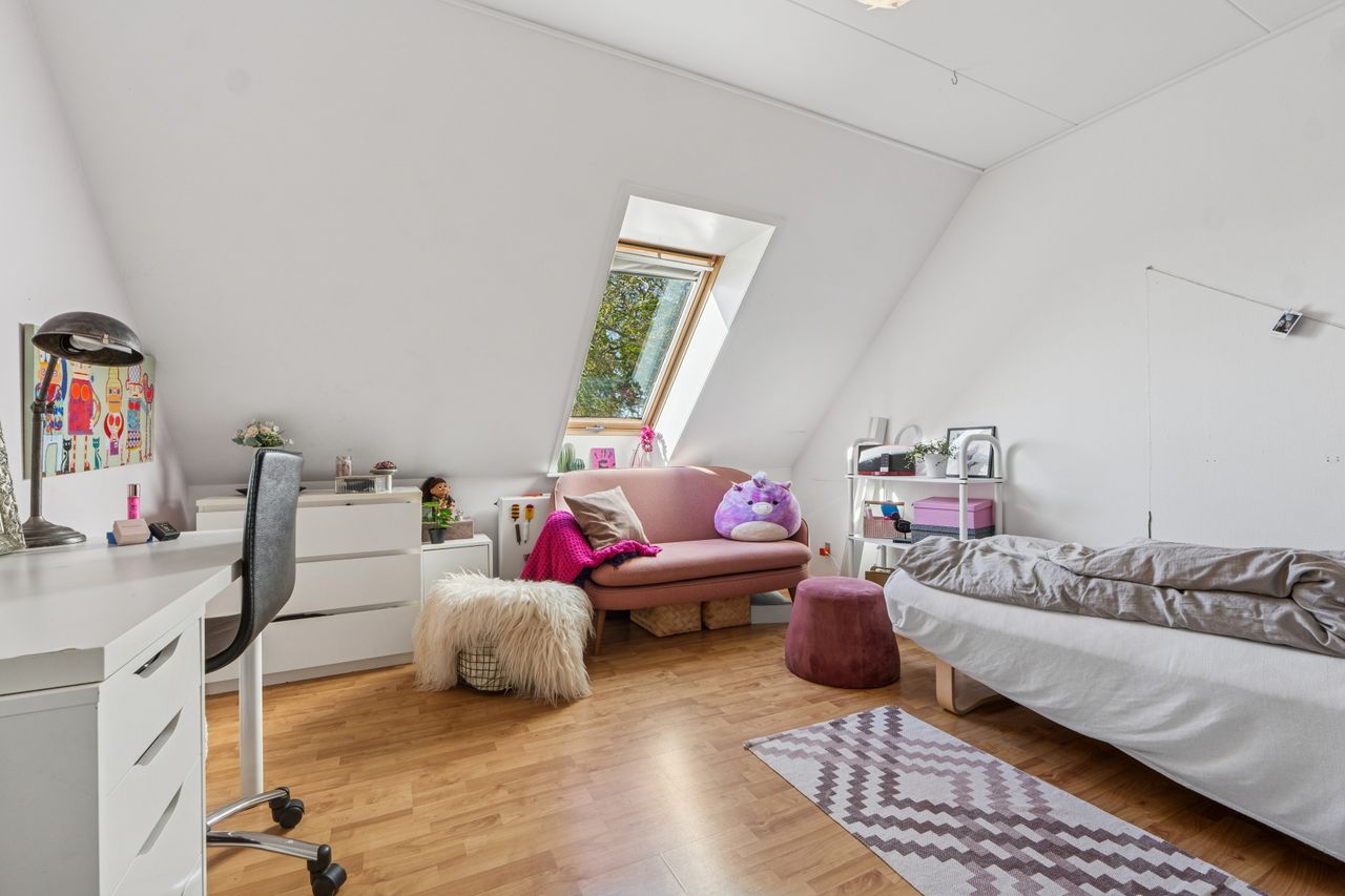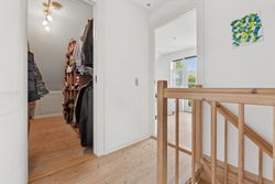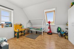 På 1. salen finder du tre gode værelser, der giver plads til både børn, gæster eller hjemmekontor. Fra det ene værelse er der udgang til en solrig altan med udsigt over området. Etagen rummer desuden et praktisk gæstetoilet.