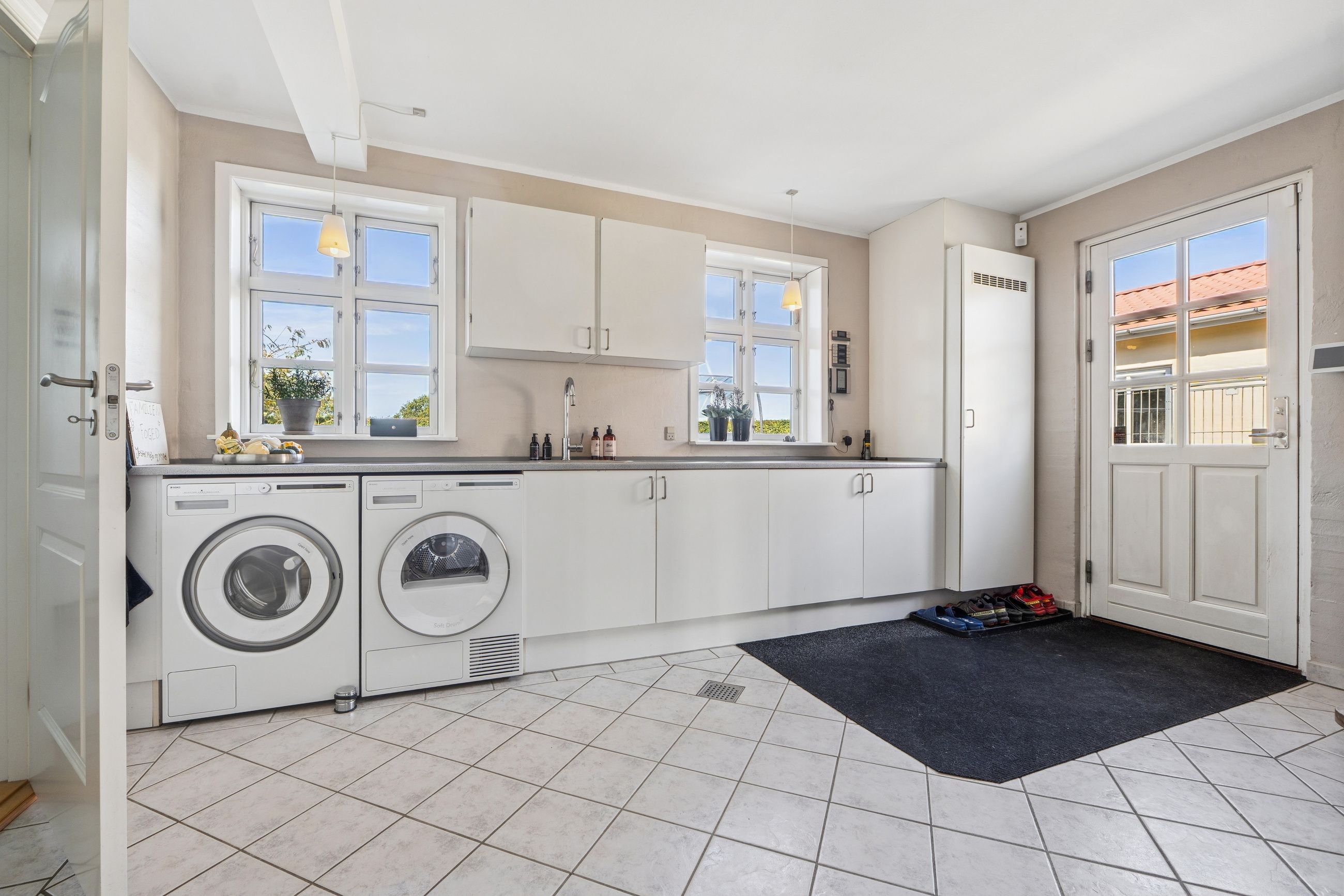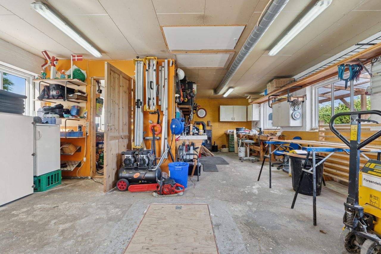 Haven er stor og anlagt med græs, hvilket gør den nem at holde og giver masser af plads til leg, boldspil eller afslapning. Til ejendommen hører også et rummeligt værksted med tilhørende carport – ideelt til gør-det-selv-projekter eller ekstra opbevaringsplads.