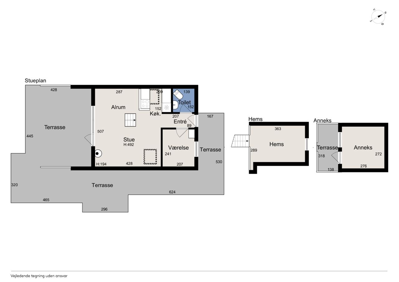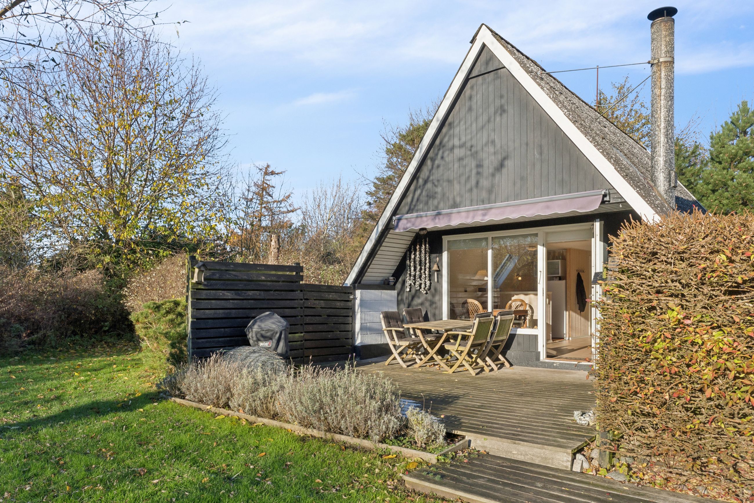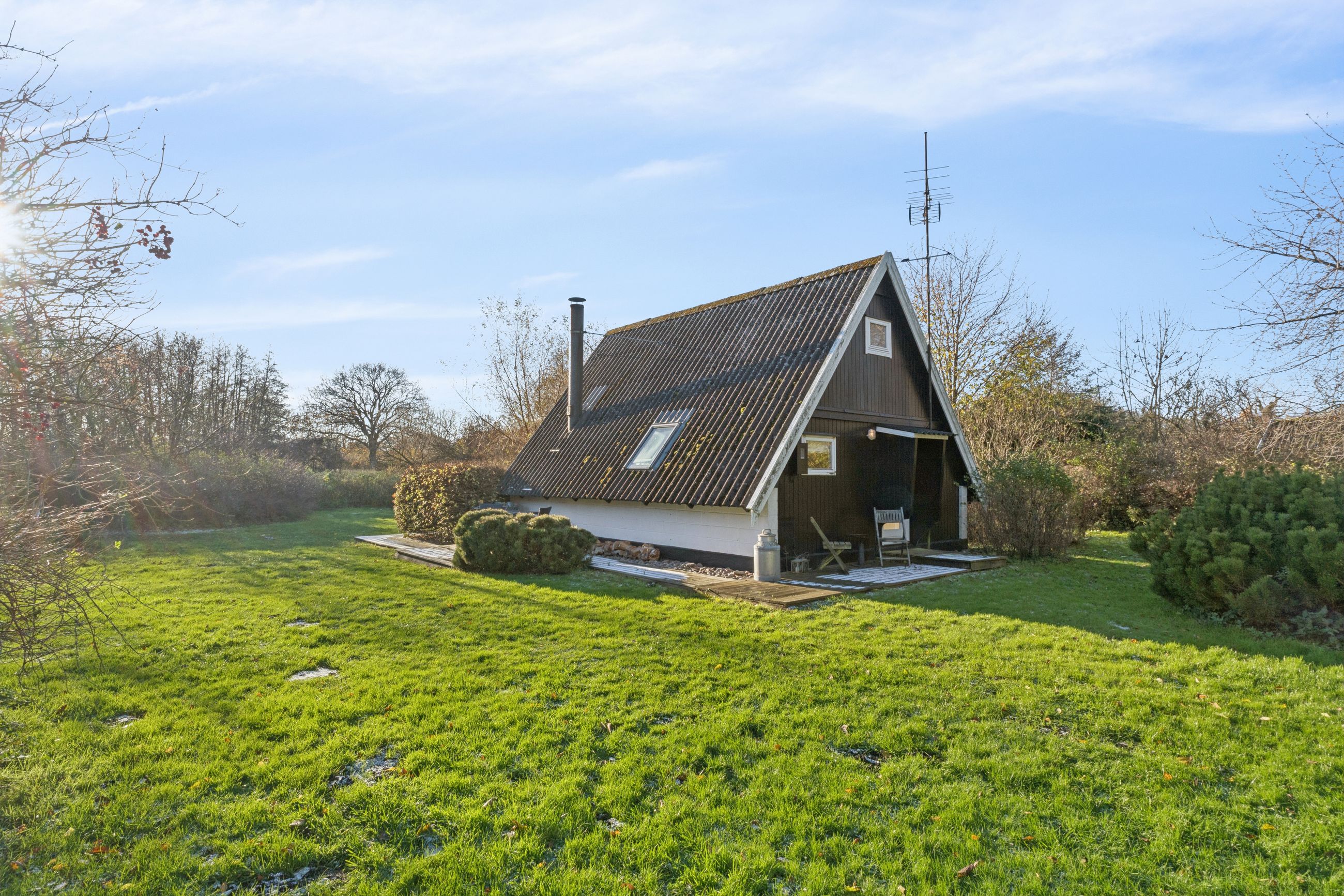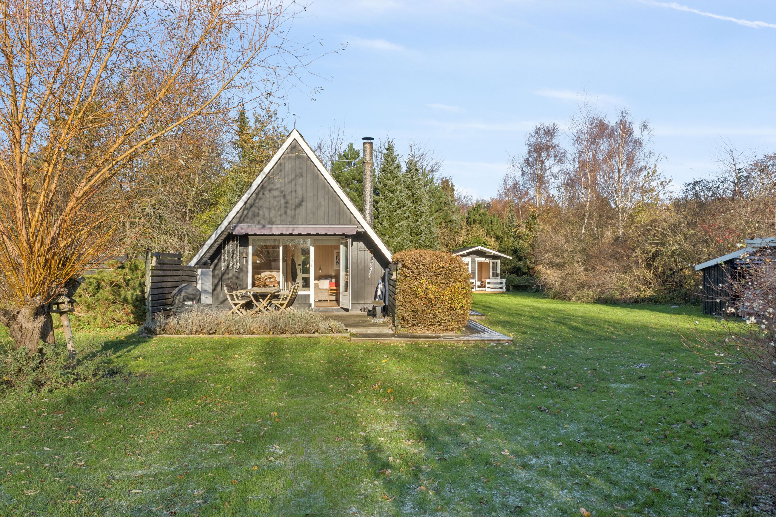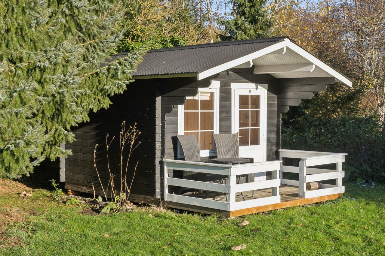 Grunden er anlagt med græs, så den er nem at holde, og på matriklen ligger desuden et lille anneks, der kan bruges til lige det, man har lyst til – hvad enten det er ekstra soveplads, hobbyrum eller et lille fristed.