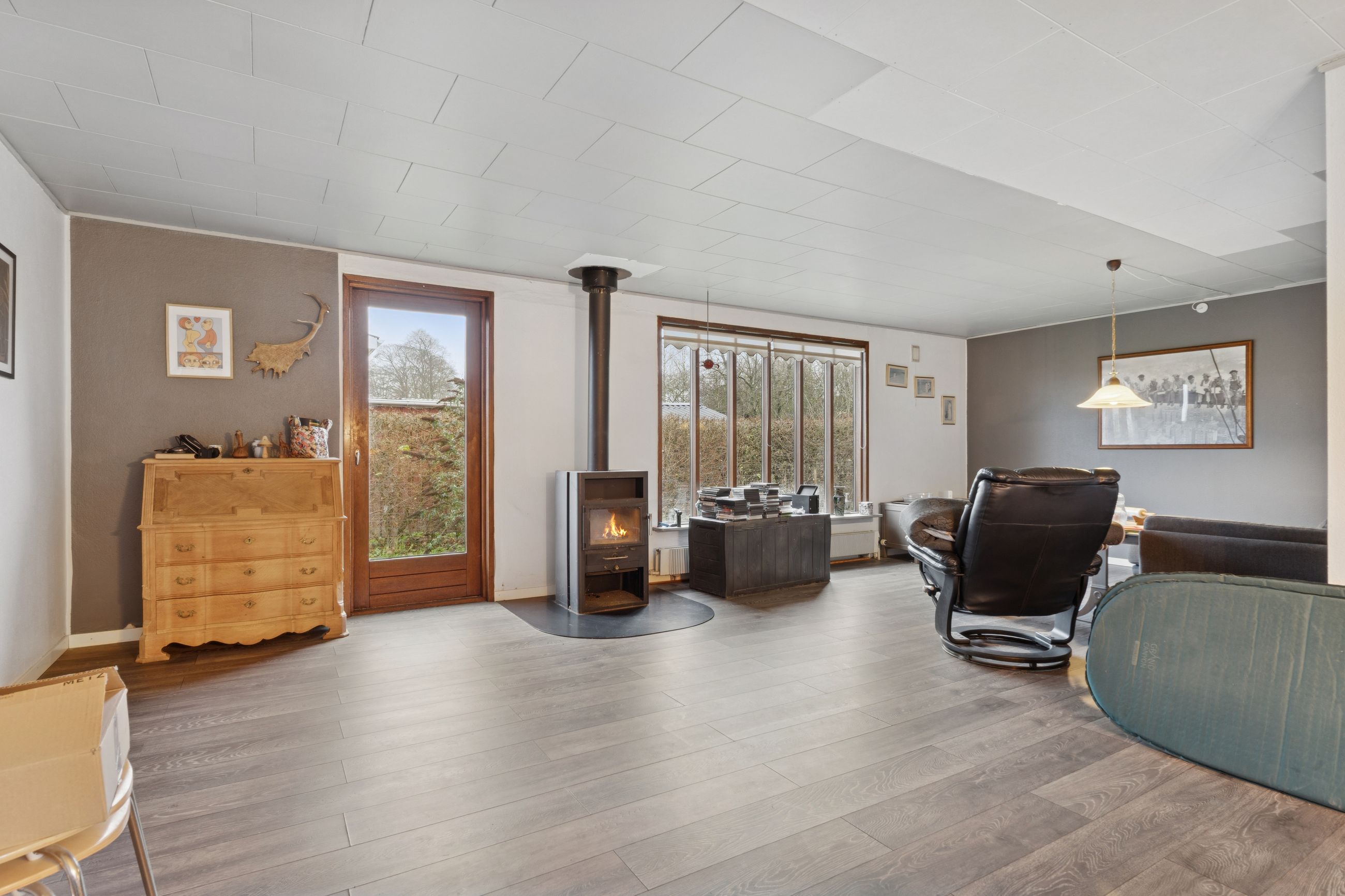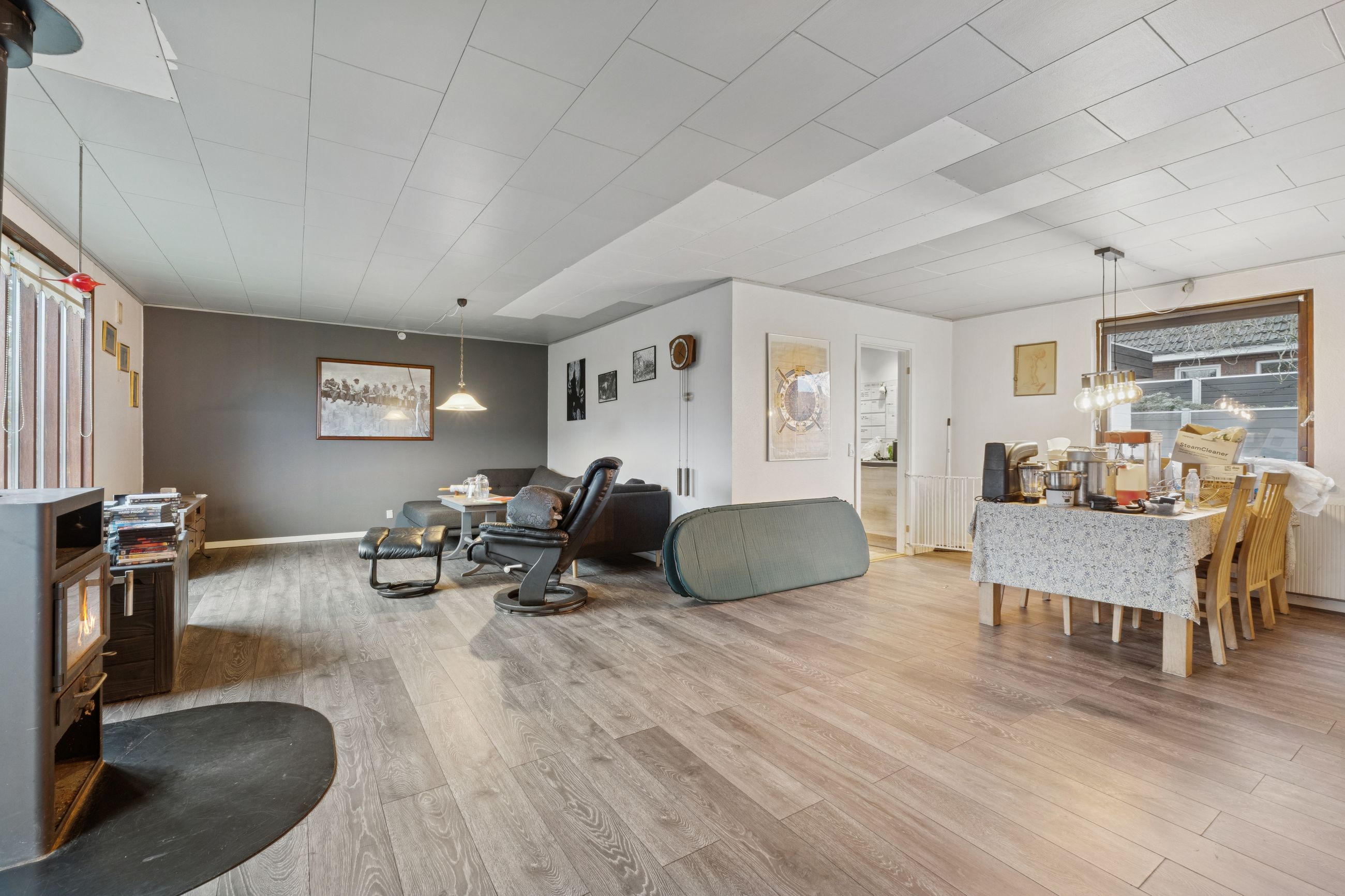 Boligen indeholder en stor, lys stue, tre værelser, et badeværelse med brus samt et nyere, lyst køkken. Huset er løbende istandsat, men der er fortsat flere områder, som trænger til opdatering. Dette giver den kommende køber en oplagt mulighed for at færdiggøre istandsættelsen og forme boligen efter egne ønsker og behov.