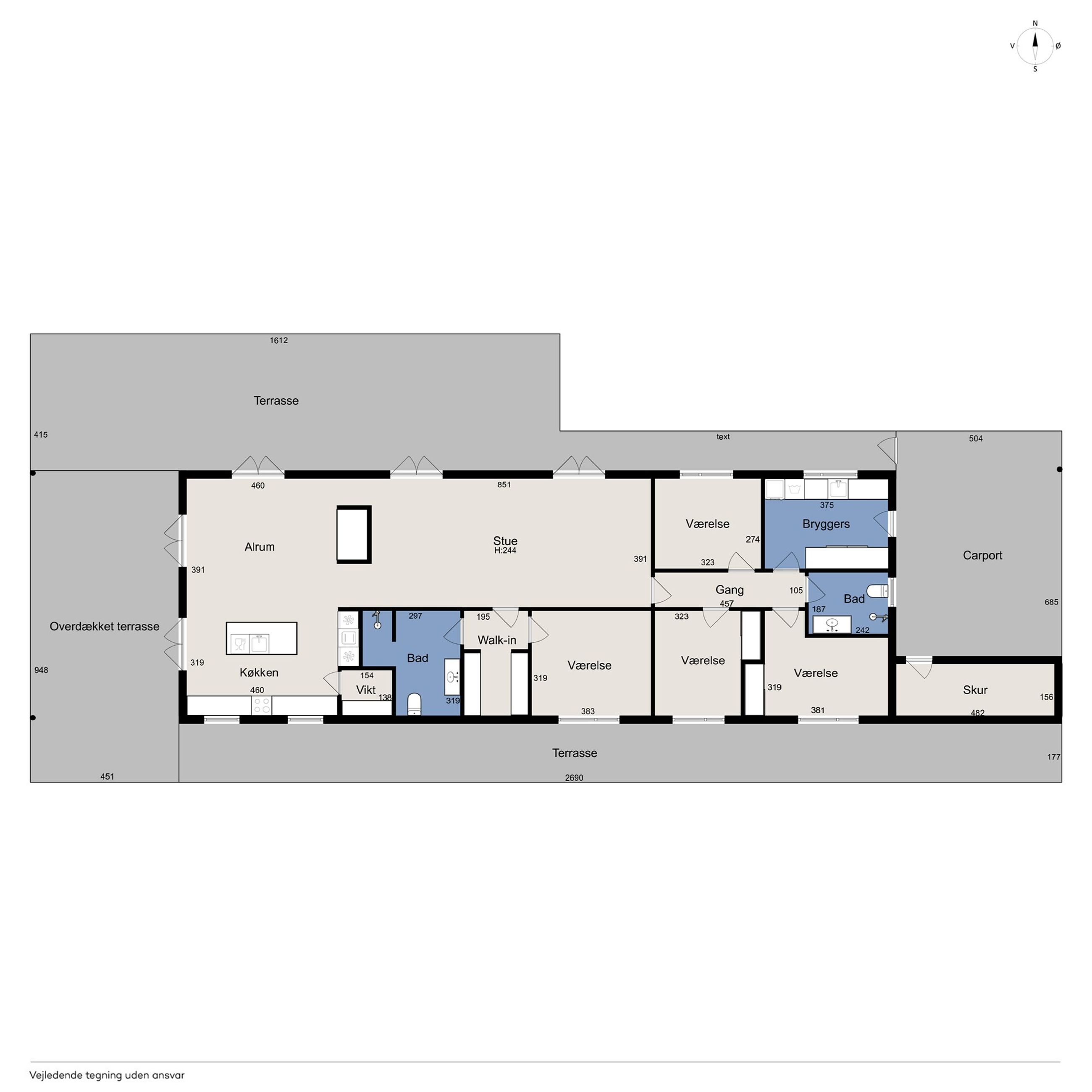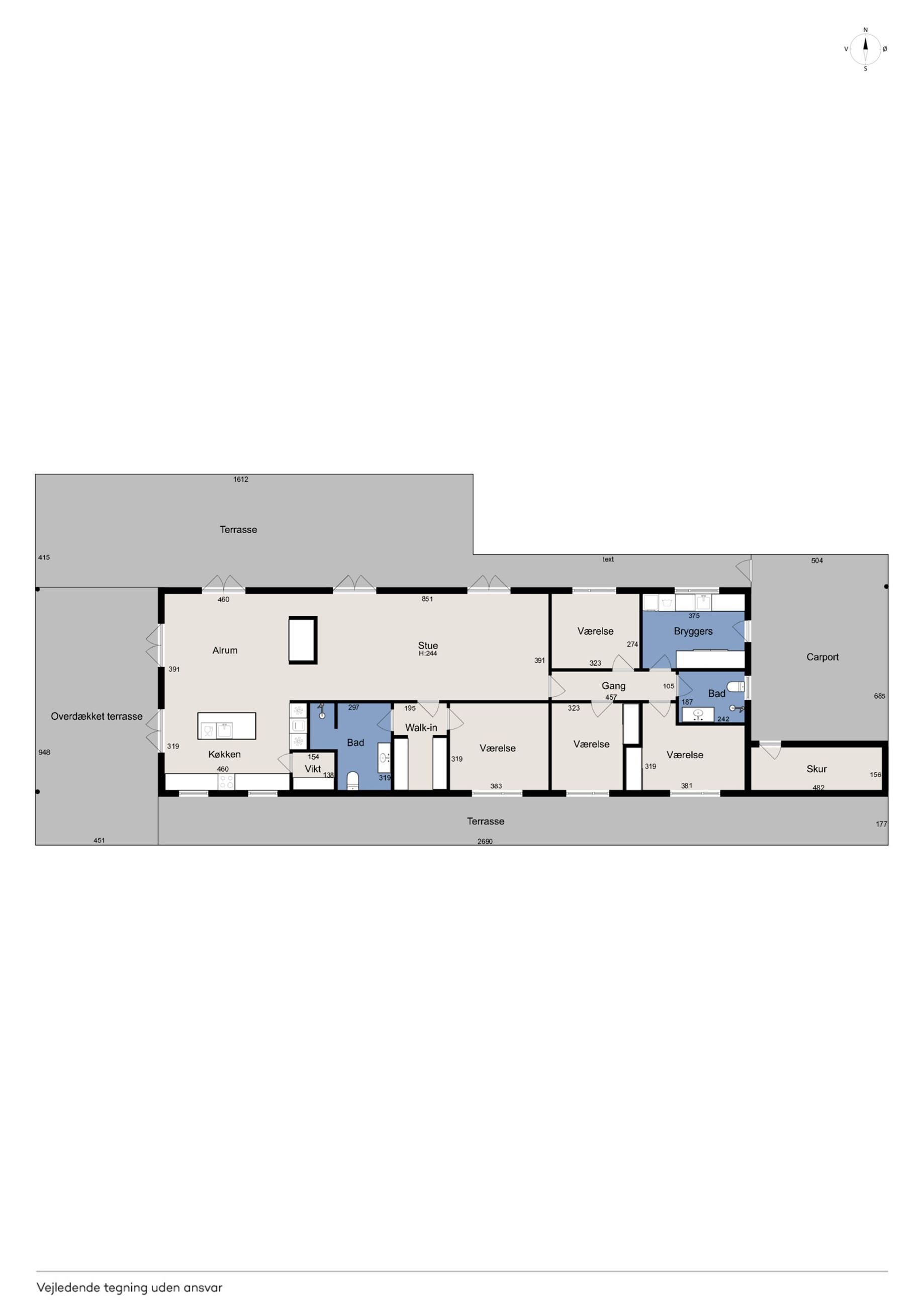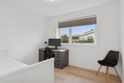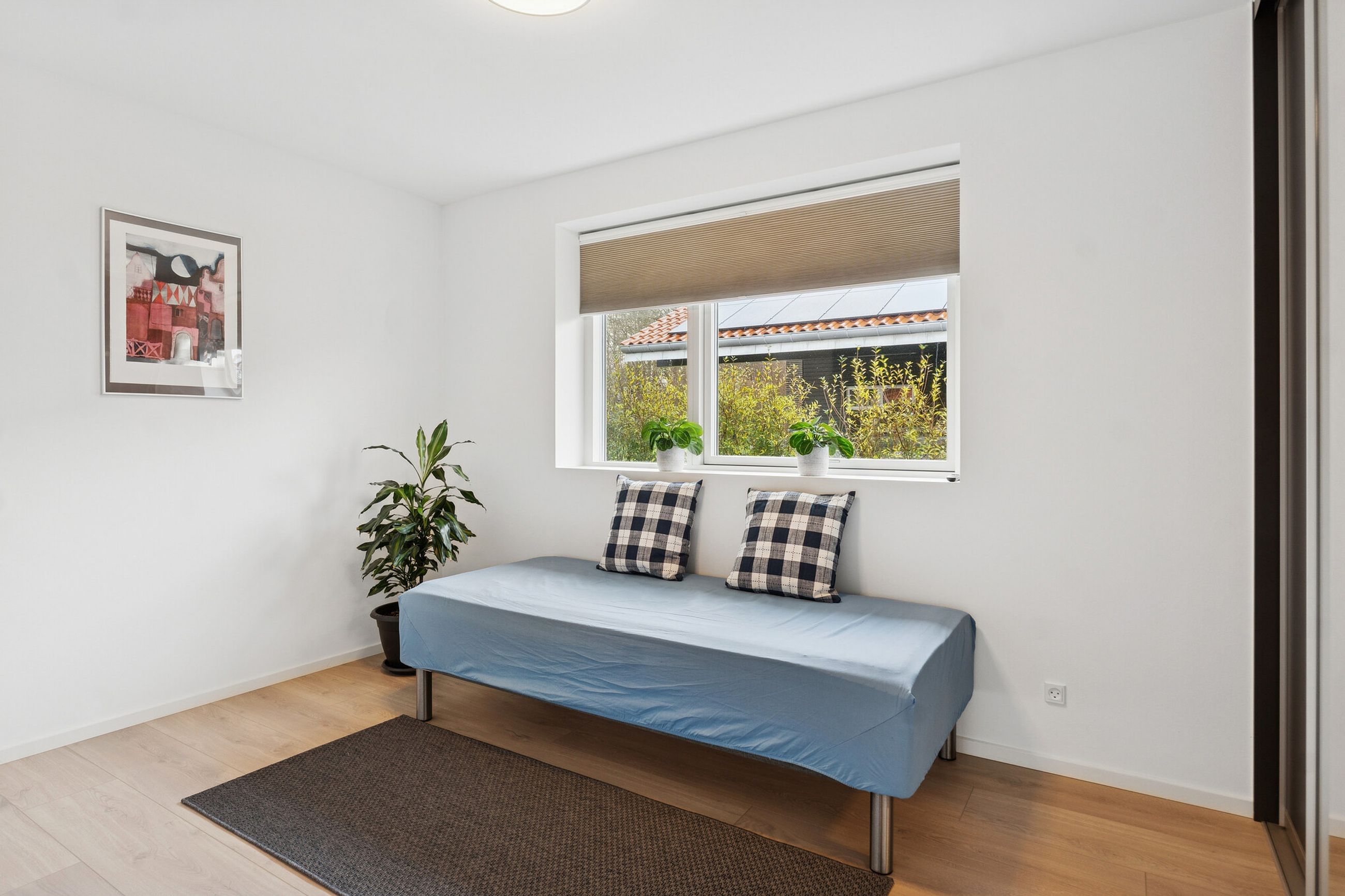 Færgegårdsvej 41D er en indflytningsklar étplansvilla fra 2022, opført med blik for både æstetik, komfort og privatliv. Boligen rummer 183 veldisponerede kvadratmeter, hvor planløsningen er opdelt i en børne- og en forældreafdeling – ideelt for den moderne familie, der ønsker både fællesskab og tilbagetrækning. Børneafdelingen byder på tre gode værelser og eget badeværelse, mens forældreafdelingen fremstår som en privat suite med soveværelse, walk-in-closet og eksklusivt badeværelse.