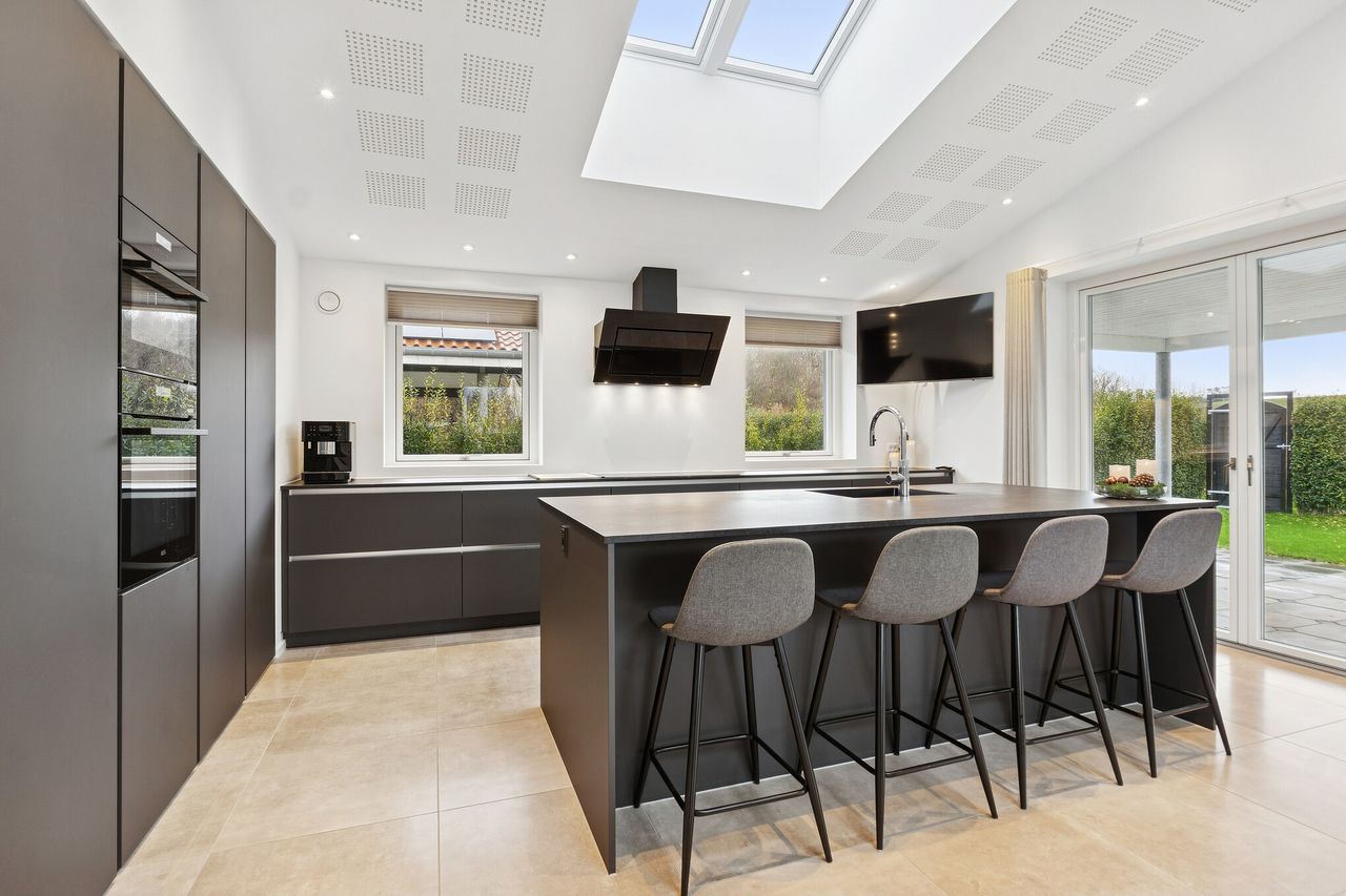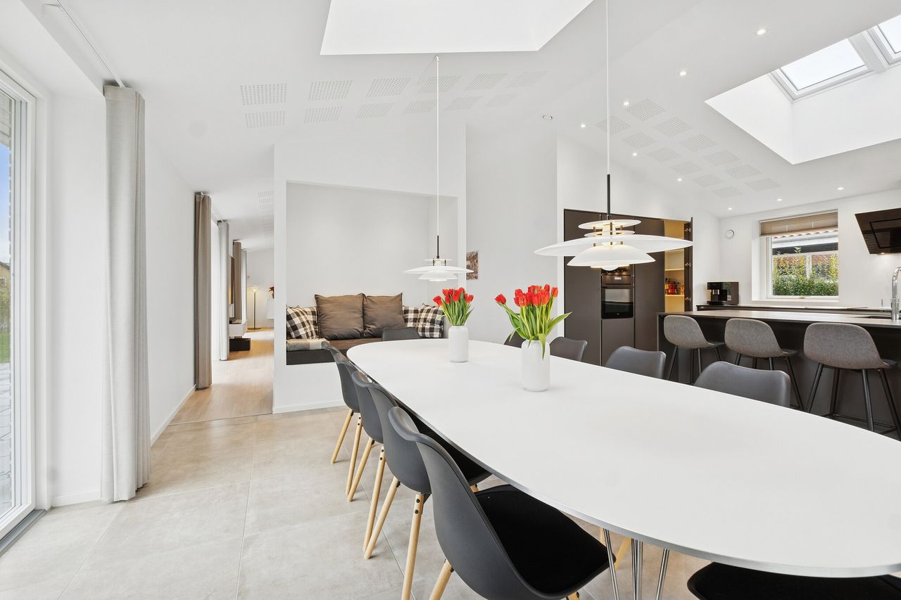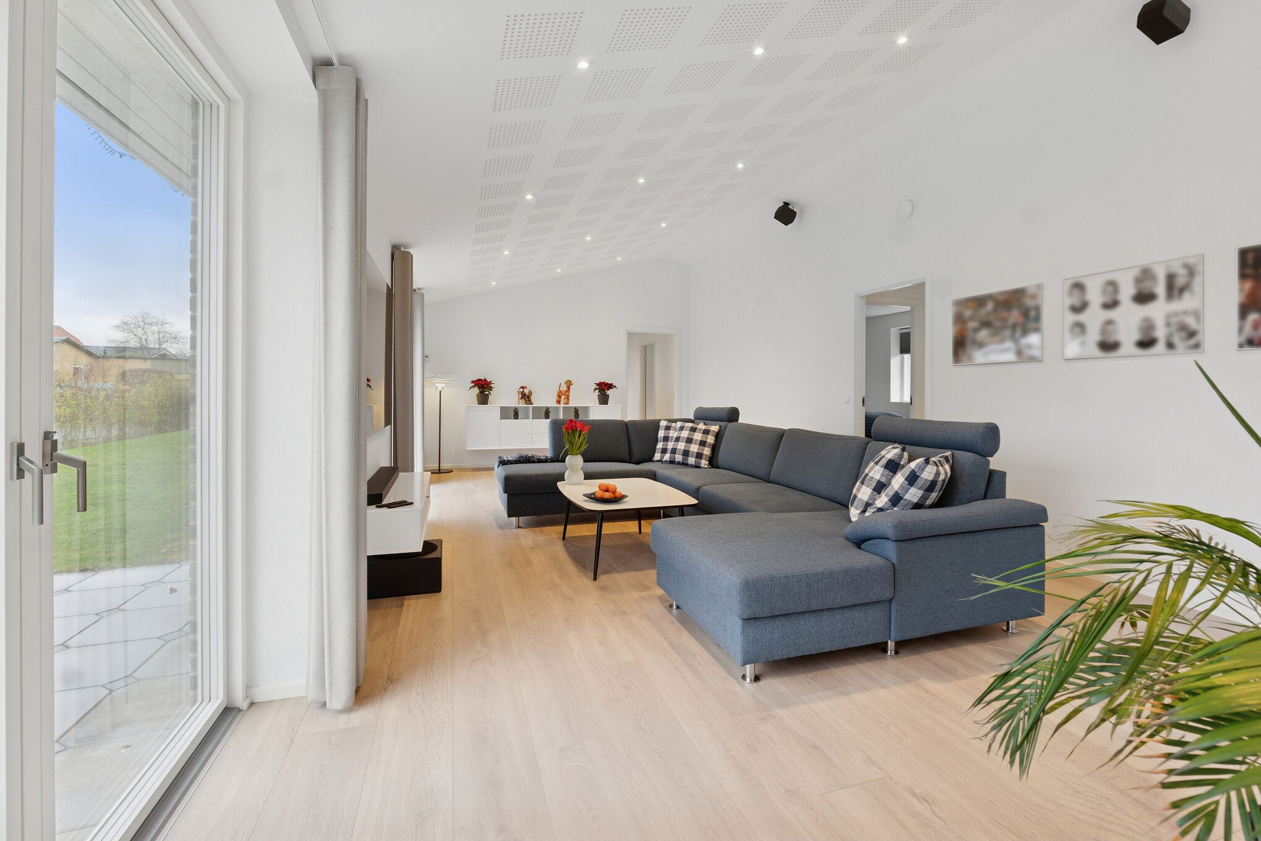 På et lukket vænge i hjertet af Vindeby – få minutters gang fra havnen og vandet – ligger denne stilrene og moderne villa, som forener arkitektonisk elegance med kompromisløs funktionalitet.