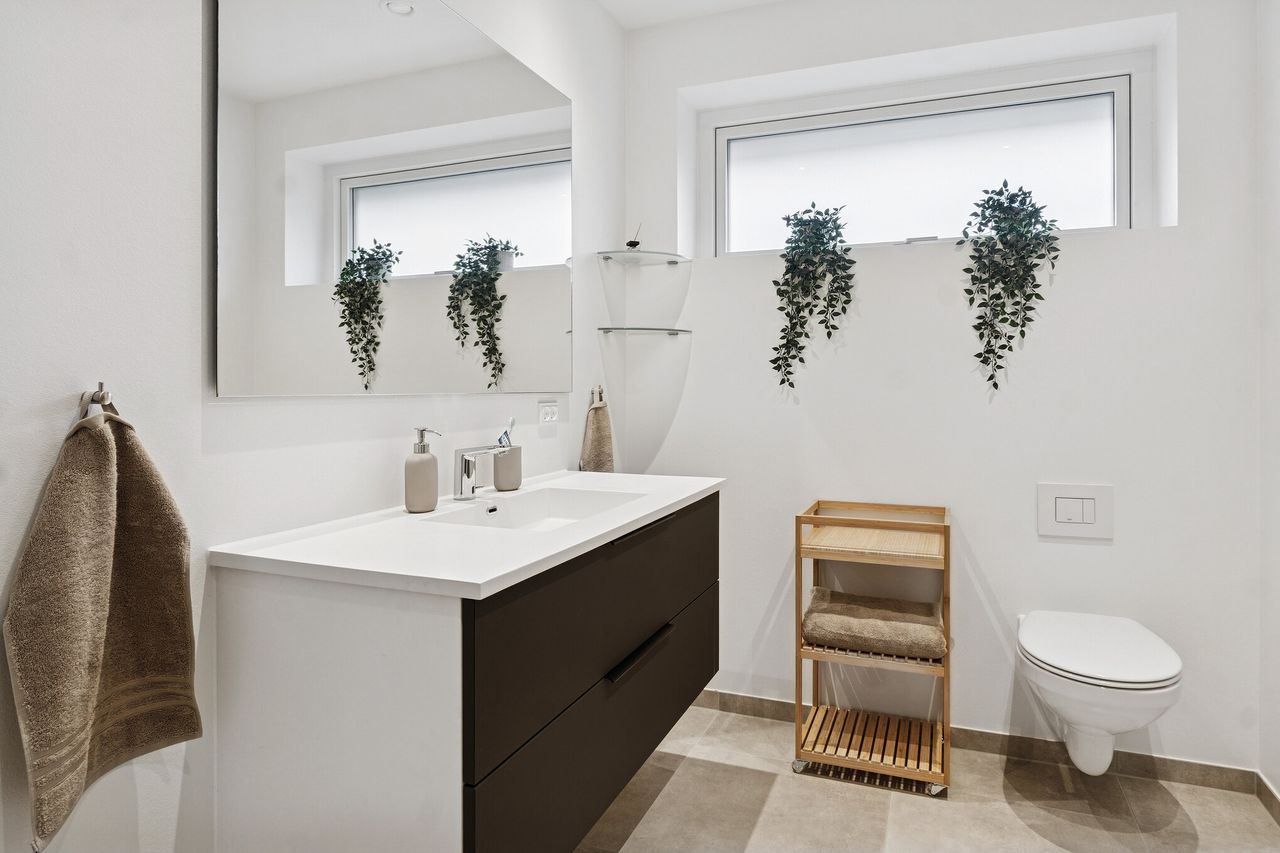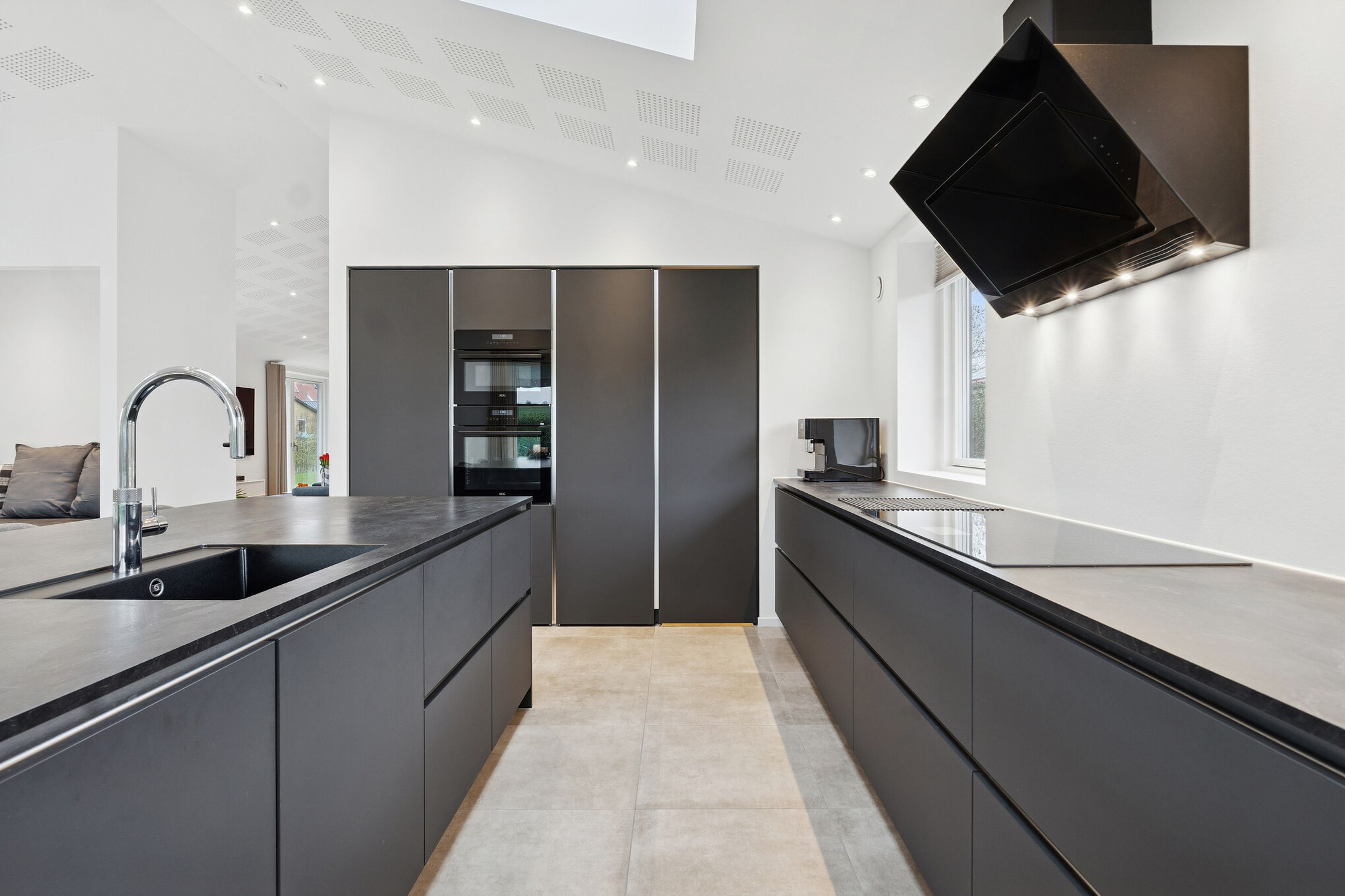 Der er desuden tænkt langsigtet i både komfort og bæredygtighed. Villaen er udstyret med jordvarme, solceller, back-up batteri og genvindingsanlæg, som sikrer et sundt indeklima, høj energieffektivitet og lave driftsomkostninger.