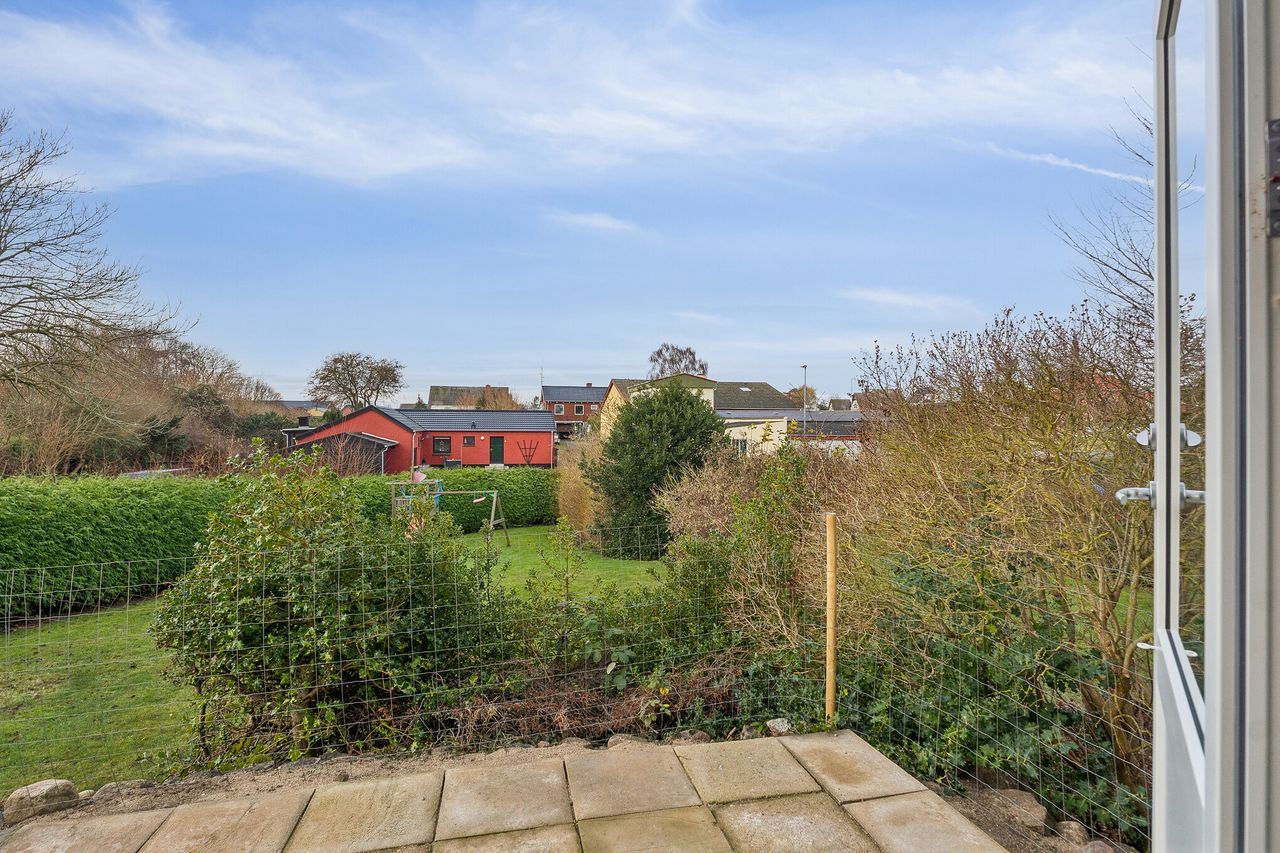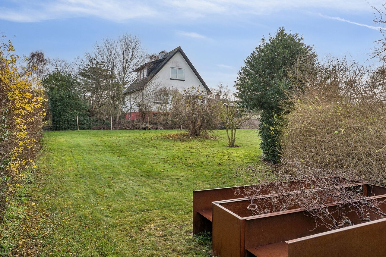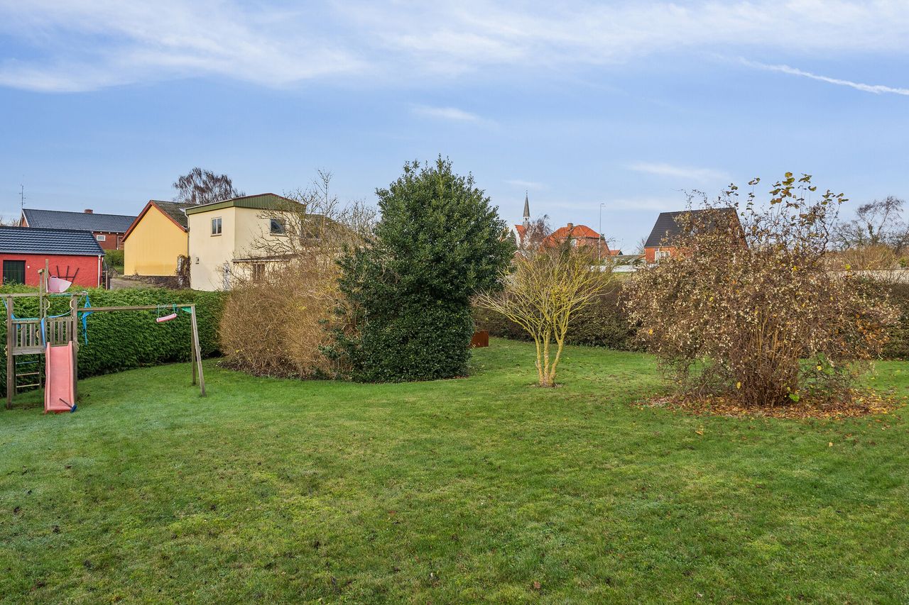 Ejendommen er beliggende på en stor og velanlagt grund på hele 1.201 m2, som giver masser af plads til udeliv, leg, haveprojekter og afslapning. Haven er pæn og rummelig med god afstand til naboer, og her er mulighed for at skabe sit eget grønne frirum. Til ejendommen hører desuden garage.