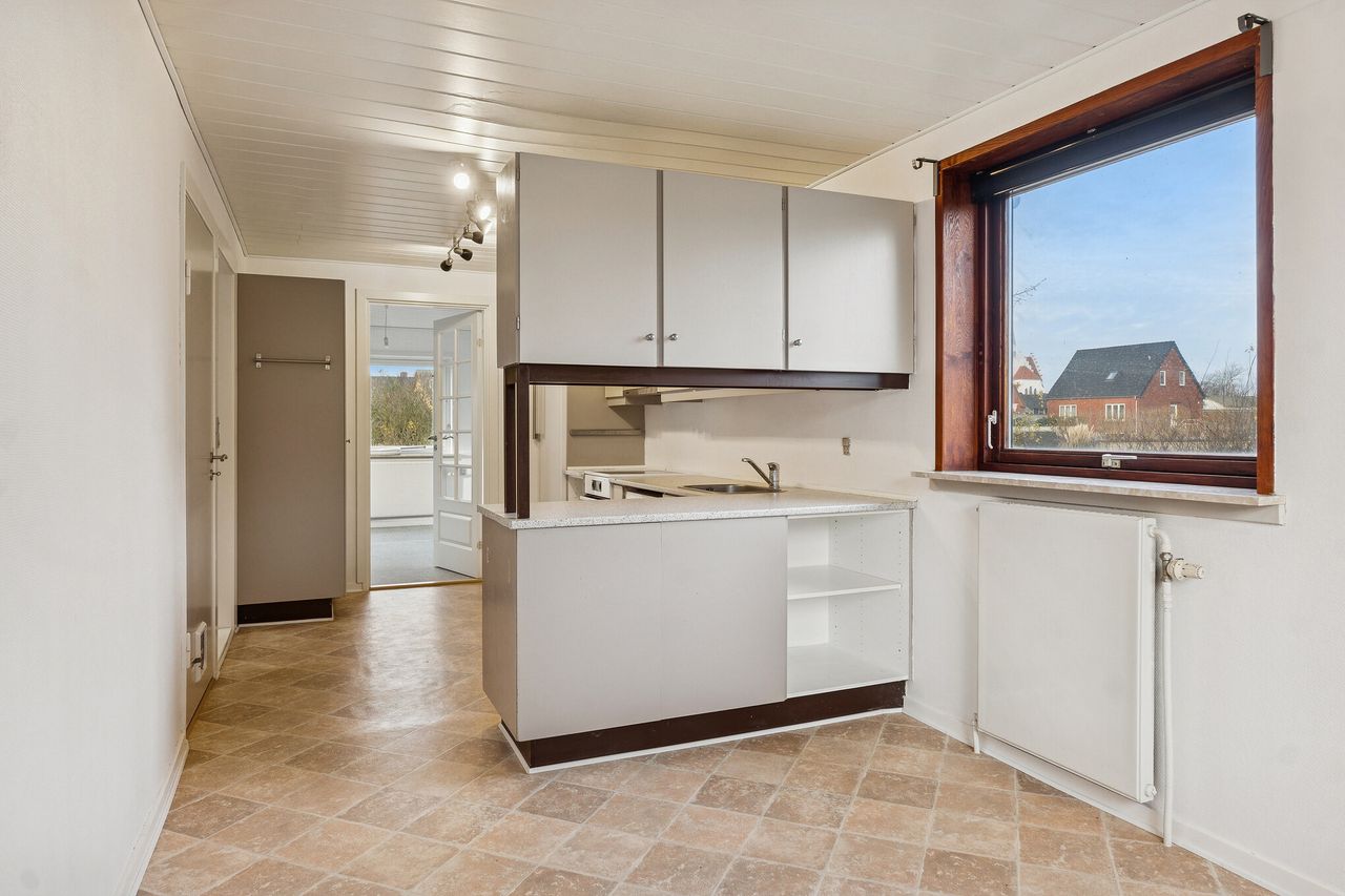 Centralt i Bagenkop, på en rolig vej med kort afstand til både havn og naturskønne omgivelser, ligger denne charmerende murstensvilla med højt til himlen og mange anvendelsesmuligheder.