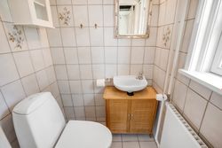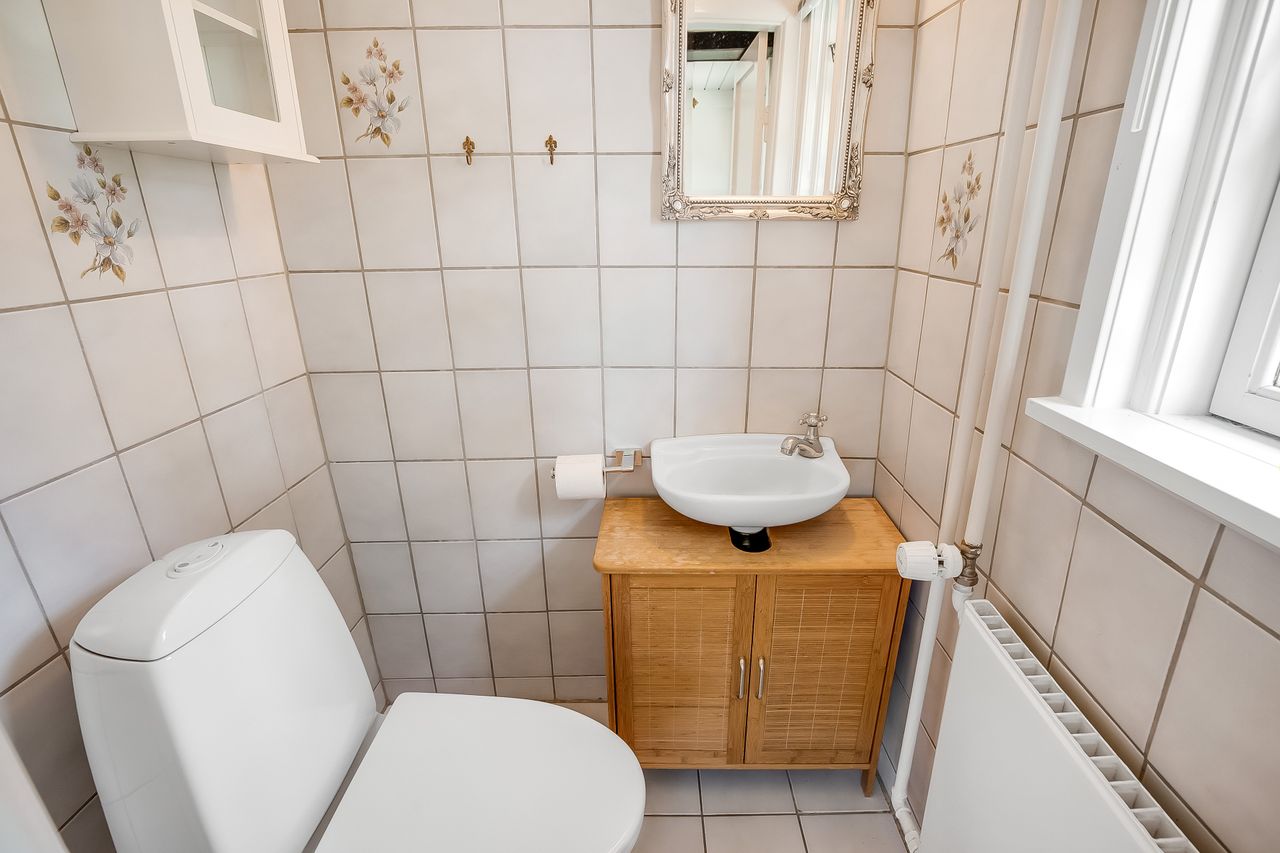 Badeværelse med brus samt et gæstetoilet.
