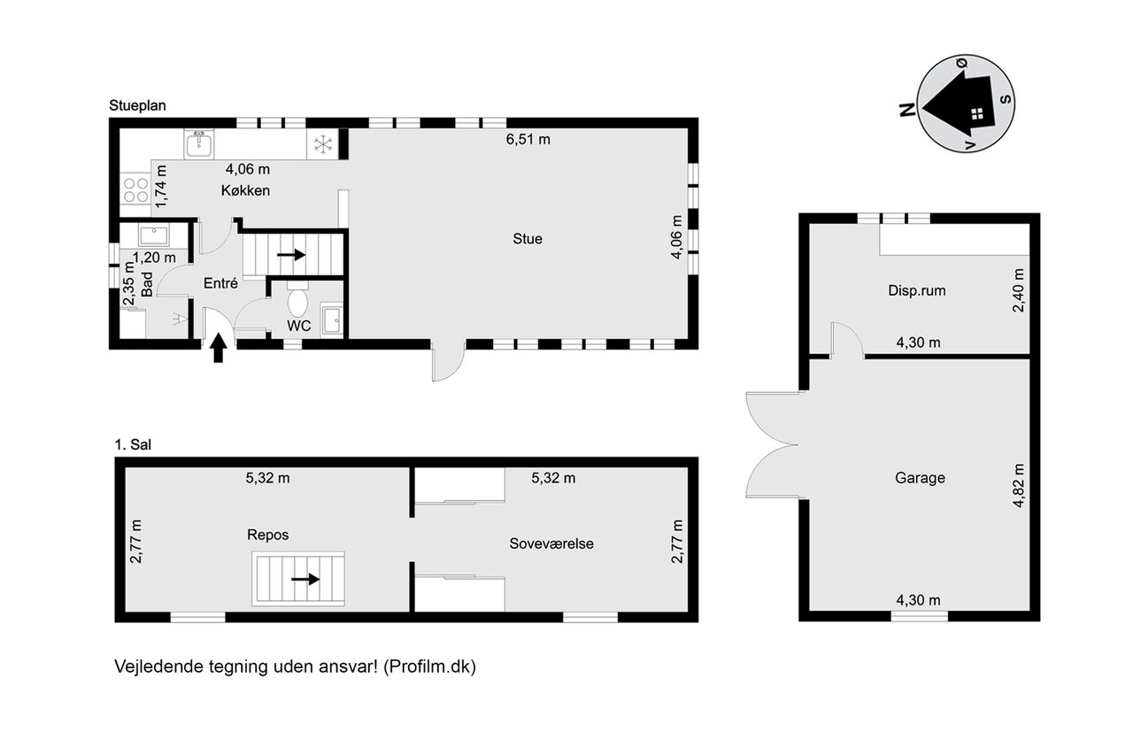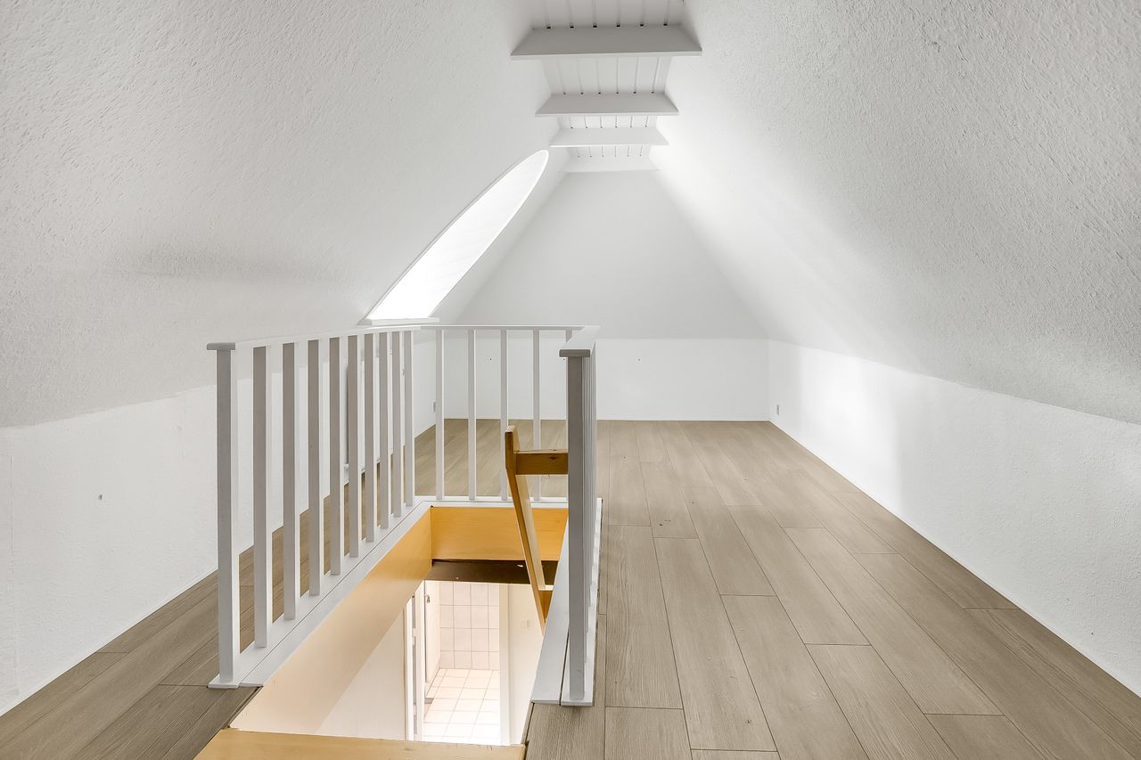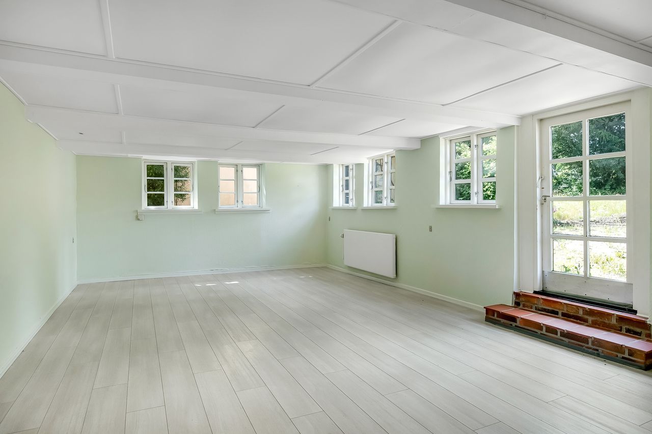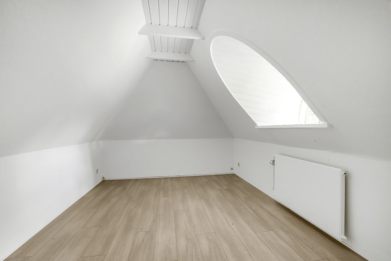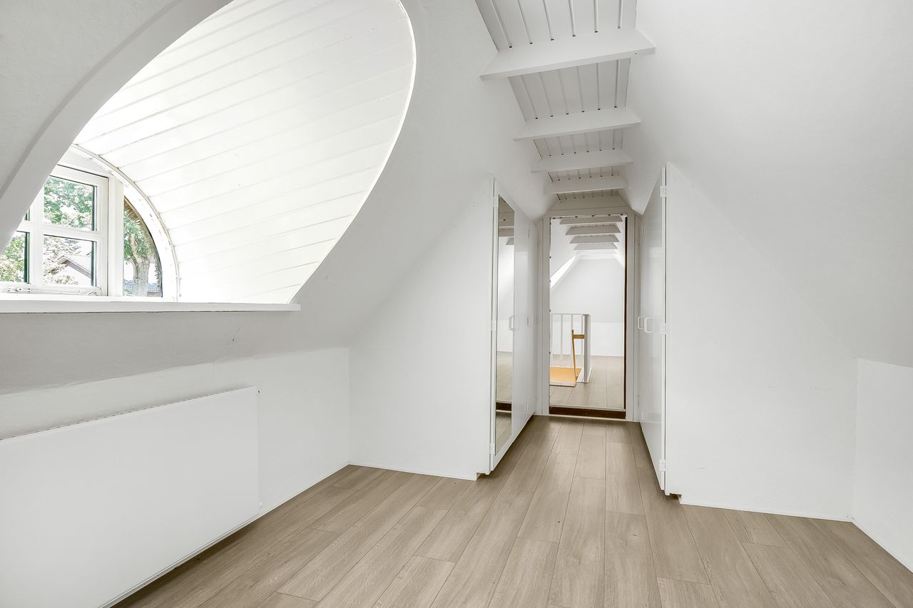 1. salen er indrettet med møblerbart repos og et fint kvistværelse.
