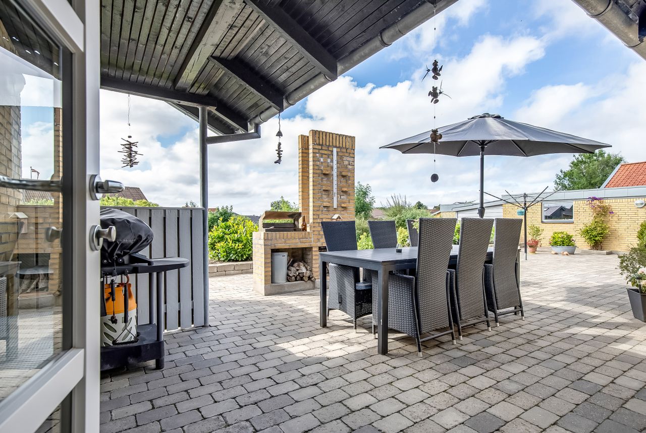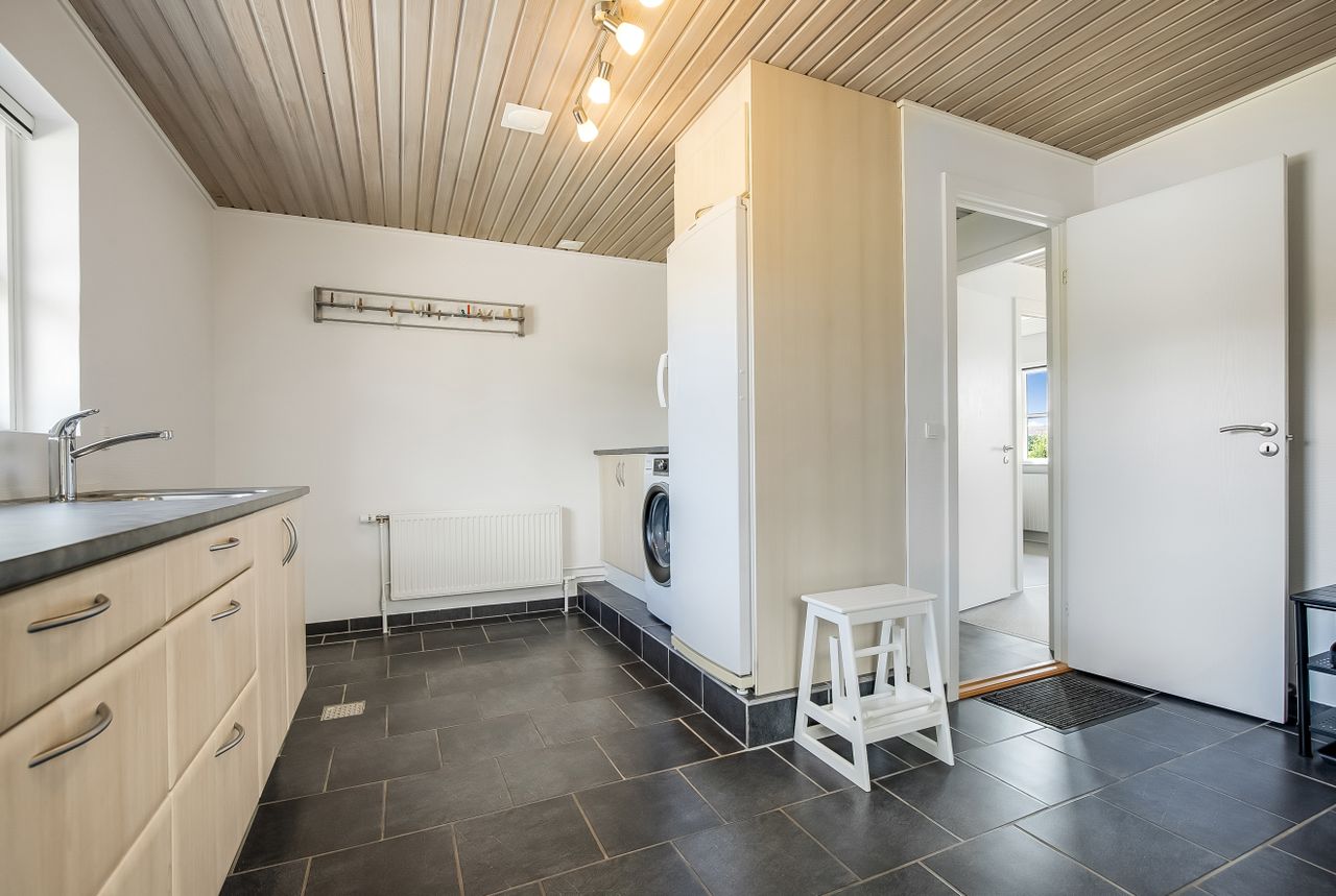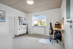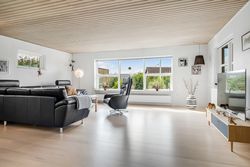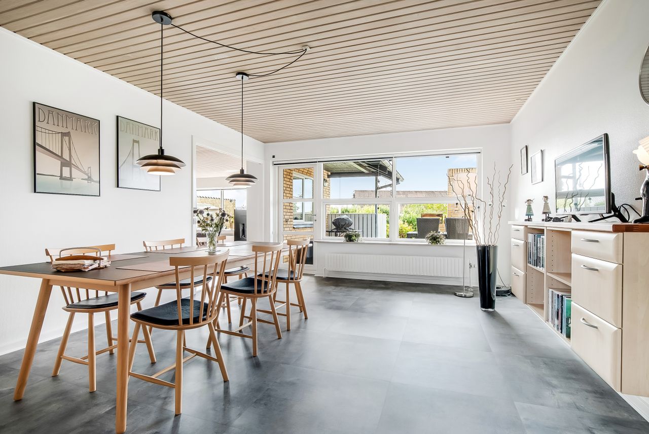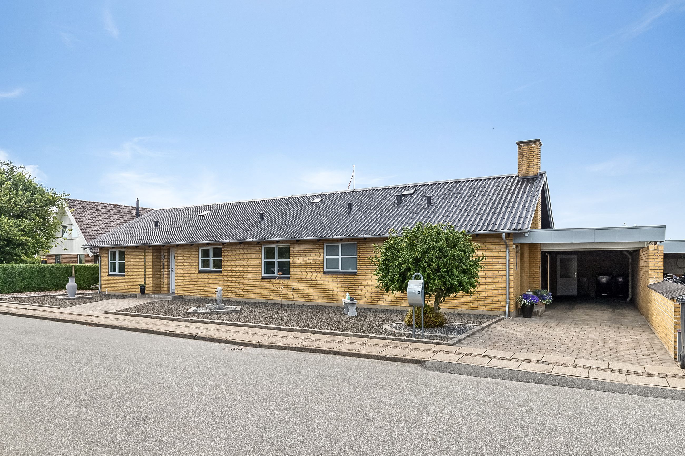 Der er velholdte ejendomme - og så er der Nøddelunden 43. Ejendommen fremstår i helt exceptionelt flot stand og med mange gode forbedringer foretaget i løbet af sælgers ejertid.Indretningen af ejendommens 200m2 bolig byder på intet mindre end 5 gode værelser, 2 badeværelser, køkken-/alrum og dejlig, lys stue. Perfekte rammer til den pladskrævende familie. Villaens indretning:Adgang til boligen via rummeligt bryggers - her er masser af god skabs- og bordplads.Fordelingsgang, hvorfra der er adgang til 3 regulære værelser, soveværelse (direkte adgang mellem soveværelse og det ene værelse, som p.t. anvendes som walk-in closet) samt stort badeværelse med vask i arrangement, bruseniche, badekar og klinkegulv ilagt varme. Køkken i åben forbindelse med alrum. Køkkenelementer fra 2008. Fra alrummet er der udgang til stor fliseterrasse.Stor, lys stue med trægulv.Det store køkken-/alrum i åben forbindelse med stuen skaber tilsammen et helt fantastisk & rummeligt miljø. Tillige entré med adgang til badeværelse med bruseniche og klinkegulv ilagt varme. Yderligere et regulært værelse. Til ejendommen hører carport med adgang til stort, isoleret værksted. Herudover redskabsskur. Haven er smukt anlagt med flere blomsterbede. Overkommelig størrelse plæne.Langs hele ejendommens sydside er der udlagt stor fliseterrasse med fremragende forhold, hvad end man søger sol eller skygge & læ. Indflytningsklar etplansvilla i efterspurgt kvarter i Nørre Aaby. Velkommen til Nøddelunden 43.