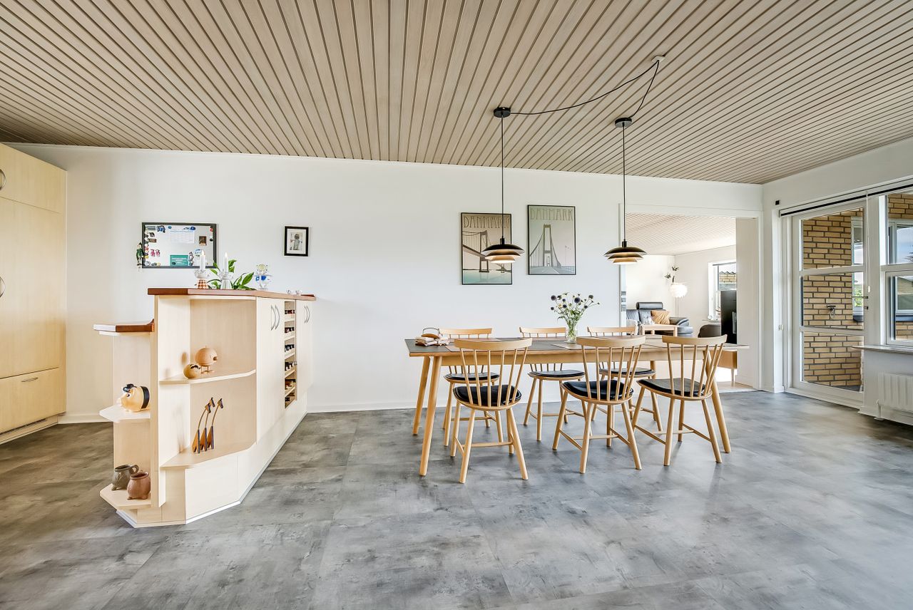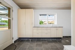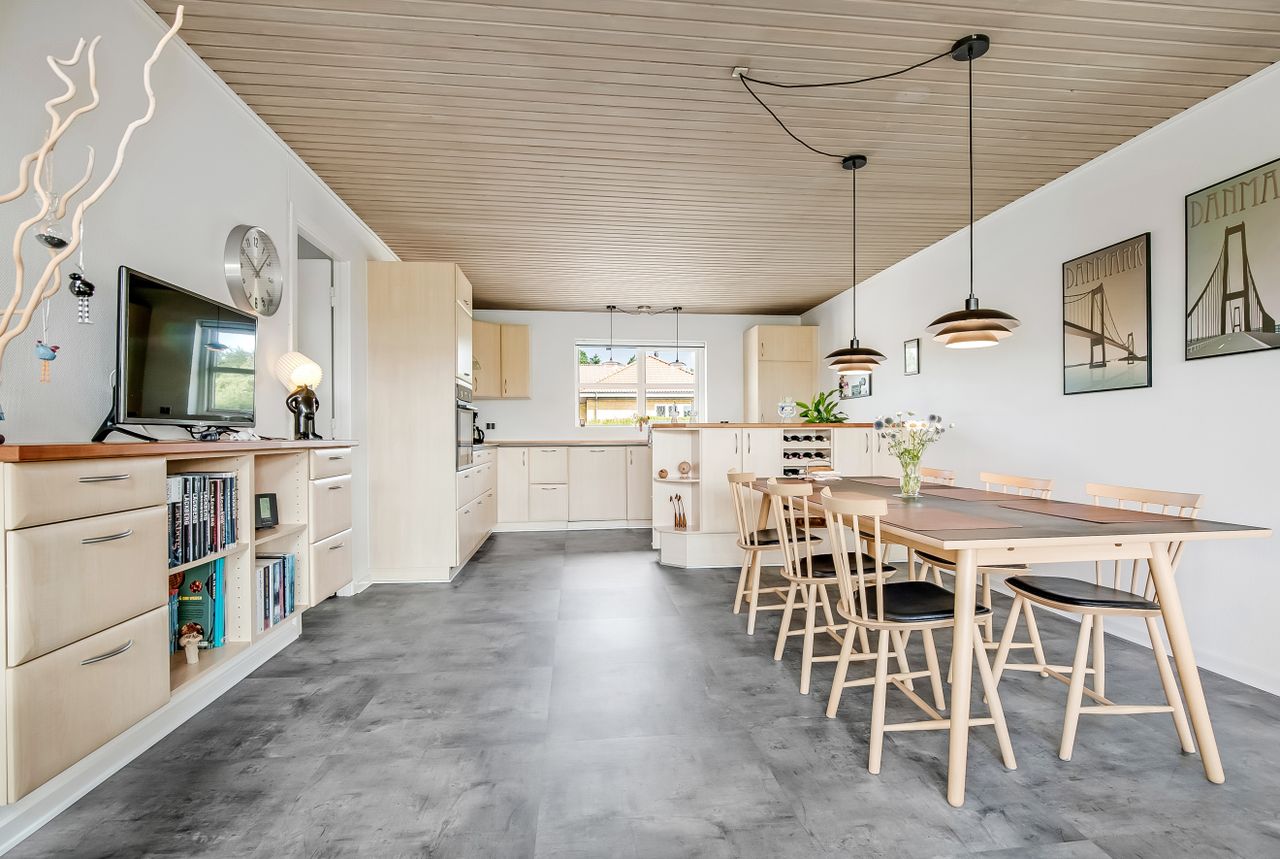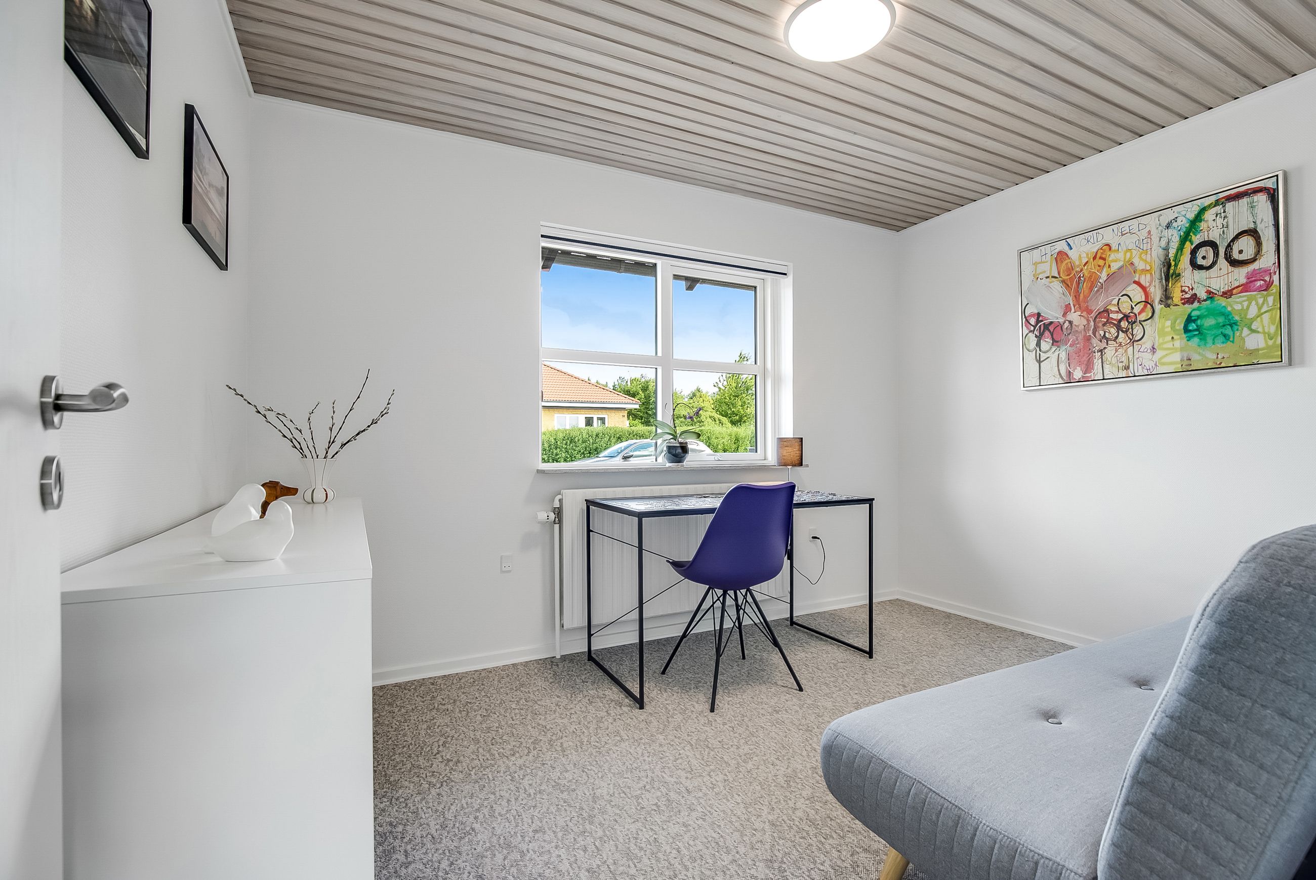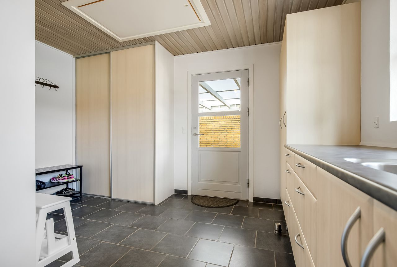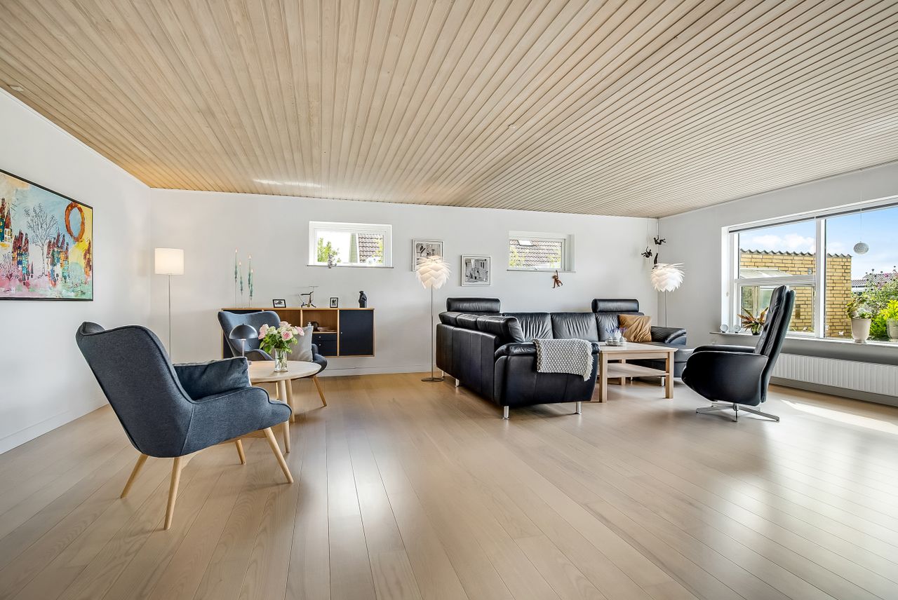 Der er velholdte ejendomme - og så er der Nøddelunden 43. Ejendommen fremstår i helt exceptionelt flot stand og med mange gode forbedringer foretaget i løbet af sælgers ejertid.Indretningen af ejendommens 200m2 bolig byder på intet mindre end 5 gode værelser, 2 badeværelser, køkken-/alrum og dejlig, lys stue. Perfekte rammer til den pladskrævende familie. Villaens indretning:Adgang til boligen via rummeligt bryggers - her er masser af god skabs- og bordplads.Fordelingsgang, hvorfra der er adgang til 3 regulære værelser, soveværelse (direkte adgang mellem soveværelse og det ene værelse, som p.t. anvendes som walk-in closet) samt stort badeværelse med vask i arrangement, bruseniche, badekar og klinkegulv ilagt varme. Køkken i åben forbindelse med alrum. Køkkenelementer fra 2008. Fra alrummet er der udgang til stor fliseterrasse.Stor, lys stue med trægulv.Det store køkken-/alrum i åben forbindelse med stuen skaber tilsammen et helt fantastisk & rummeligt miljø. Tillige entré med adgang til badeværelse med bruseniche og klinkegulv ilagt varme. Yderligere et regulært værelse. Til ejendommen hører carport med adgang til stort, isoleret værksted. Herudover redskabsskur. Haven er smukt anlagt med flere blomsterbede. Overkommelig størrelse plæne.Langs hele ejendommens sydside er der udlagt stor fliseterrasse med fremragende forhold, hvad end man søger sol eller skygge & læ. Indflytningsklar etplansvilla i efterspurgt kvarter i Nørre Aaby. Velkommen til Nøddelunden 43.