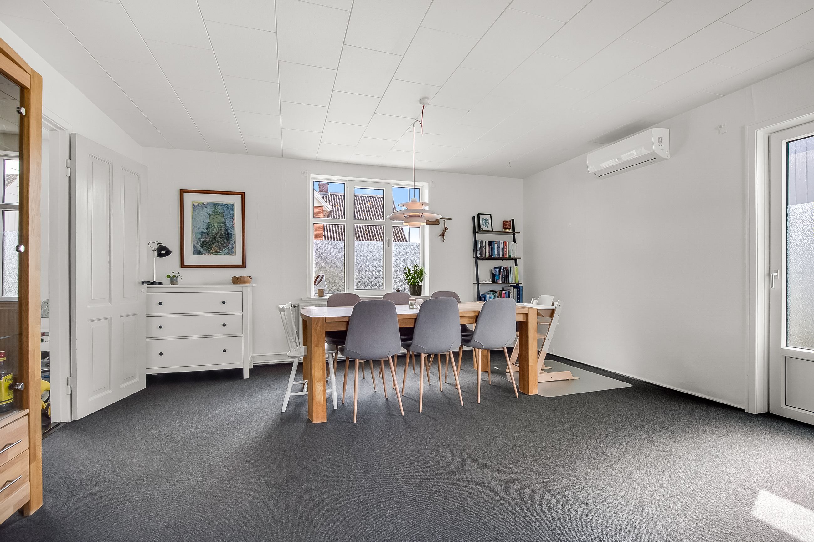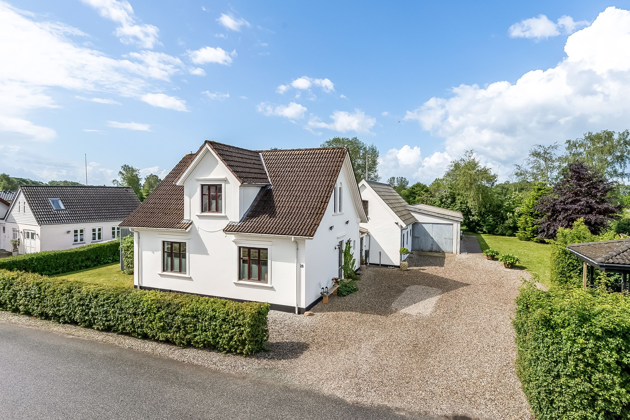 Ejendommen er beliggende i Brenderup by med kort afstand til skøn natur & Brenderup bymidte med gode skoleforhold, daginstitution, indkøb & sport.Fremragende rammer & fortsat med mulighed for selv at præge udtryk & indretning - særligt på 1. salen. Til ejendommen hører 75m2 fremragende garage/værksted med god loftshøjde. Her er oplagte muligheder, hvad end man drømmer om en god garage (evt. med lift) eller blot god plads til værksted/hobby. Villaens indretning i stueplan:Adgang til boligen via baggang med gasfyrsinstallationer. Baghus med fordelingsgang, hvorfra der er videre adgang til stort værelse samt badeværelse med muret bruseniche & klinkegulv ilagt varme. Hertil rummeligt bryggers.Fra baggang endvidere adgang til hovedhuset, som byder på fint køkken med lille spiseplads samt adgang til viktualierum. Gode stueforhold bestående af Tv-stue & stor spisestue med udgang til haven. Luft-luft varmepumpe.Endvidere entré med trappeløb til 1. salen. 1. salen er indrettet med repos, hvorfra der er adgang til 3 regulære værelser & toilet. 1. salen fremstår anvendelig, men generelt i ældre stand. Her er rig mulighed for kommende ejer til at sætte eget præg. hvad end det er modernisering eller ændring i planløsning. Haven fremstår hovedsageligt udlagt i plæne & opleves opvokset & ugeneret med flere gode sol- & lækroge. Gode rammer med mulighed for modernisering & stort værksted. Velkommen til Brenderupvej 28.