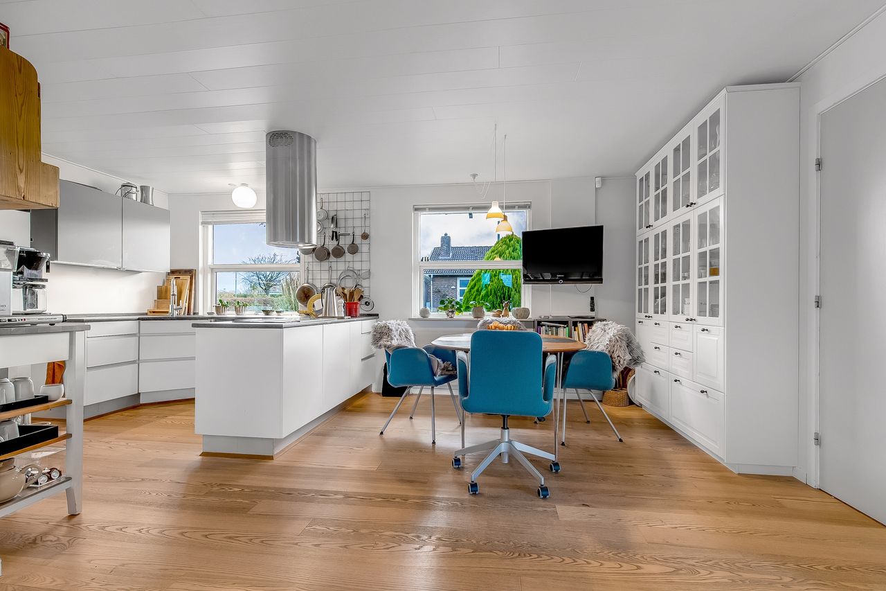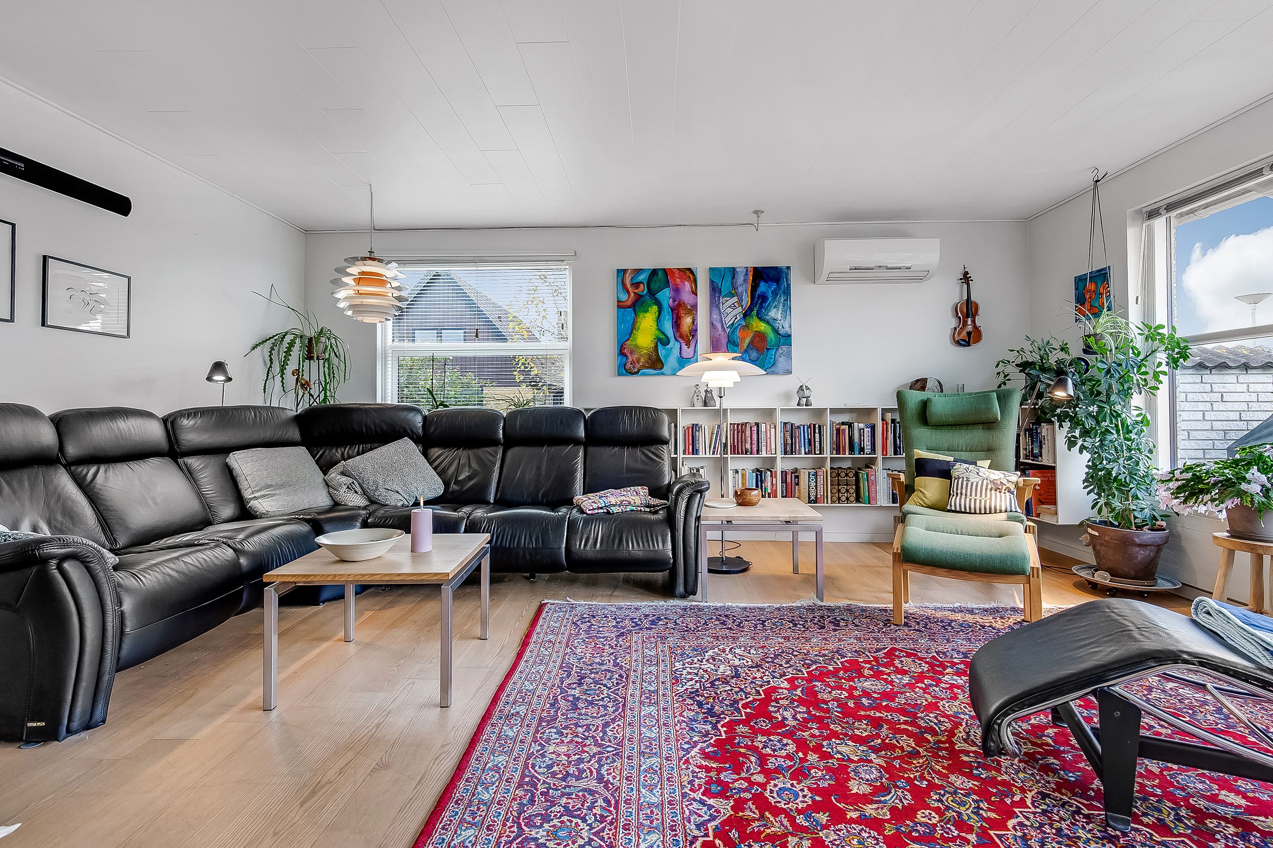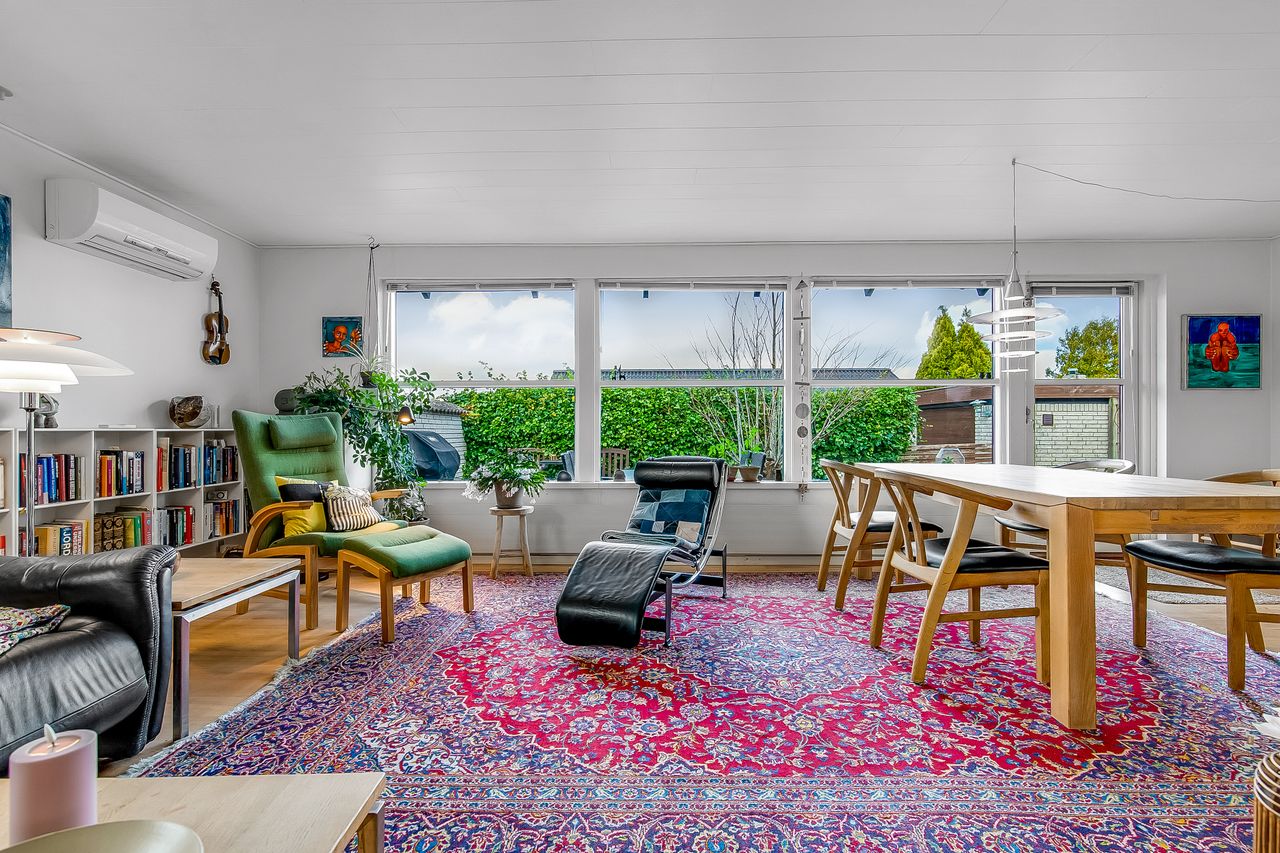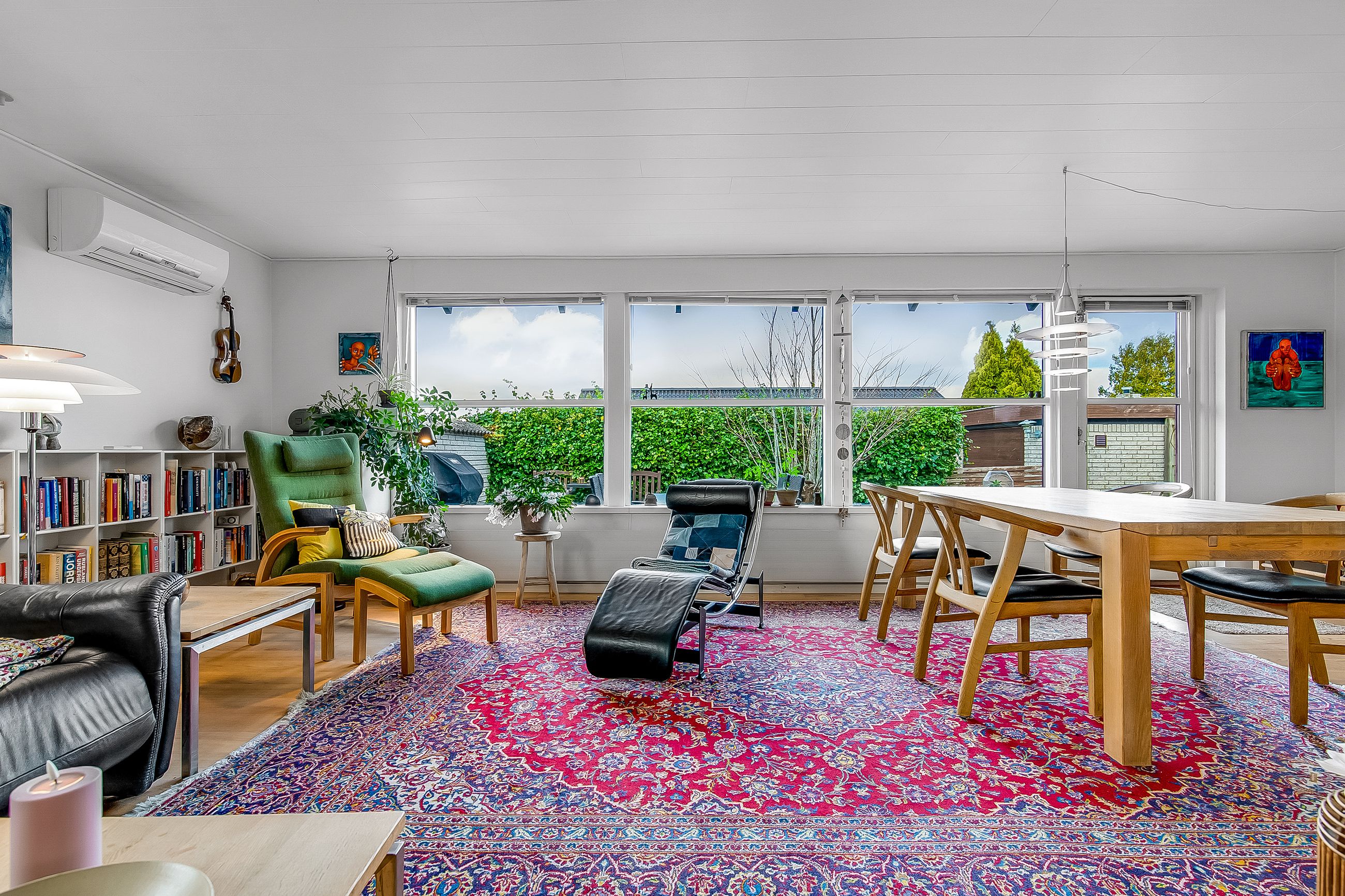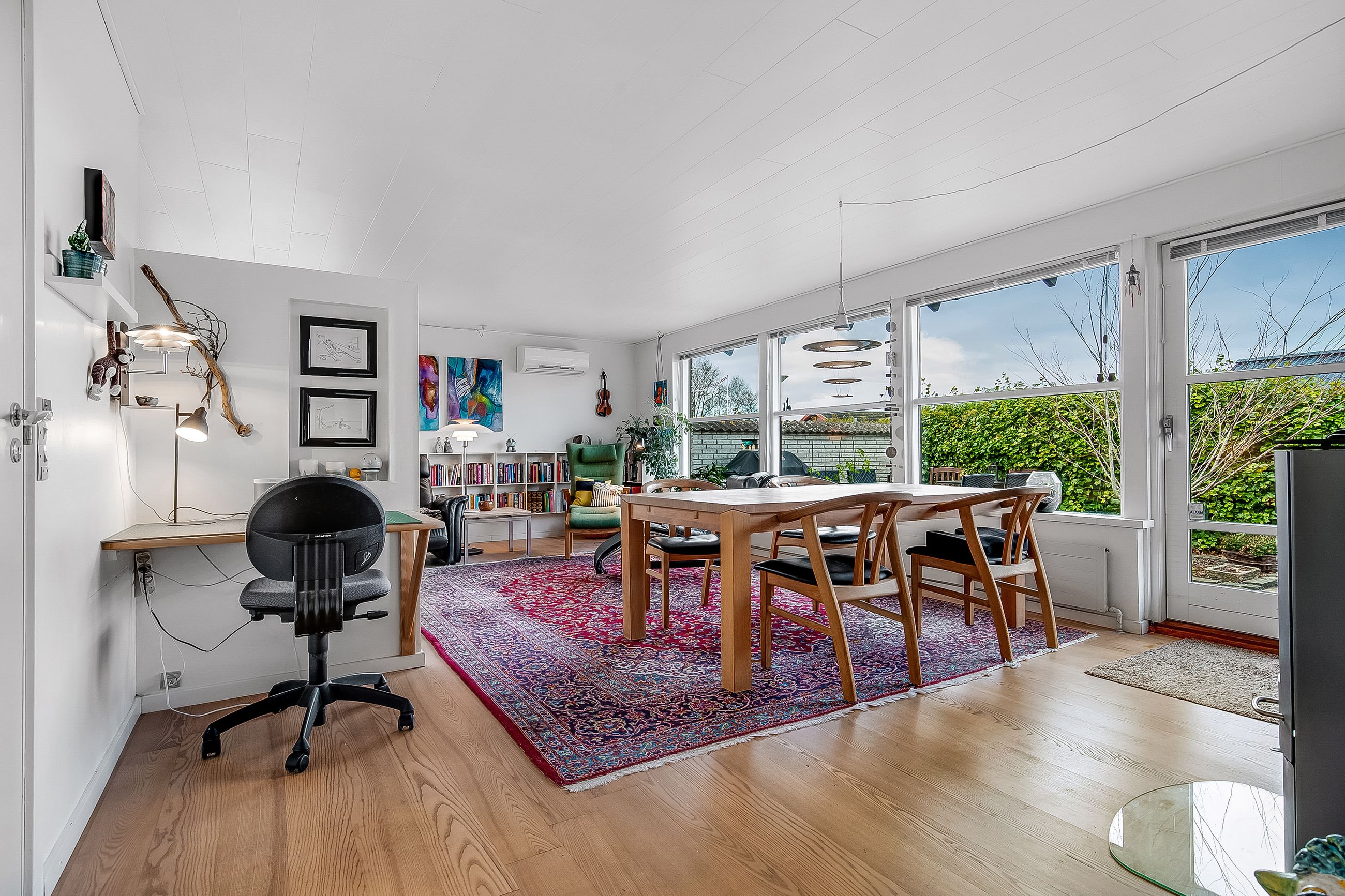 Området udmærker sig bl.a. ved sine lukkede vænger & interne stisystemer, som fører børn sikkert rundt i kvarteret samt skole & sport. Nuværende ejer har opdateret villaen på en lang rækker punkter - her har været særligt fokus på energioptimering. Af større arbejder kan bl.a. nævnes udskiftning af tag inkl. efterisolering, udskiftning af vinduer, isolering af sokkel, opsætning af solcelleanlæg samt luft-luft varmepumpe og meget mere.Den samlede energirenovering har resulteret i et flot energimærke med karakteren B!Udover energioptimeringerne, har nuværende ejer tillige forestået en modernisering af ejendommen, som bl.a. omfatter nye gulve i køkken, alrum & stue, udskiftning af køkken samt modernisering af både badeværelse & gæstetoilet. Villaens indretning: Adgang til boligen via rummeligt bryggers. Her er god plads.Lyst & indbydende køkken i åben forbindelse med alrum. Fra alrumsdelen adgang til 2 tidstypiske værelser samt fordelergang til nydeligt badeværelse med god bruseniche & vask i arrangement. Tillige stort soveværelse med skabsvæg. Endvidere lys stue med udgang til dejligt terrassemiljø. Fra stue adgang til fin entré med videre adgang til regulært værelse samt gæstetoilet. Til ejendommen hører god garage & redskabsrum. Nydeligt anlagt have udlagt i flotte miljøer med bl.a. indbydende forhave, privat & ugeneret baghave med stort terrassemiljø & tillige nyttehave med dejligt drivhus/orangeri. Gode, energivenlige rammer med skøn beliggenhed i Ø-kvarteret. Velkommen til Vejrøvænget 31.