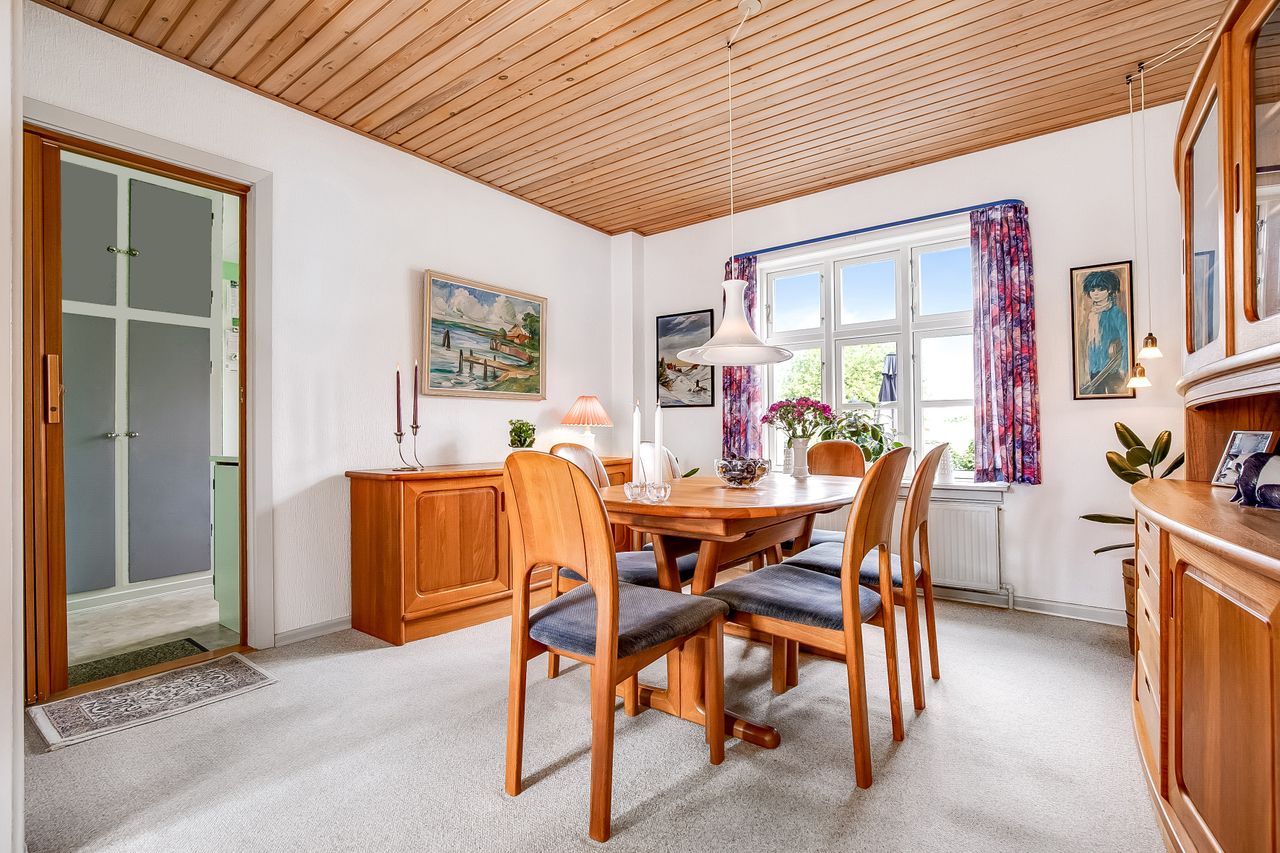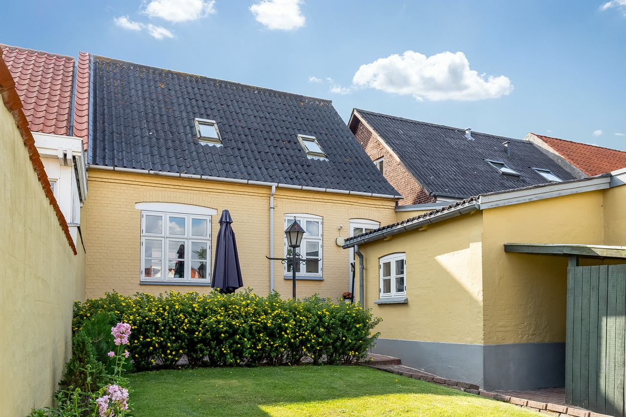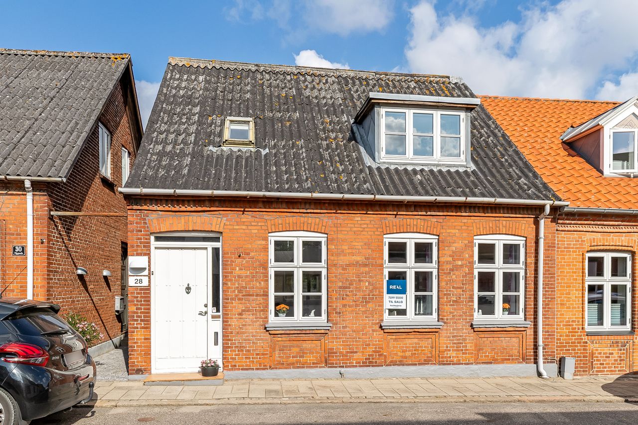 Charmerende byhus med få hundrede meter til vandet, gågaden & havnepromenade.Fremstår i ældre, men flot vedligeholdt stand.Grunden er beliggende med udgang til P-pladsen - gode parkeringsforhold ved ejendommen. Ejendommens indretning i stueplan: Adgang til boligen via indbydende entré med trappeforløb til 1. salen. Stor & lys dagligstue i åben forbindelse med spisestue. Ældre, men fint køkken. Endvidere viktualierum. 1. salen er indrettet med repos, hvorfra der er adgang til regulært værelse, stort soveværelse samt badeværelse.