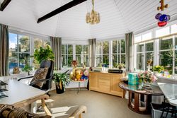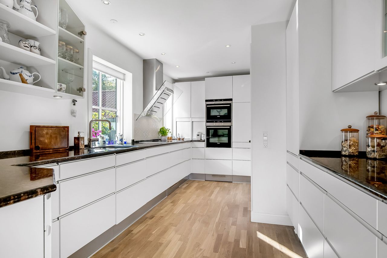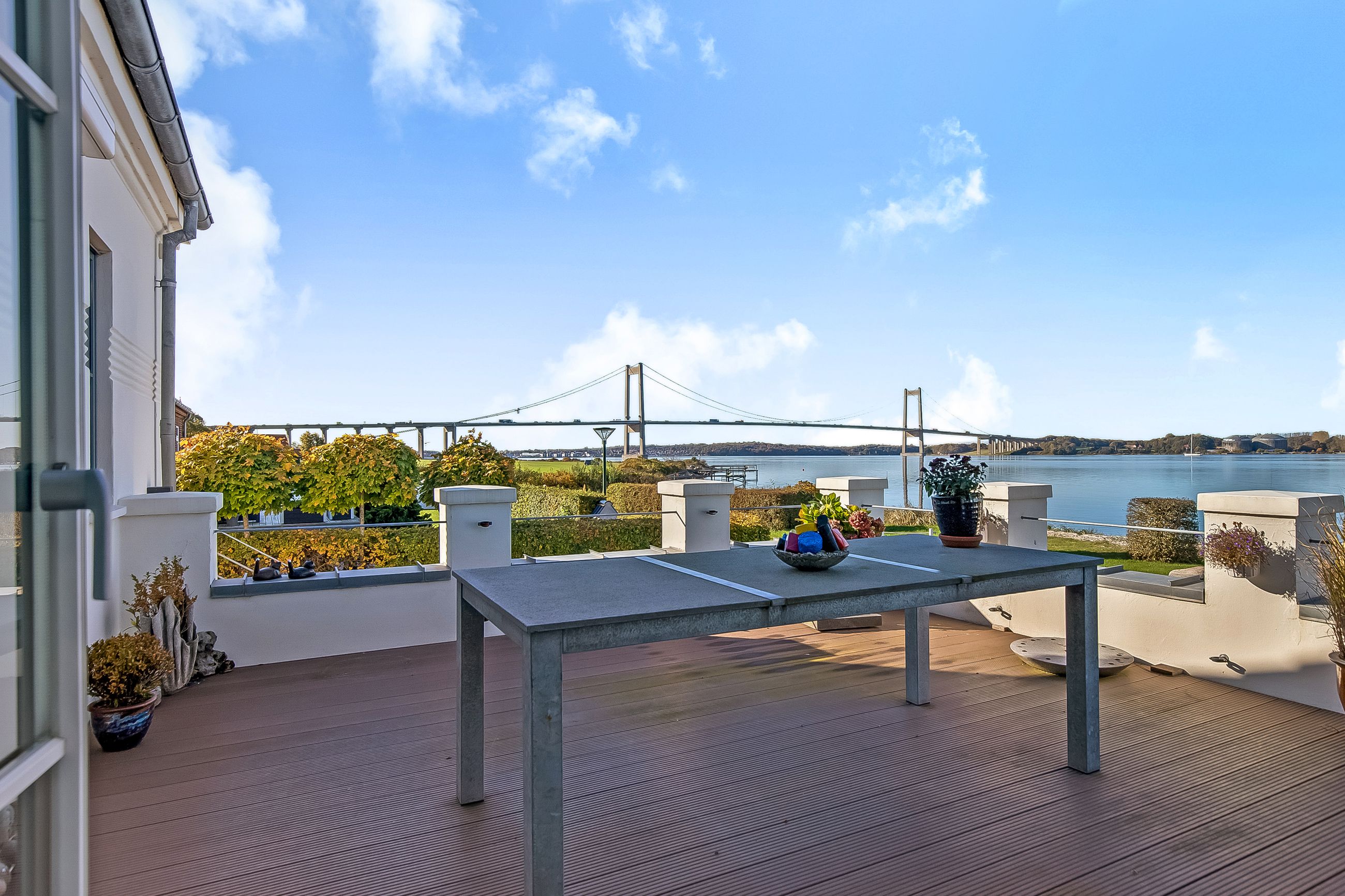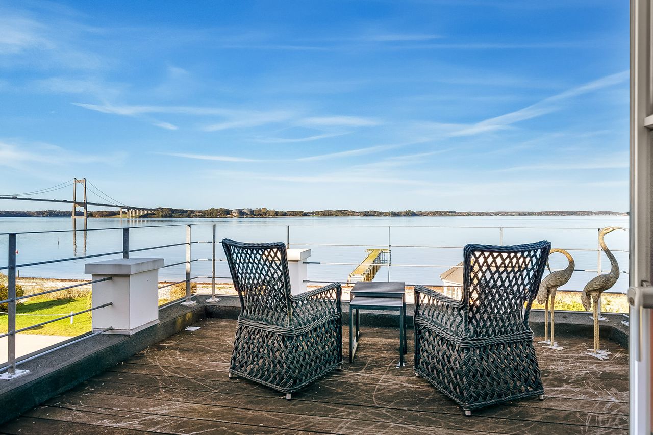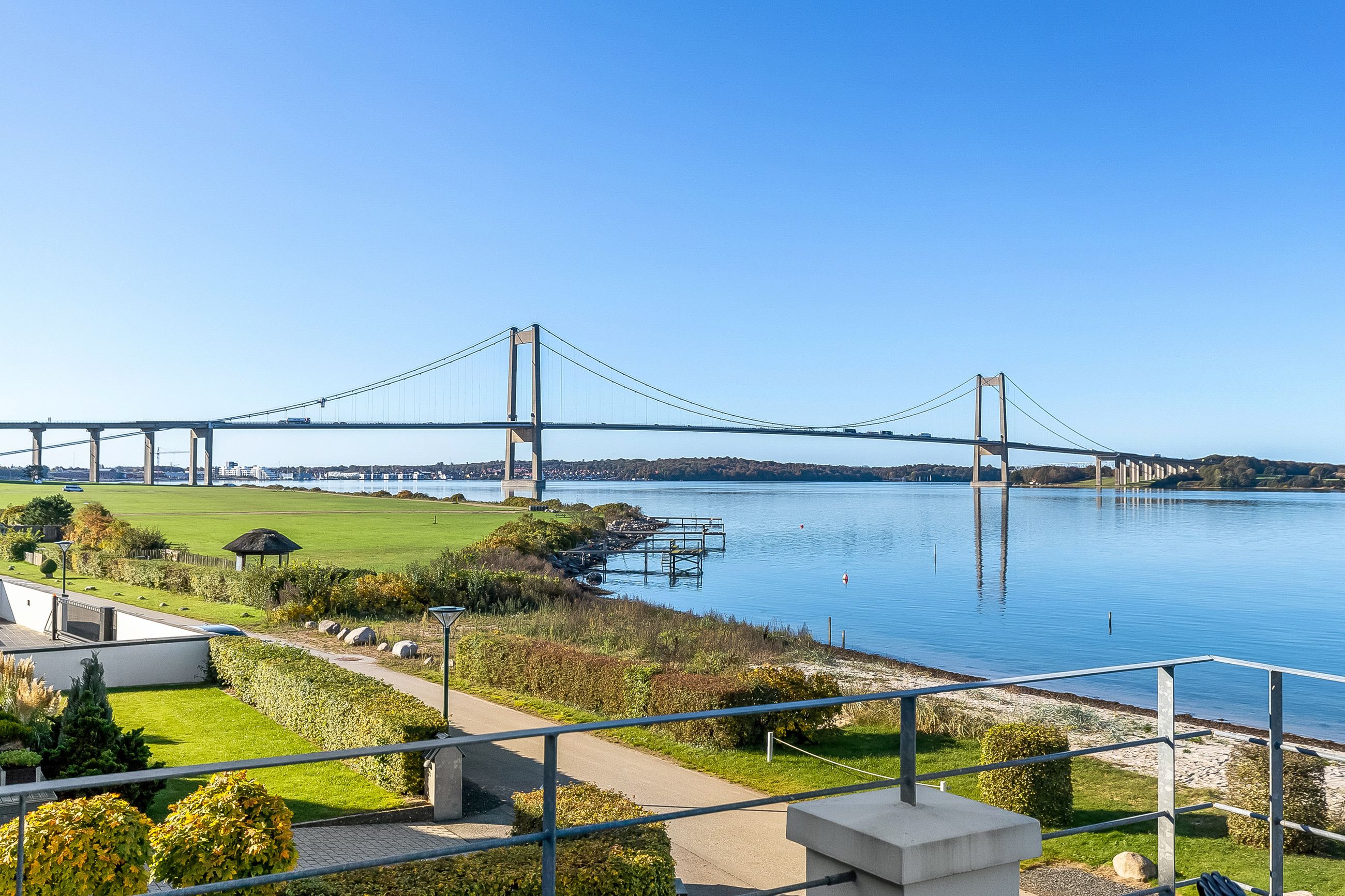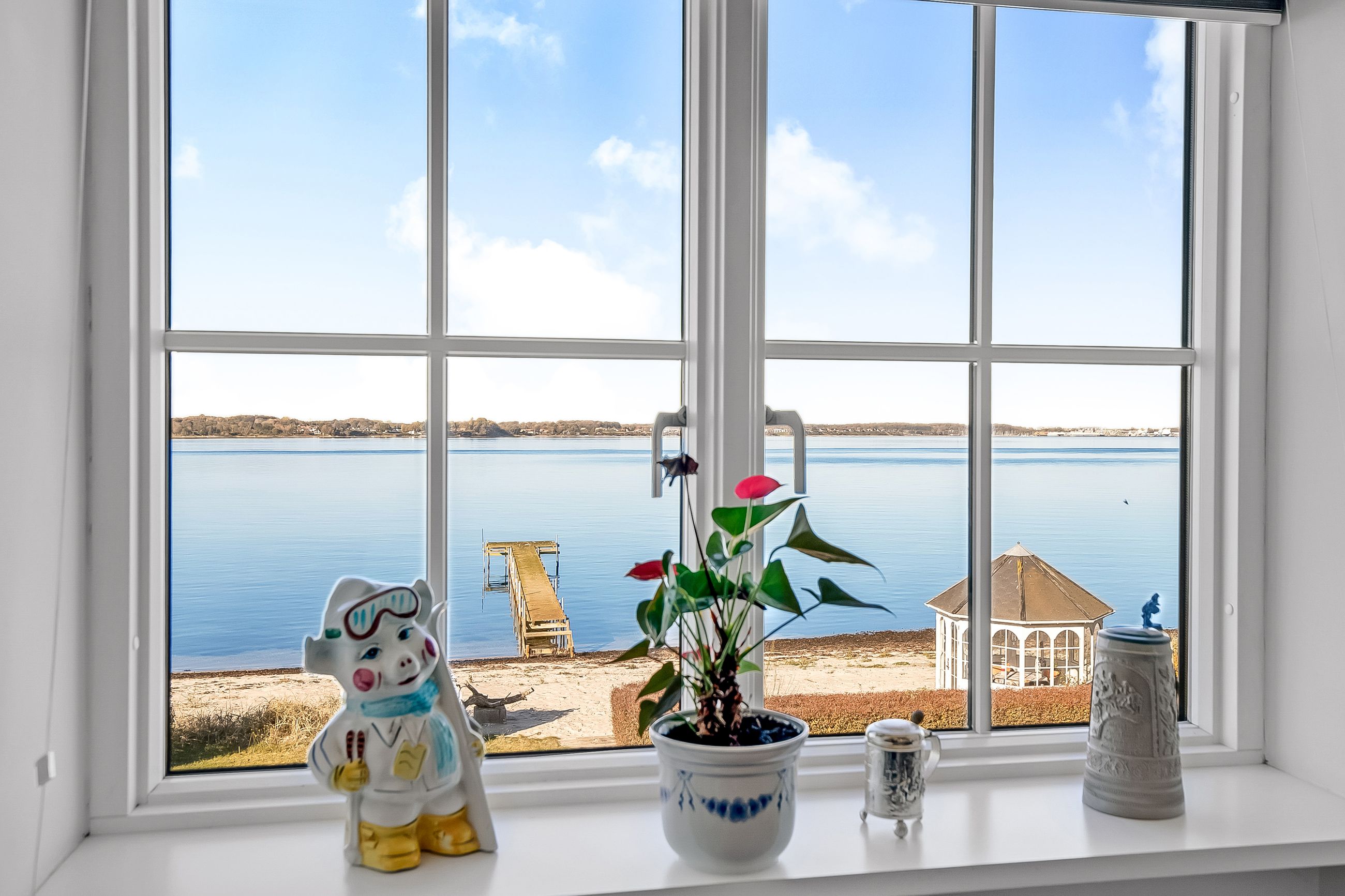Ejendommen byder på en rummelig entre og en imponerende vinkelstue, hvor det skønne lysindfald og den betagende panoramaudsigt over Lillebælt straks fanger øjet. Her kan man nyde hyggelige stunder foran brændeovnen eller samles med familien i de rummelige omgivelser. Det veludstyrede køkken indbyder til gastronomiske udfoldelser og gør madlavningen til en fornøjelse.