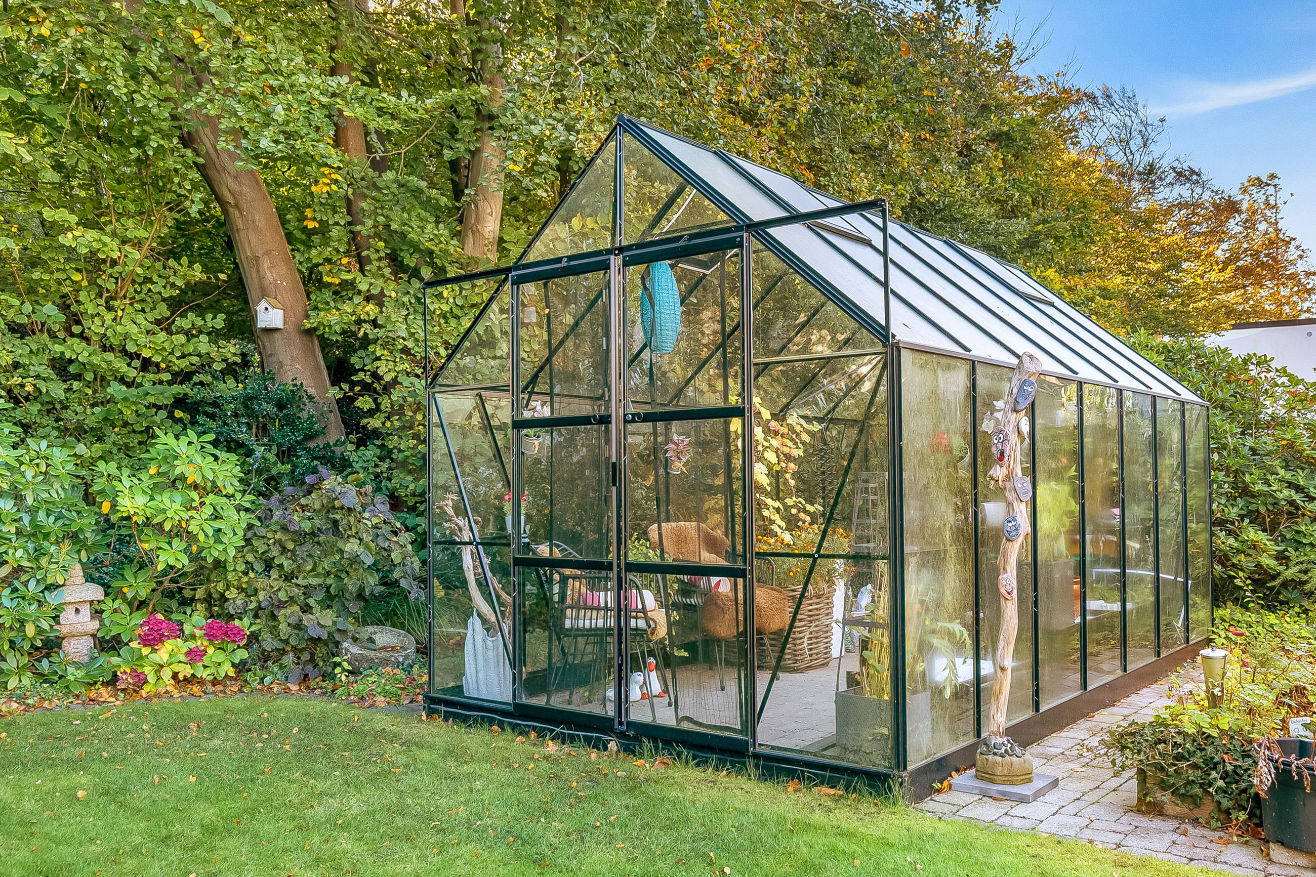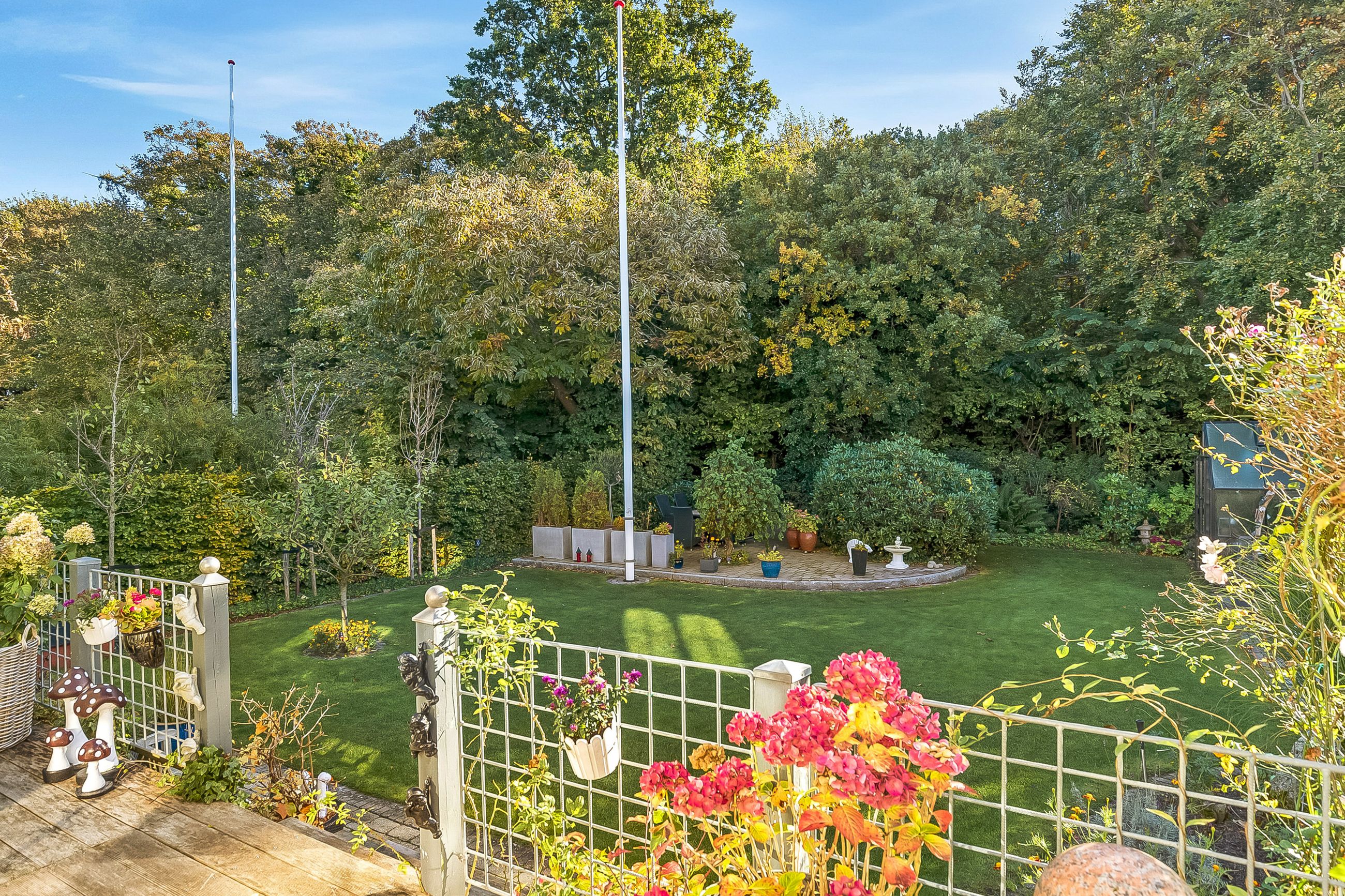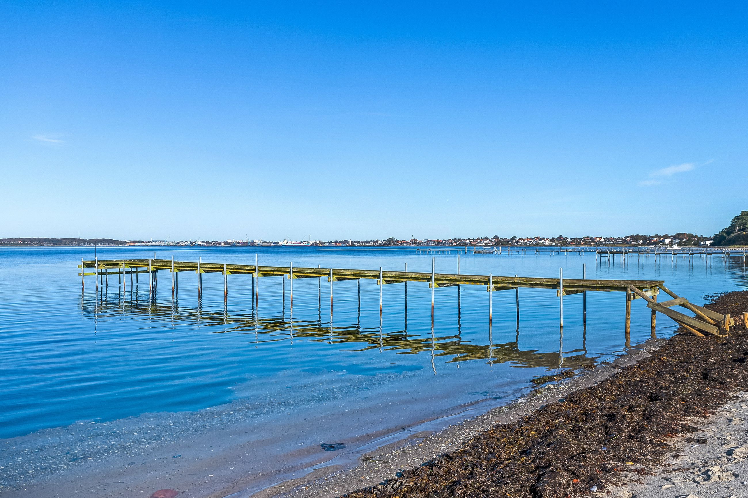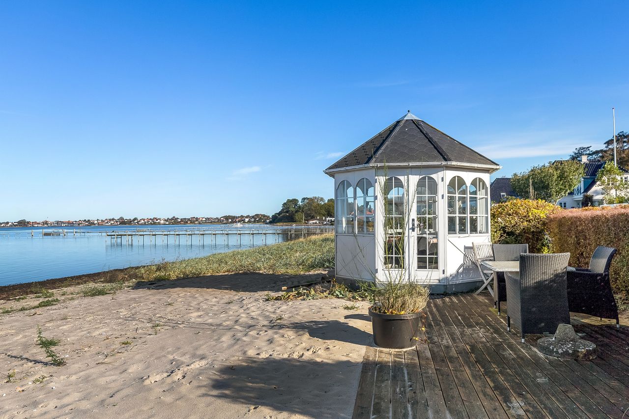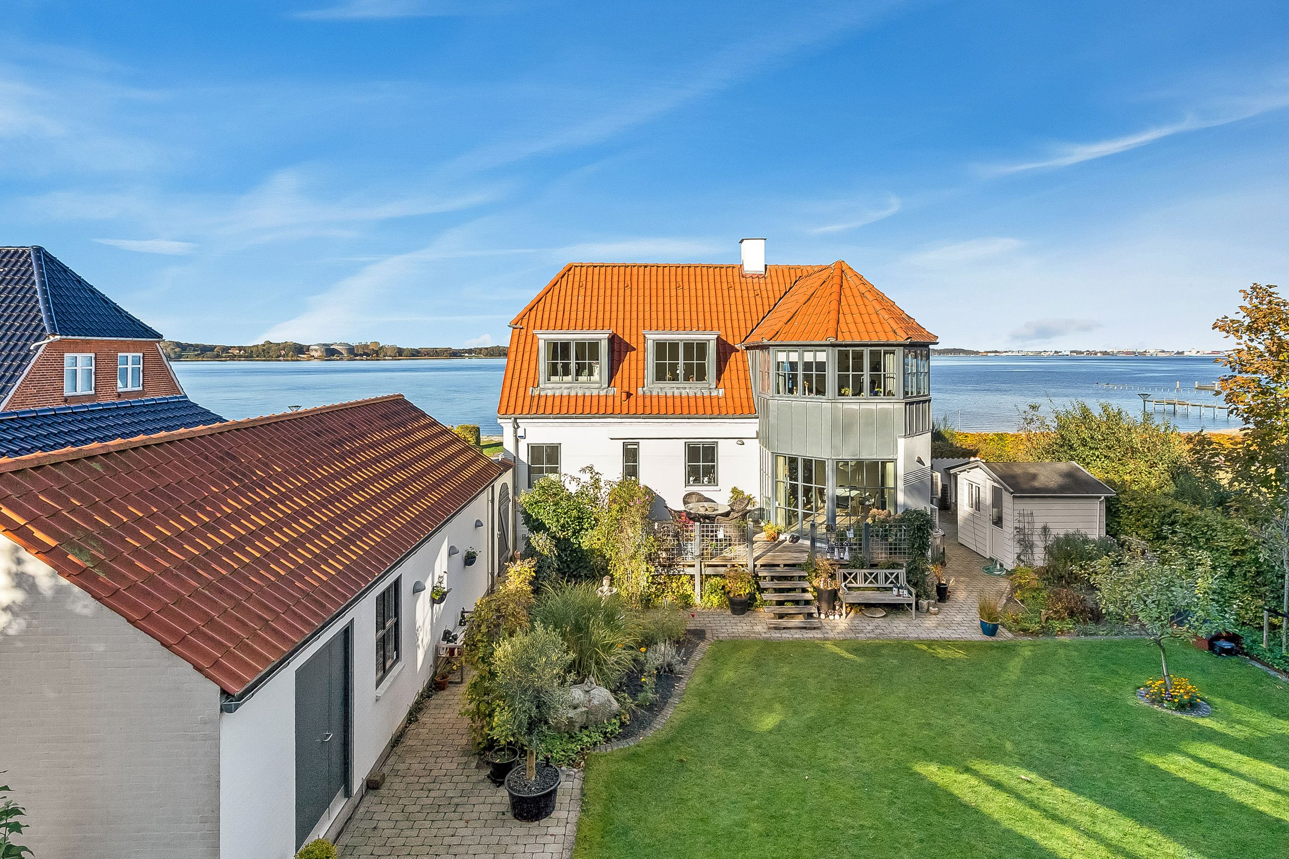Udenfor strækker den grønne oase sig ned mod egen strandgrund komplet med badebro og strandhus – perfekt for dem der elsker at være tæt på naturen.