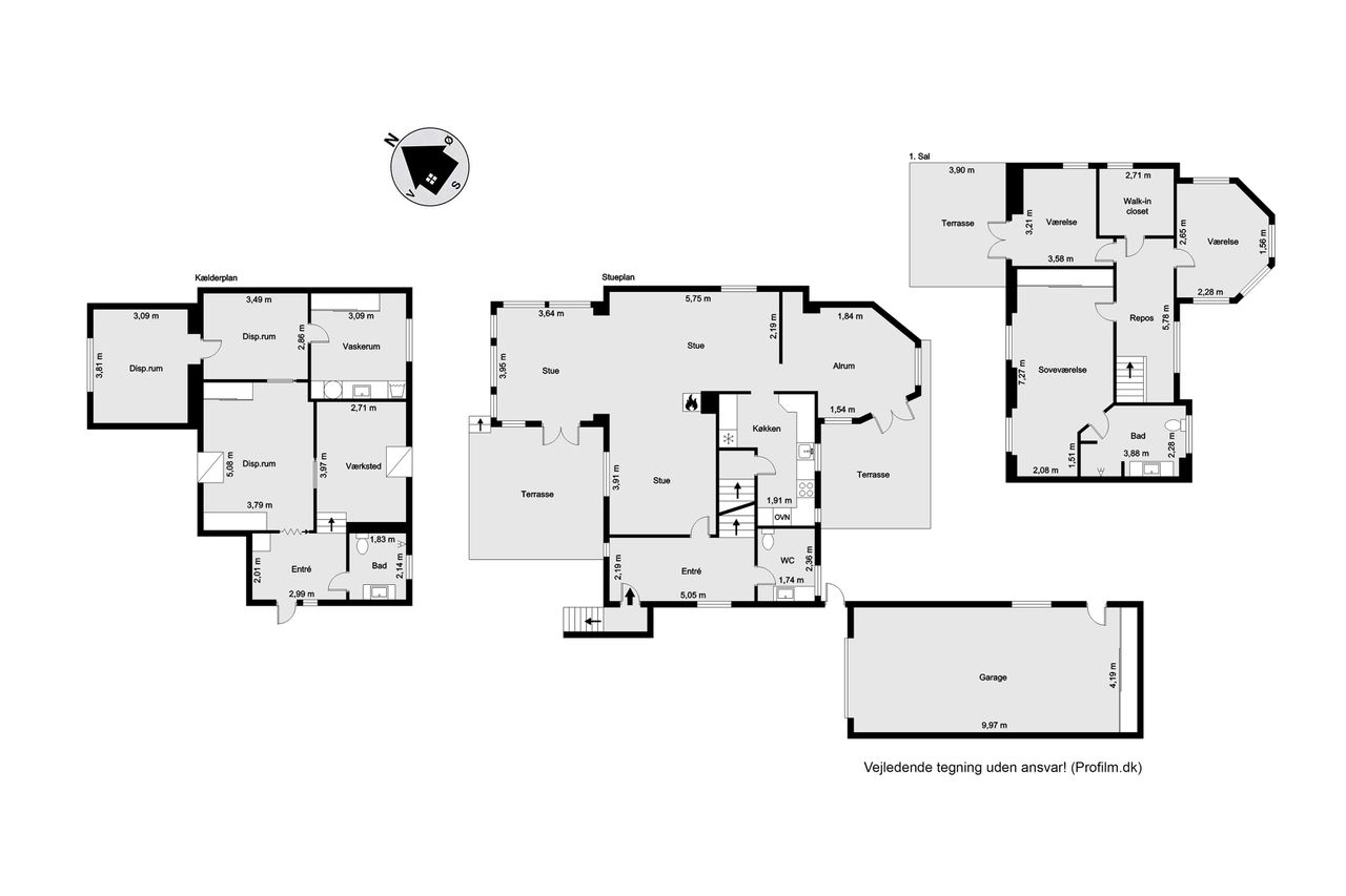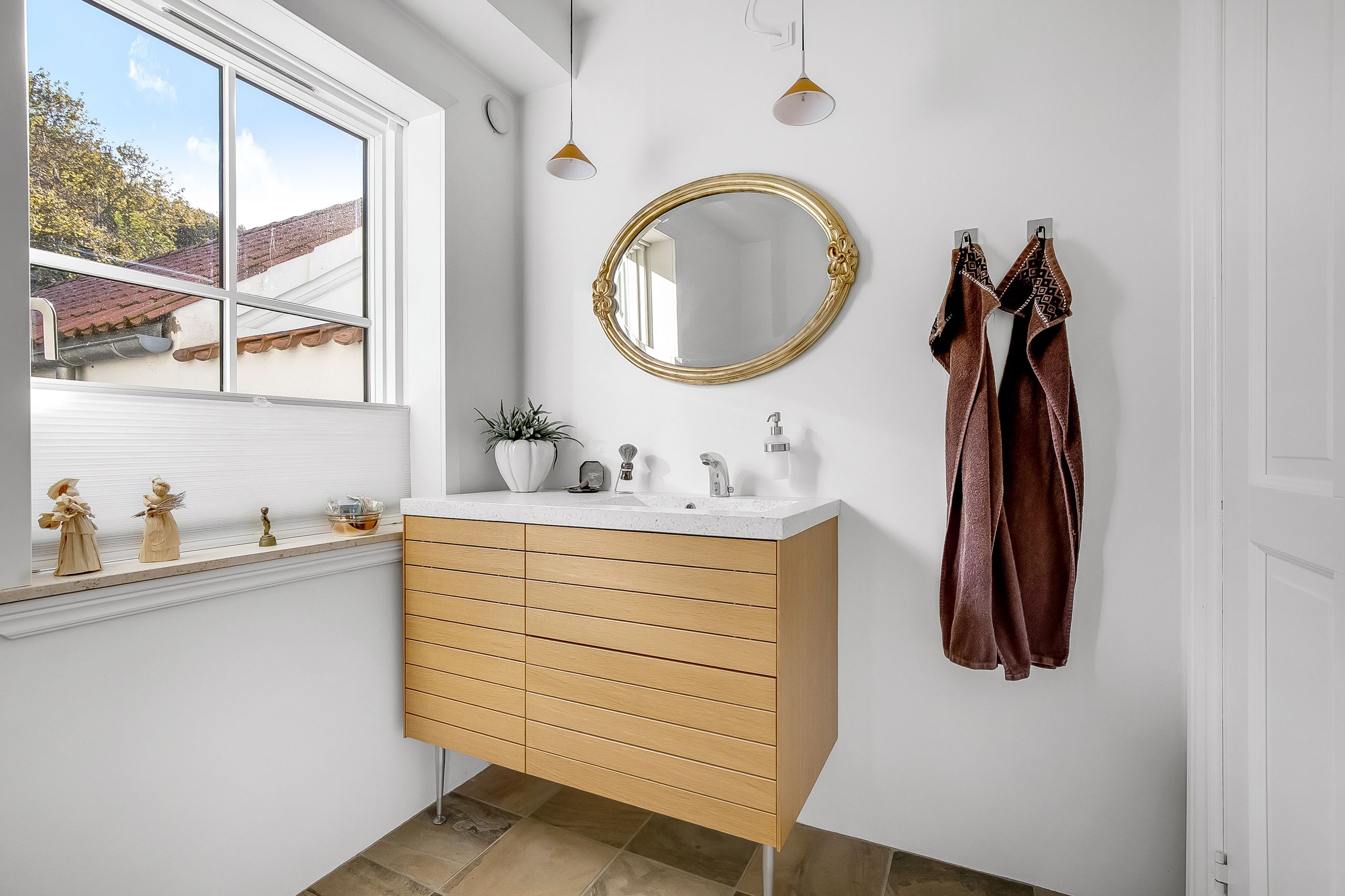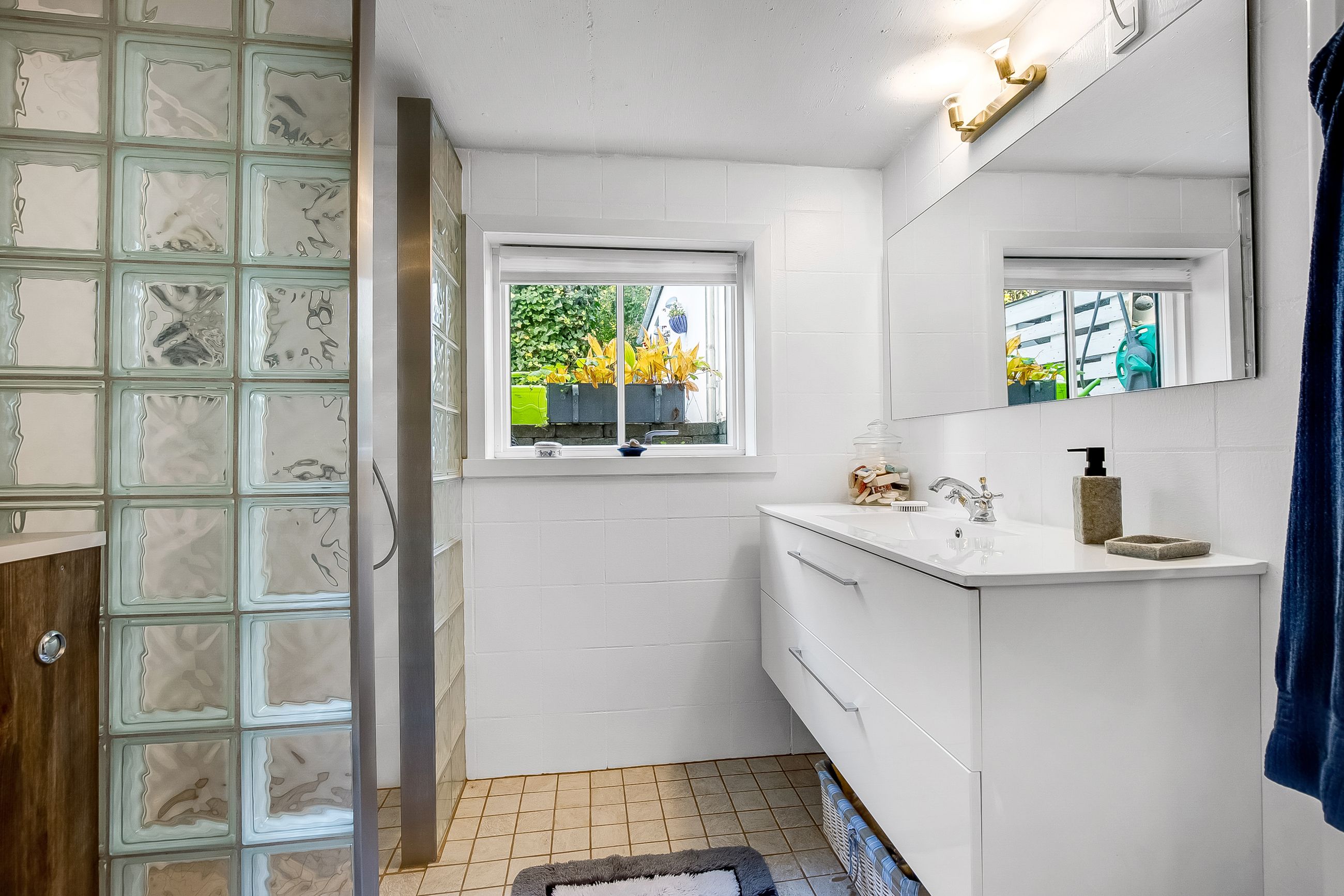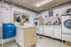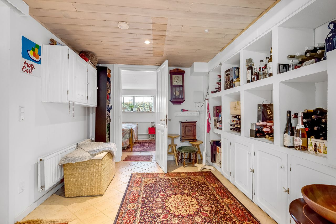 Kælderen overrasker særdeles positivt med sin anvendelighed. Her findes en entre med direkte udgang til indkørsel samt tre disponible rum, som kan benyttes efter behov – hvad enten det er som gæsteværelser, hobbyrum eller hjemmekontor. Derudover rummer kælderen også et pænt brusebadeværelse samt praktiske faciliteter som værksted og bryggers.