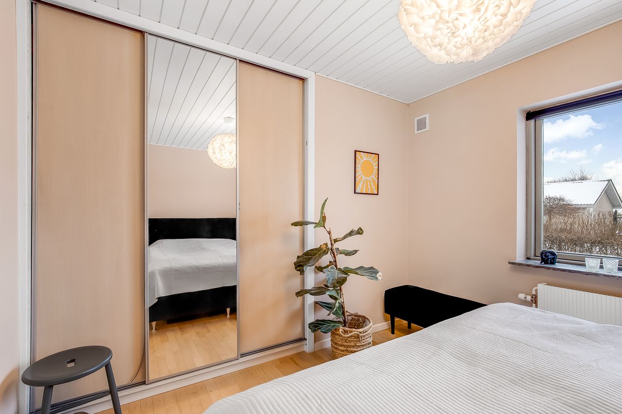 Adgang til boligen via præsentabel entré. Adgang til 2 fine værelser samt stort soveværelse med indbyggede skabe.