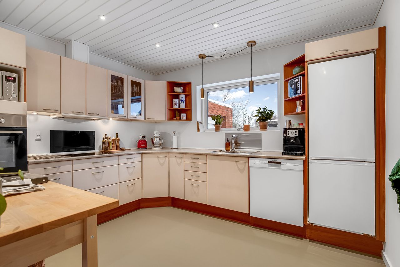 Rummeligt køkken med mulighed for at indrette lille spiseplads.