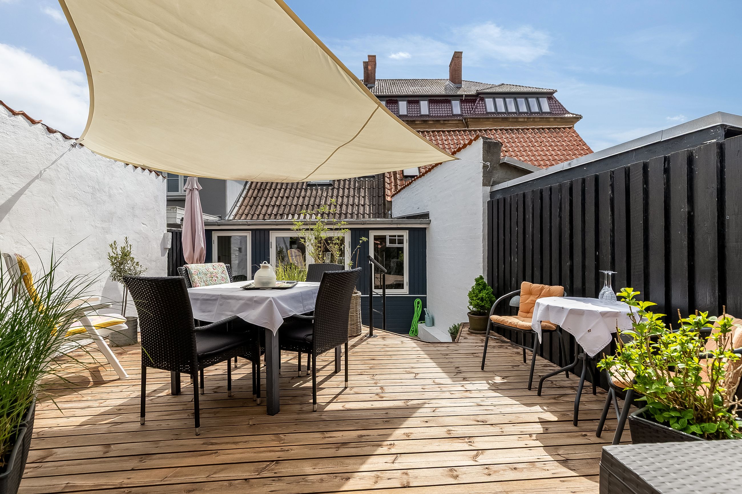 Udover en absolut fin boligdel, får man også en skøn oase i kombinationen mellem den integrerede udestue & det udvendige træterrassemiljø.