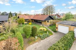 Her udbydes en virkelig spændende villa med god kælder Opført i klassisk 1960´er stil med store vinduer, lækre stueforhold og flotte trægulve. Meget autentisk. For kommende ejer er gode muligheder for at lave den helt rigtige modernisering. Det kan virkelig blive godt. Beliggende i bunden af lukket vænge, men helt ugeneret haveanlæg mod syd/vest og med kort afstand til skole, strand, indkøb osv. Indretning: Entre med flot, oprindeligt entremøbel. Køkken i vinkel med oplagte muligheder for at åbne op til stuen. Stor, lys opholdsstue med flot parketgulv, store sydvendte vinduespartier og med udgang til have og terrasse. To børneværelser samt et stort soveværelse med indbyggede skabe. Badeværelse med brus samt et separat toilet. Kælderen byder på en god loftshøjde og fremstår meget anvendelig. Rummer repos, bryggers, fyrrum med ny fjernvarmeinstallation og flere gode disponible rum. Til villaen hører 30m2 muret garage med el-port. Dejlig lukket have med store, delvist overdækkede terrassearealer.