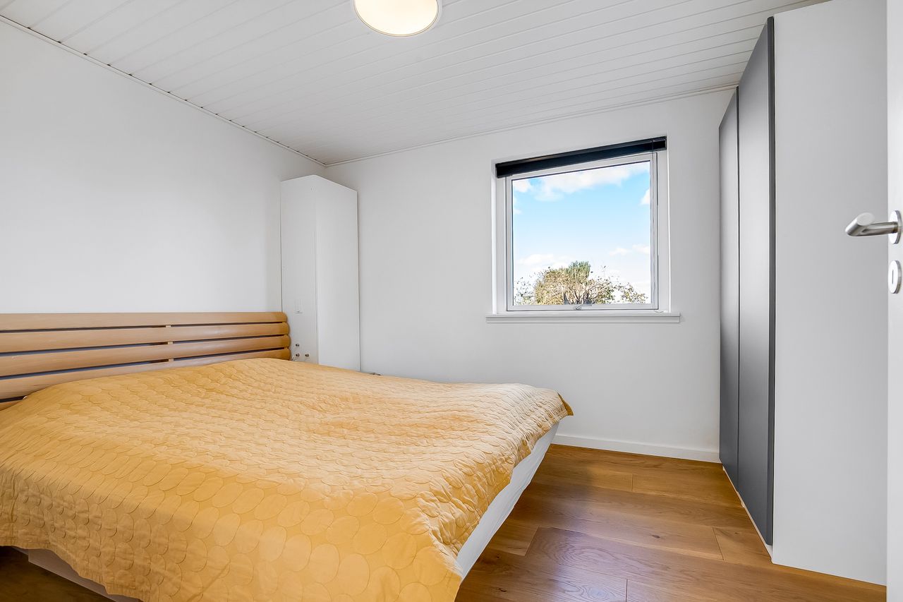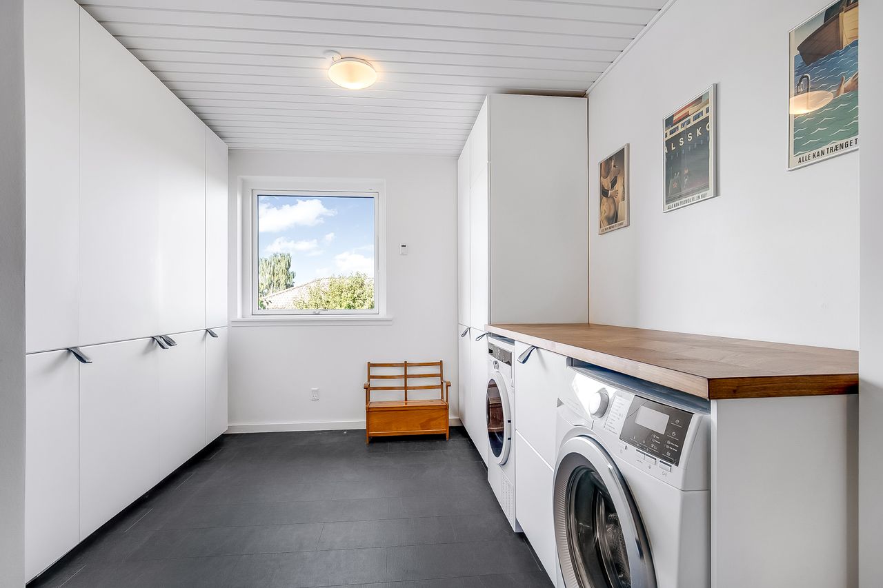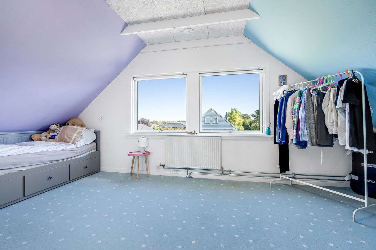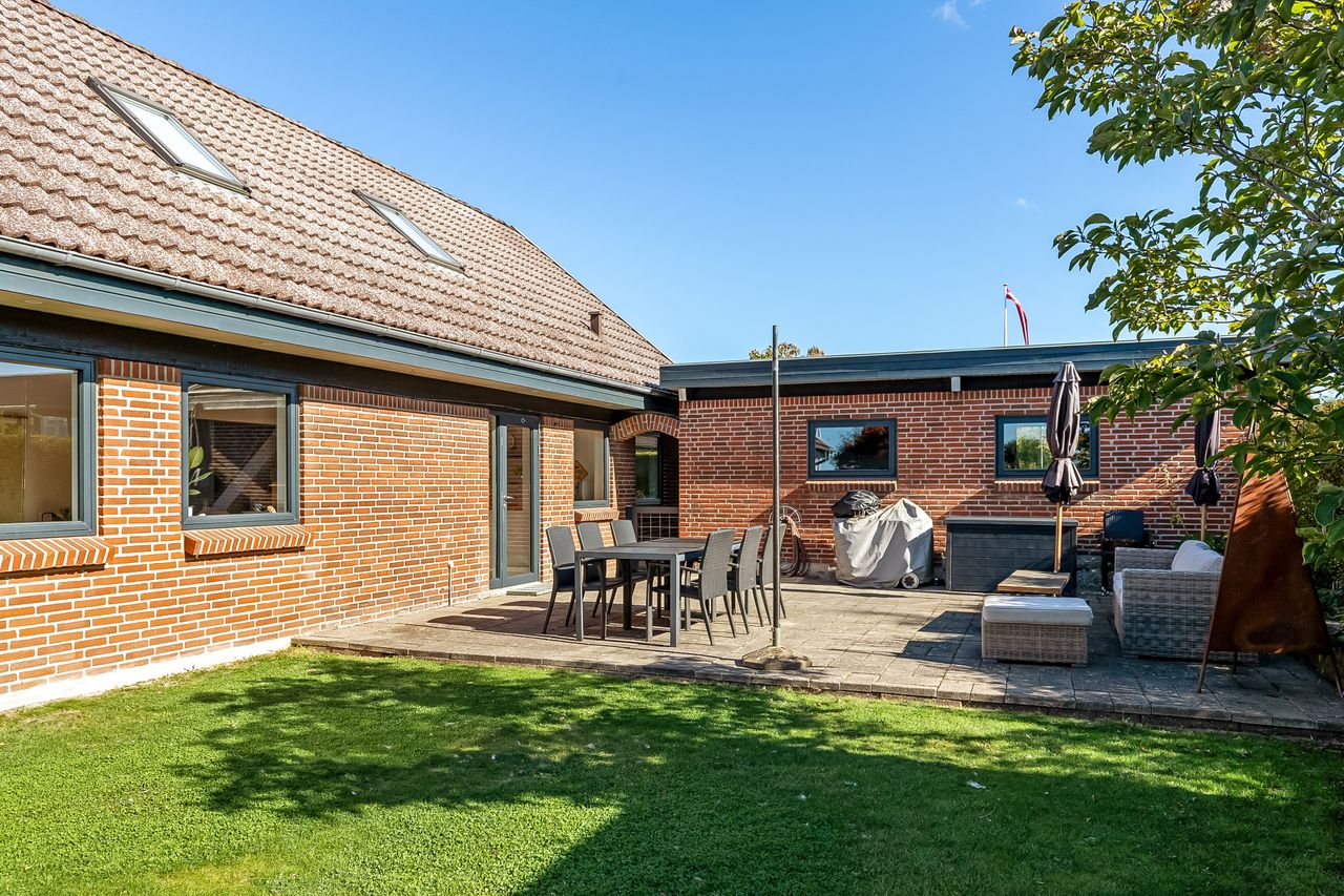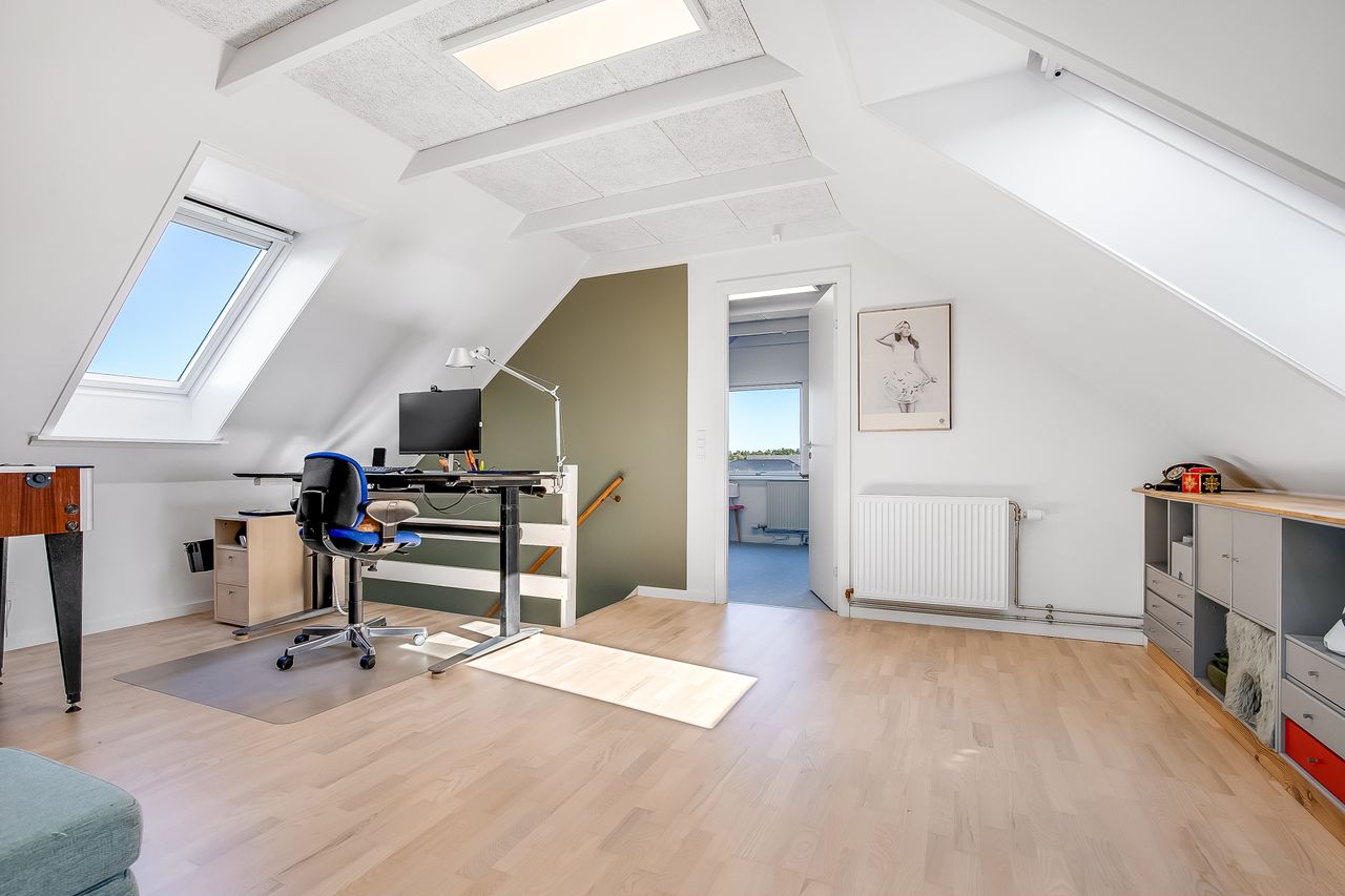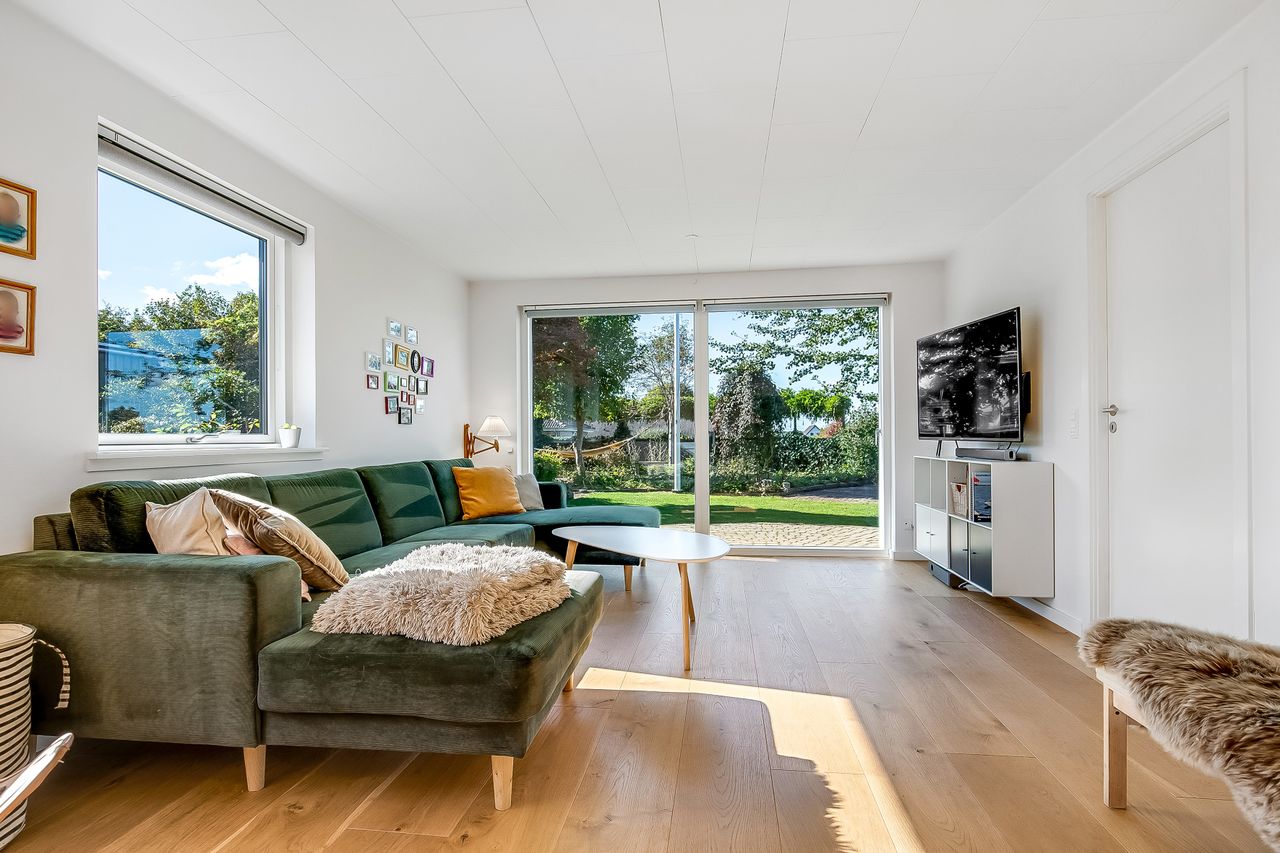 Indflytningsklar, familievenlig villa i Ø-kvarteret Her er huset for dig med ønsket om en rummelig, pæn og velopdelt villa i det populære Ø-kvarter. Villaen udmærker sig ved nuværende ejers mange, gode forbedringer. Disse omfatter bl.a. og særligt etablering af gulvvarme i stueplan (2019), nye vinduer og døre (2019), udskiftning af køkken og bryggers (2019), kablet netværk (2019), flotte egeplanker på gulv i stueplan (2022), renovering af bad på 1 sal (2021) og tilkobling til fjernvarme i 2025. Dertil godt værksted, garage og carport. Skøn, ugeneret have, som tillige er højtbeliggende i området. Indretning: Stort og funktionelt bryggers i flot stand.Køkken/alrum og stue i vinkel med masser af lys og plads. Her vil du gerne invitere familie og venner. Udgang til ugenerte terrasser mod syd/øst og syd/vest. Soveværelse samt fint badeværelse med kar og gulvvarme. 1. salen er indrettet med to store gavlværelser samt stort aktivitetsrum, som efter behov nemt kunne opdeles med yderligere et værelse/kontor og fortsat have plads til et godt aktivitetsrum. Hertil nydeligt badeværelse med brus og gulvvarme. Haven er anlagt med store terrasse miljøer og opvoksede bede.Da grunden og ejendommen er højt beliggende, opleves en sjældent ugenerthed fra matrikel og bolig.