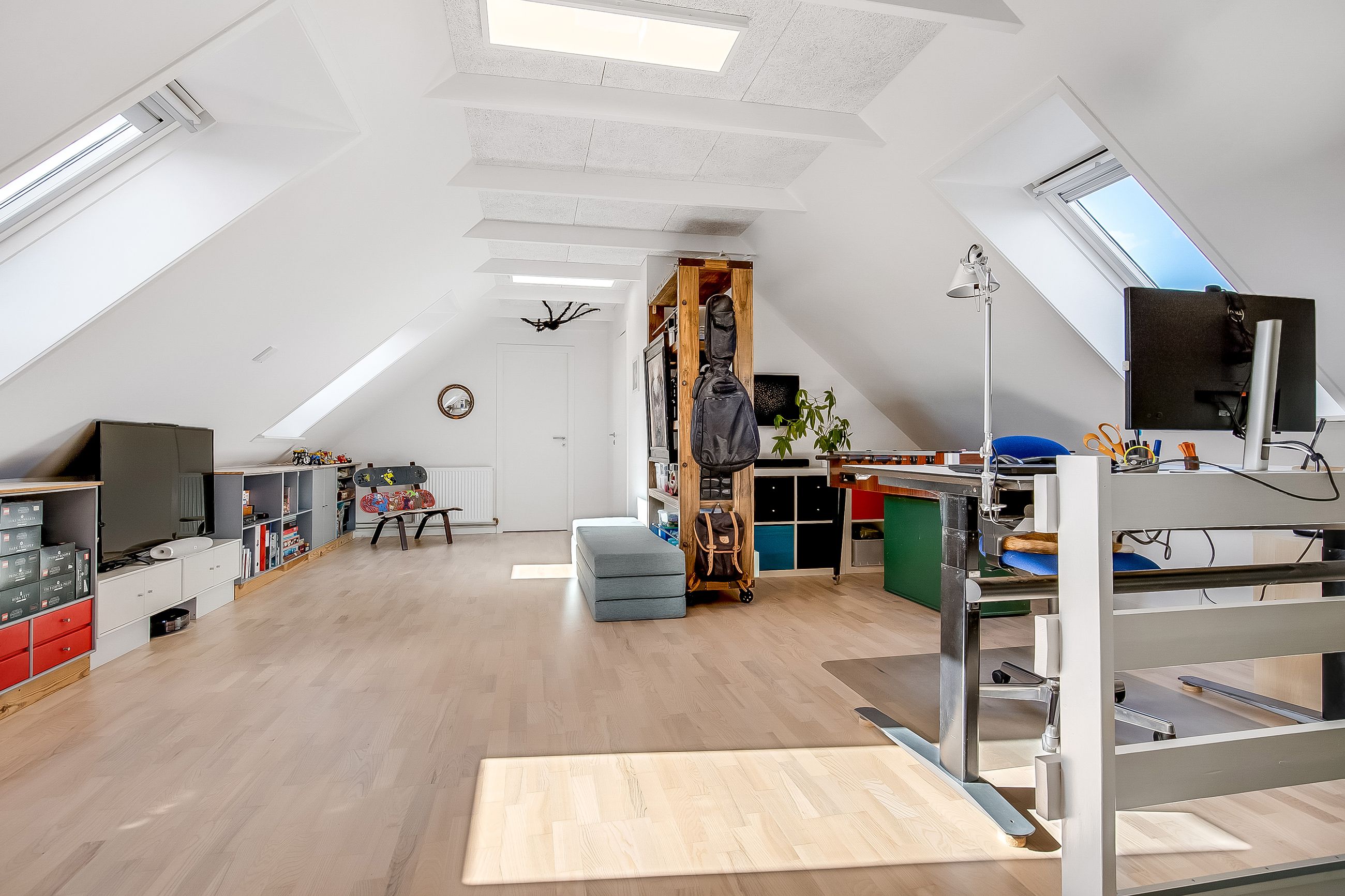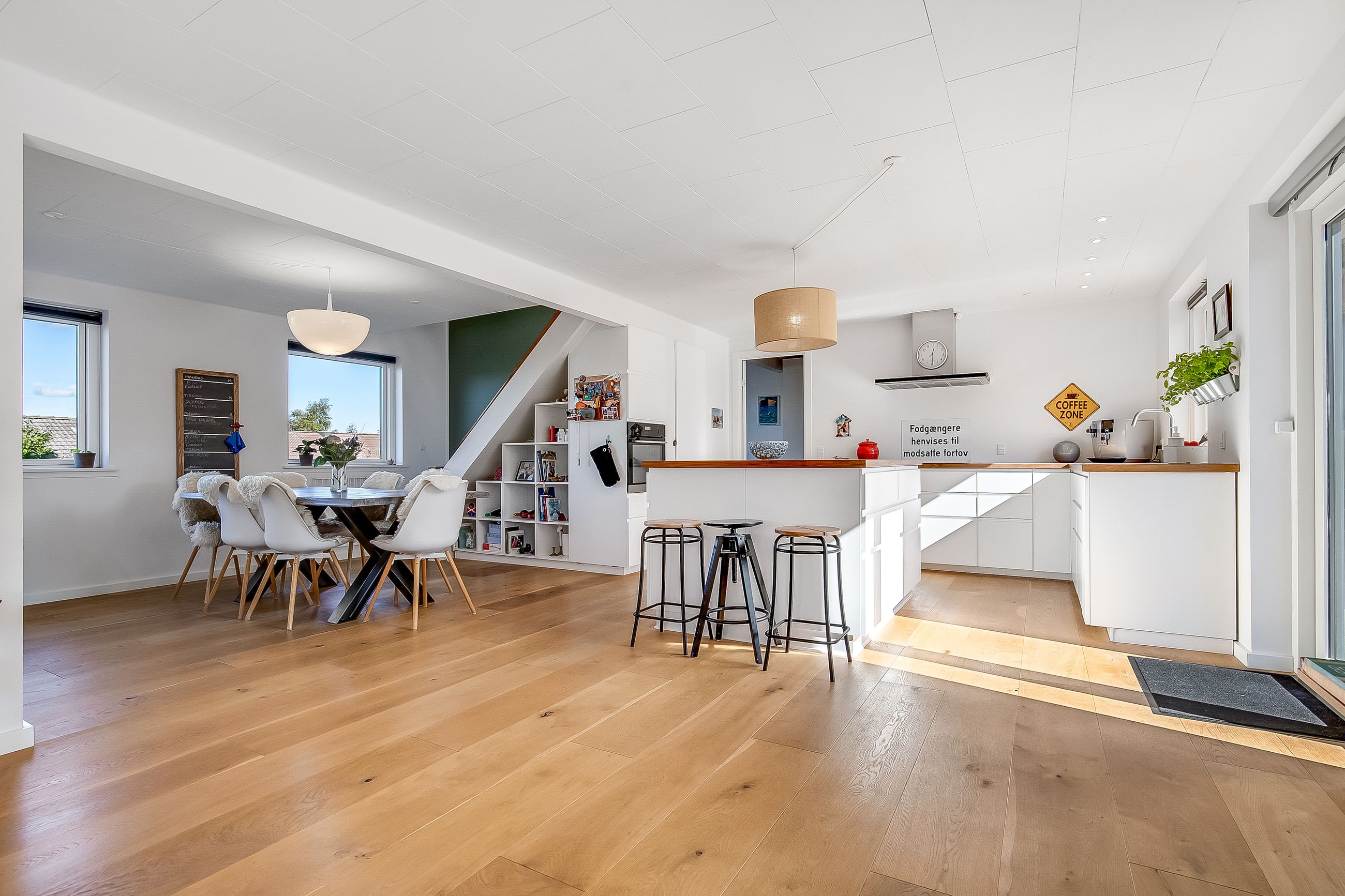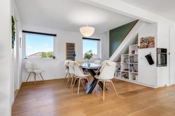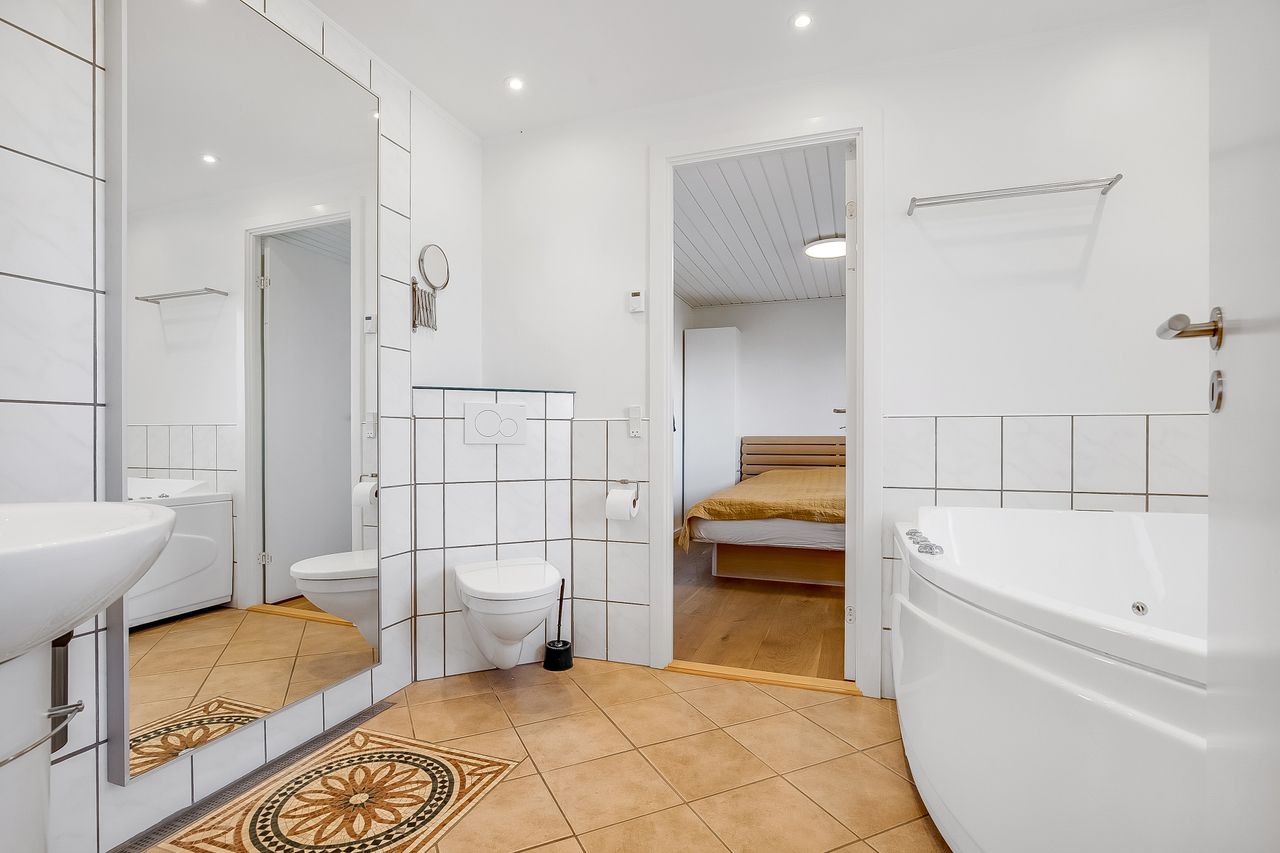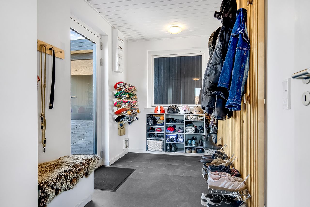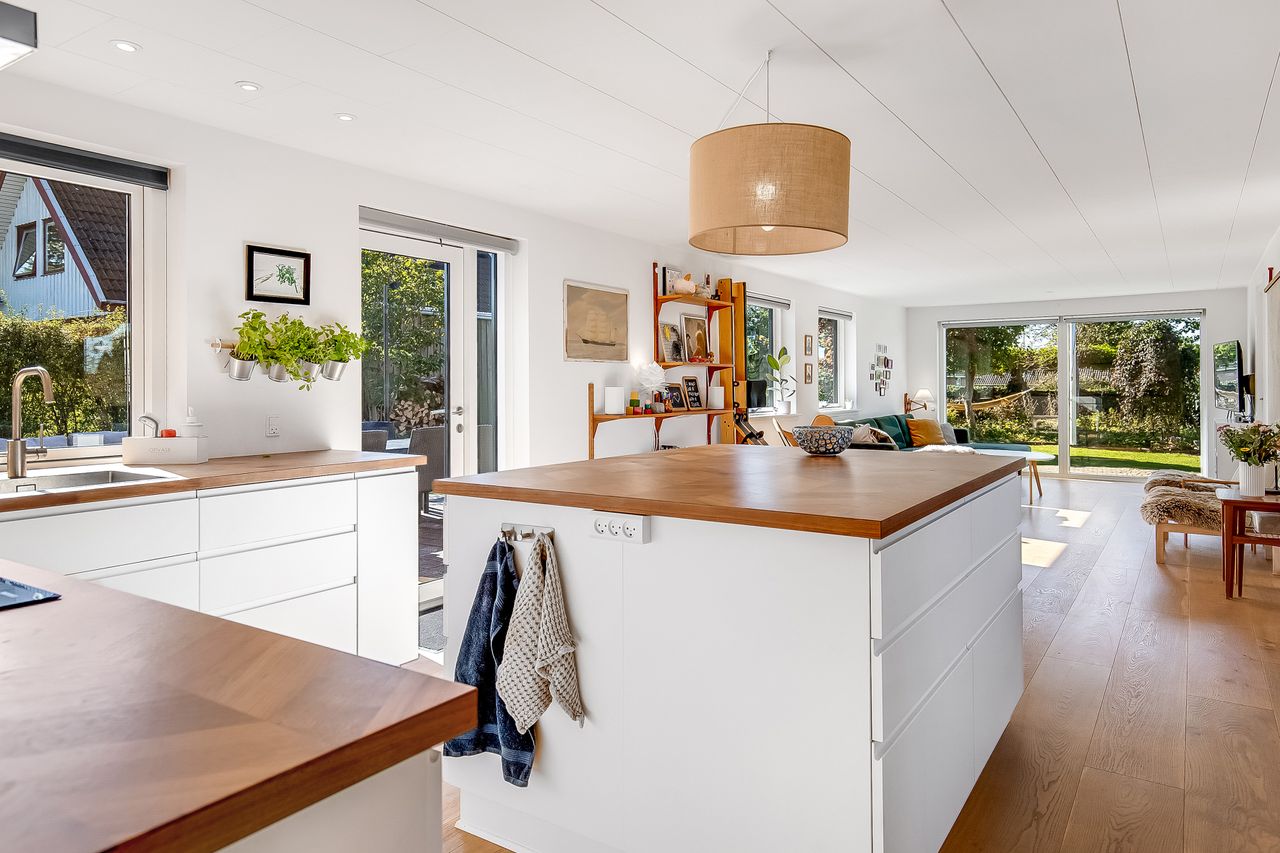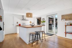 Indflytningsklar, familievenlig villa i Ø-kvarteret Her er huset for dig med ønsket om en rummelig, pæn og velopdelt villa i det populære Ø-kvarter. Villaen udmærker sig ved nuværende ejers mange, gode forbedringer. Disse omfatter bl.a. og særligt etablering af gulvvarme i stueplan (2019), nye vinduer og døre (2019), udskiftning af køkken og bryggers (2019), kablet netværk (2019), flotte egeplanker på gulv i stueplan (2022), renovering af bad på 1 sal (2021) og tilkobling til fjernvarme i 2025. Dertil godt værksted, garage og carport. Skøn, ugeneret have, som tillige er højtbeliggende i området. Indretning: Stort og funktionelt bryggers i flot stand.Køkken/alrum og stue i vinkel med masser af lys og plads. Her vil du gerne invitere familie og venner. Udgang til ugenerte terrasser mod syd/øst og syd/vest. Soveværelse samt fint badeværelse med kar og gulvvarme. 1. salen er indrettet med to store gavlværelser samt stort aktivitetsrum, som efter behov nemt kunne opdeles med yderligere et værelse/kontor og fortsat have plads til et godt aktivitetsrum. Hertil nydeligt badeværelse med brus og gulvvarme. Haven er anlagt med store terrasse miljøer og opvoksede bede.Da grunden og ejendommen er højt beliggende, opleves en sjældent ugenerthed fra matrikel og bolig.