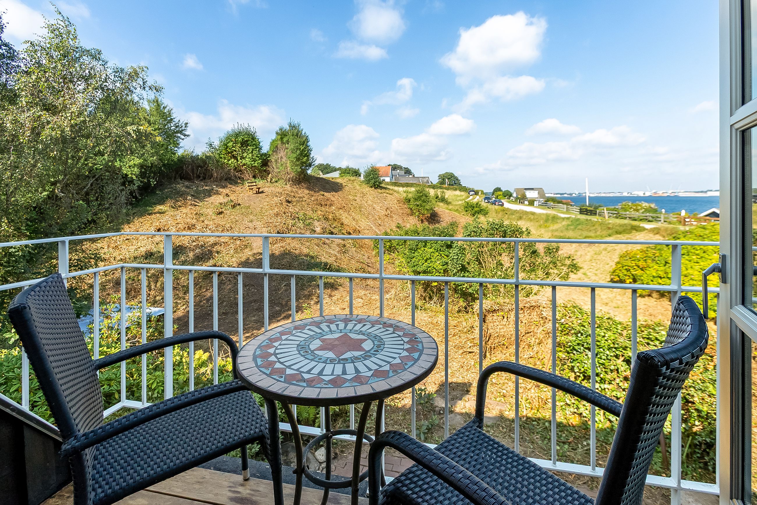 Udendørs: Grunden er hele 1.900 m2 og er netop blevet gennemarbejdet. Fra at være en tætbevokset have fremstår den nu velholdt og indbydende – med masser af plads til leg, aktiviteter og afslapning. På grunden finder du også en charmerende udkigspost på toppen af bakken, hvor du fra bænken kan nyde den smukkeste panoramaudsigt.